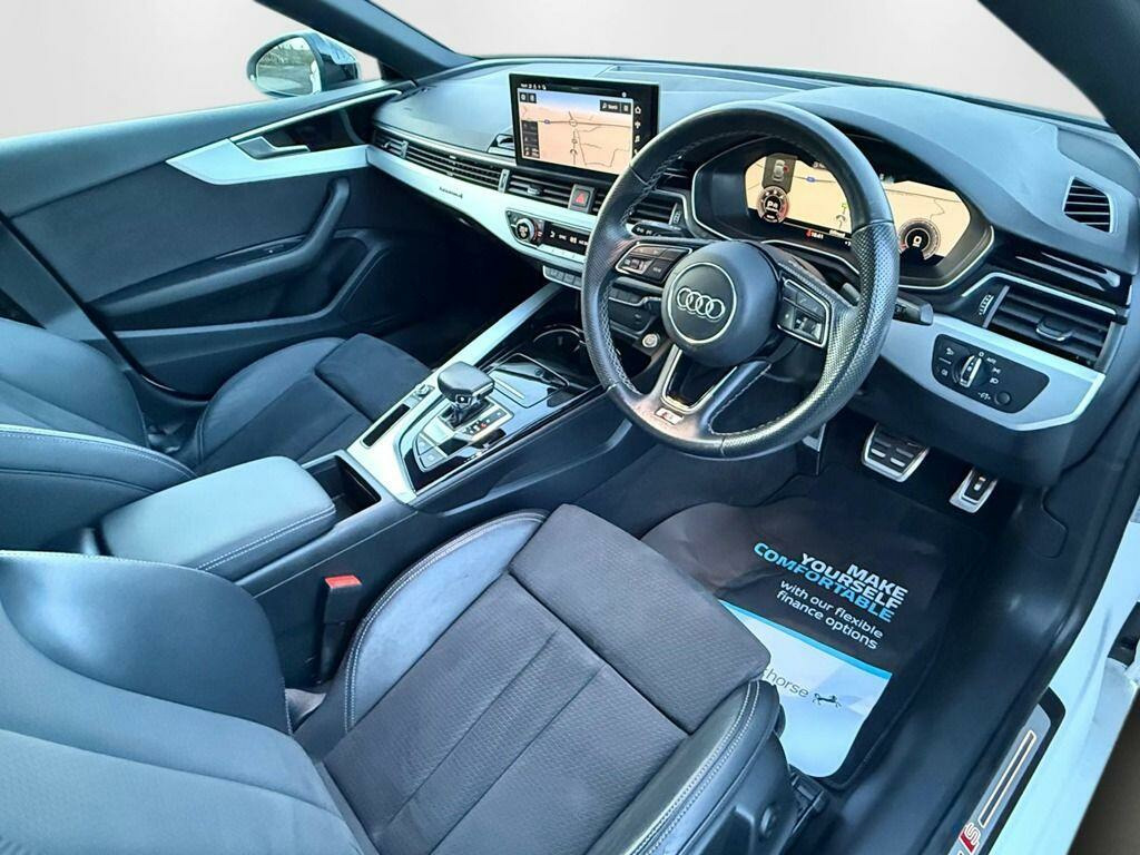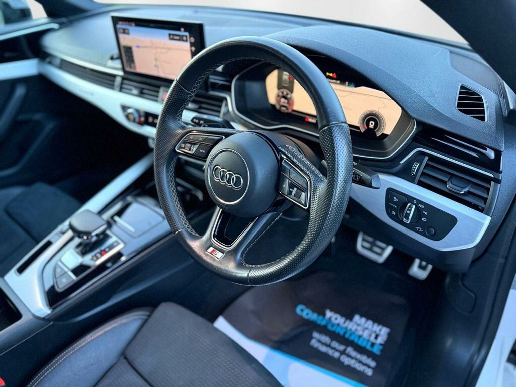 This 2022 Audi A5 TDI S line boasts a full dealership service history and has had only one owner, offering excellent provenance. It features a powerful 2.0 litre diesel engine paired with four wheel drive, ensuring capable performance in all conditions. This Euro 6 compliant model comes equipped with the desirable S line trim, enhancing its sporty appeal. You'll also benefit from the convenience of Parking System Plus with front and rear sensors, a rear view camera, and Deluxe 3-zone electronic climate control. For added comfort, the front seats are heated, and the Light and Rain Sensor automatically manages your headlights.The Audi A5 TDI S line offers a compelling blend of performance and practicality. Its impressive acceleration, reaching 0-62mph in just 7.0 seconds, demonstrates its dynamic capabilities, setting it apart from many similar vehicles. The large boot space provides ample room for luggage or shopping, making it a versatile choice for everyday use and longer journeys. With a clear vehicle history check and a 6 month warranty included, this Audi A5 represents a well maintained and reassuring purchase.NEW 21'' ALLOYS SHOWN ADDITIONAL COST.. 19in Alloy Wheels - 8.5J 5-Spoke-Cavo Design - Contrasting Grey - Partly Polished, 4-Way Electric Lumbar Support, 6-Airbag System, 8 Passive Loudspeakers, Anti Theft Locking Wheel Bolts, Anti-Theft Alarm, Audi Connect Infotainment Services (36 Month Subscription From New), Audi Connect Safety and Service, Audi Drive Select, Audi Matrix LED Headlights with LED Rear Lights and Dynamic Front and Rear Indicators, Audi Phone Box with Wireless Charging, Audi Smartphone Interface, Audi Virtual Cockpit, Auto-Dimming Rear-View Mirror, Automatic Start-Stop with Coasting Functionality and Efficiency Programme, Cloth Headlining in Black, Contrast Stitching on Seats - Steering Wheel and Gear Lever Gaiter, Cruise Control System with Speed Limiter, DAB Digital Radio Reception, Deluxe 3-Zone Electronic Climate Control, Door Handles - Body Coloured, ESC - Electronic Stabilisation Control inc ABS - ASR and EDL, Electric Windows - Front, Electromechanical Power Steering, Email - Calendar and Text Messages Can Be Displayed on your Vehicles MMI, First Aid Kit and Warning Triangle, Front Centre Armrest, Front Spoiler Lip in Body Colour, Gear Lever Knob in Black Perforated Leather, Heated Front Seats, High Multi-Function 3-Spoke Leather Steering Wheel with Grips in Perforated Leather and S Badging, Hill Hold Assist, ISOFIX Child Seat Mounting and Top Tether, Illuminated Door Sill Trims with S Logo, Inlays - Matt Brushed Aluminium, Keyless Go, LED Interior Light Package, Light and Rain Sensor, MMI Navigation Plus with MMI Touch, Manual Seat Adjustment, Multi Collision Brake Assist, Parking System Plus - Front and Rear Sensors, Pedals in Stainless Steel, Pop-Up Bonnet for Pedestrian Protection, Power Operated Tailgate, Pre-Sense City, Privacy Glass, Radiator Grille with Honeycomb Structure in Grained Matt Black, Rear-View Camera, S Line Badges on the Front Wings, S Line Front and Rear Bumpers and Side Skirt, S Line Rear Diffuser in Matt Titanium Black with Trim Strip in Matt Aluminium Silver, Seat Belt Monitoring, Side Air Inlets in Grained Matt Black with Inlay in Matt Aluminium Silver, Split-Folding 3-Seater Rear Seat Bench in 3 Parts - 40-20-40, Sport Suspension, Tailpipe Trims in Matt Aluminium Silver, Tool Kit, Two Additional USB Ports for Rear Passengers in the Rear Centre Console, Tyre Repair Kit, Voice Control. Full dealership history