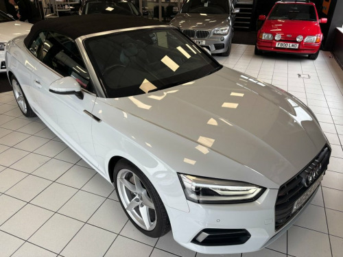This is an extremely bright-looking example and one that is bound to catch your eye, finished in a Glacier White colourway. Reflecting that of a well-loved example, displayed in excellent condition throughout and further offers a superb drive. Audi A5 Cabriolet is an absolute credit to its two previous owners, who have taken great care of it, with everything driving just as it should. Coming with a comprehensive Audi service history, recorded across the following miles: 18,319 + 36,897 + 47,881 (also due to go through one with us at its current mileage). Amongst its bright appearance, this A5 comes with some great features. These include: 2 x USB Charging Ports and 1 x AUX-IN, 4-Way Electric Lumbar Support, Acoustic Hood - Fully Automatic, Audi Smartphone Interface, Audi Drive Select, Comfort Dynamic Suspension, Cruise Control with Speed Limiter, DAB Digital Radio Reception, Deluxe 3-Zone Electronic Climate Control, Electromechanical Parking Brake, Hill Hold Assist, Heated Front Seats, Keyless Go, MMI Navigation, Parking System Plus, Seat Belt Microphone, Voice Control System, Xenon Headlights with LED Daytime Running Lights and more. Comes complete with two keys, an 82-point health check, 6 months warranty (extendable up to 3 years) and HPI clear certificate. As these are used cars, please satisfy yourself that a vehicle has a specific feature that is important to you before purchasing by speaking directly with one of our sales team. For Hi-Def photo's please view this Twin Leather-Leatherette - Sport Seats -, Glacier White, 18in Alloy Wheels - 5-Arm Star Design, 2 x SDXC Card Readers, 2 x USB Charging Ports and 1 x AUX-IN, 4-Way Electric Lumbar Support, 6-Airbag System, Acoustic Hood - Fully Automatic, Acoustic Soft Top - Black, Air Inlets in Titanium Black with Matt A, Anti Theft Locking Wheel Bolts, Anti-Theft Alarm, Audi Connect Infotainment Services - 3 M, Audi Connect Safety and Service, Audi Drive Select, Audi Smartphone Interface, Audi Sound System, Auto-Dimming Rear-View Mirror, Black Hood, Bluetooth Interface, Body Coloured Door Mirrors, CD Drive, Chrome-Plated Exhaust Trim, Cloth Headlining, Colour Drivers Information System with 7, Comfort Dyna
