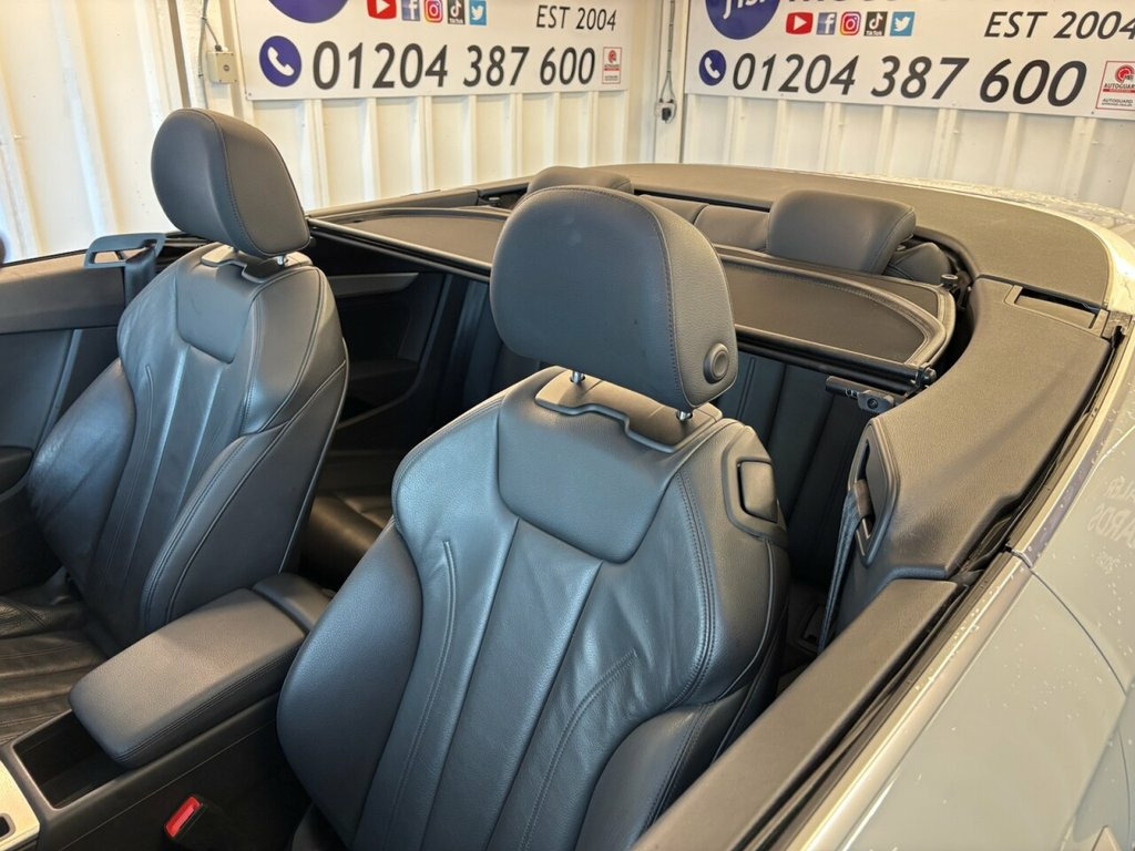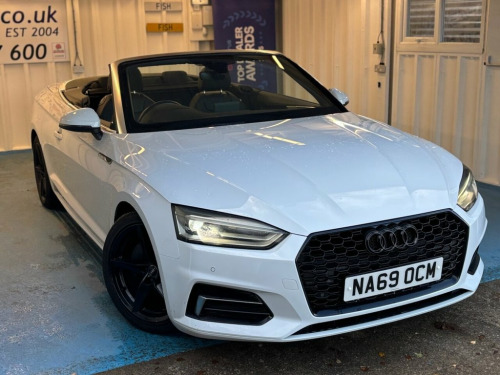 2 KEYS+2 FORMER KEEPERS+MEDIA+FULL LEATHER SEATS+HISTORY+CLIMATE+PARK CONTROL+NAV+BLUETOOTH+18" BLACK ALLOYS+CRUISE+HEATED FRONT SEATS+HPI CLEAR+VOSA MOT HISTORY PRINTOUT, PART EXCHANGE WELCOME, FULL DEALER FACILITIES, CLEAN CAR+NICE DRIVE+RAC CHECKED+good mpg,The car is in very good condition in and out . Bodywork and interior clean for age and mileage . Interior is clean and tyres good ,Engine and gearbox in good order. This 2020 Audi A5 Cabriolet TDI Sport boasts an MOT valid until February 2026, offering peace of mind for the coming years. This stylish convertible features a 2.0 litre diesel engine, meeting Euro 6 emission standards. Inside, you'll find comfort and convenience with heated front seats and deluxe 3 zone electronic climate control. The Sport trim also includes practical features such as a light and rain sensor, which automatically activates the headlights, and a Bluetooth interface for seamless connectivity. The Xenon headlights with LED daytime running lights provide excellent visibility and a distinctive look. These features, combined with the advanced climate control and integrated Bluetooth, demonstrate a thoughtful specification that enhances the driving experience. The A5 Cabriolet is designed for those who appreciate both performance and sophisticated design, making it a compelling choice for open top motoring. 18in Alloy Wheels - 10-Parallel-Spoke De, 18in Alloy Wheels - 5-Arm Star Design, 2 x SDXC Card Readers, 2 x USB Charging Ports and 1 x AUX-IN, 4-Way Electric Lumbar Support, 6-Airbag System, Acoustic Hood - Fully Automatic, Acoustic Soft Top - Black, Air Inlets in Titanium Black with Matt A, Anti Theft Locking Wheel Bolts, Anti-Theft Alarm, Audi Connect Infotainment Services - 3 M, Audi Connect Safety and Service, Audi Drive Select, Audi Smartphone Interface, Audi Sound System, Auto-Dimming Rear-View Mirror, Black Hood, Bluetooth Interface, Body Coloured Door Mirrors, CD Drive, Chrome-Plated Exhaust Trim, Cloth Headlining, Colour Drivers Information System with 7, Comfort Dynamic Suspension,