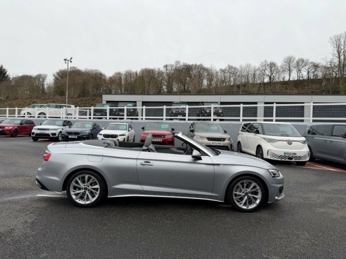 A5 Convertible 40TDI Quattro SPORT 2.0 Diesel Auto. 204PS Metallic Silver covered only 11,000 Miles from new In incredible condition! Stone Grey full leather ,heated seats, 360° surround view cameras, reversing camera, cruise control, virtual cockpit digital dashboard, widescreen multimedia, three zone climate control, B&O Bang & Olufsen premium hi-fi, navigation, interior illumination, Audi drive select & much more. 204PS Auto Diesel Cabriolet. Only 11,250 miles freshly serviced 18in Alloy Wheels - 8.5J 5-Twin-Spoke De, 4-Way Electric Lumbar Support, 6-Airbag System, 8 Passive Loudspeakers, Anti Theft Locking Wheel Bolts, Anti-Theft Alarm, Audi Connect Infotainment Services (36 M, Audi Connect Safety and Service, Audi Connect with Amazon Alexa Integrati, Audi Drive Select, Audi Smartphone Interface, Audi Virtual Cockpit, Auto-Dimming Rear-View Mirror, Automatic Start-Stop with Coasting Funct, Black Roof Colour, Bluetooth Interface, Body Coloured Side Sill Trims, Comfort Dynamic Suspension, Cruise Control System with Speed Limiter, DAB Digital Radio Reception, Deluxe 3-Zone Electronic Climate Control, Door Handles - Body Coloured, Door Sill Trims with Aluminium Inlay