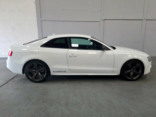** Vehicle Reg - WJ64 YZD ** Boasting an impressive MOT valid until July 2026 and a recent service in October 2025, this 2014 Audi A5 TDI Black Edition presents a compelling proposition. With only 87,261 miles on the clock and a clear vehicle history check, this four wheel drive model, powered by a 2.0 litre diesel engine, has been well cared for by its three previous owners. The Black Edition trim ensures a striking appearance, complemented by Bi-Xenon Plus headlights and the Audi Parking System Plus for effortless manoeuvring. Inside, you can enjoy the premium Bang and Olufsen sound system, heated front seats, and a three zone electronic climate control for ultimate comfort. This Audi A5 stands out with its desirable combination of features and excellent provenance. The low mileage for its age and the extended MOT period suggest a vehicle that has been thoughtfully maintained and is ready for many more miles. Its inclusion in a low insurance group is another significant advantage, making it a more economical choice for everyday driving. These factors, alongside the sophisticated technology and comfort features, highlight how this particular A5 offers a superior ownership experience compared to many others on the market. A three month warranty is also included for your peace of mind. Contact us now to arrange your test drive viewing, or book your appointment directly on our website 24/7! 12V Power Socket - Centre Console, 19in Alloy Wheels - 5-Arm Rotor Design T, ABS - Anti-Lock Braking System, AMI - Audi Music Interface, AUX-IN Socket, Airbags - Driver, Airbags - Front Passenger, Airbags - Front Side, Airbags - Head Level Side For Front and , Alarm - Thatcham Category 1, Amplifier - 10-Channel, Amplifier - x2-505 Watts, Anti Theft Locking Wheel Bolts, Audi Parking System Plus - Front, Audi Parking System Plus - Rear, Auto Opening Boot Lid, Auto-Dimming Rear-View Mirror, Automatic Wipers with Rain Sensor, Bang and Olufsen Sound System, Black Styling Package, Car Jack, Climate Control - Electronic 3-Zone, Cloth Headlining in Black, Colour Centre Console Screen, Colour Drivers