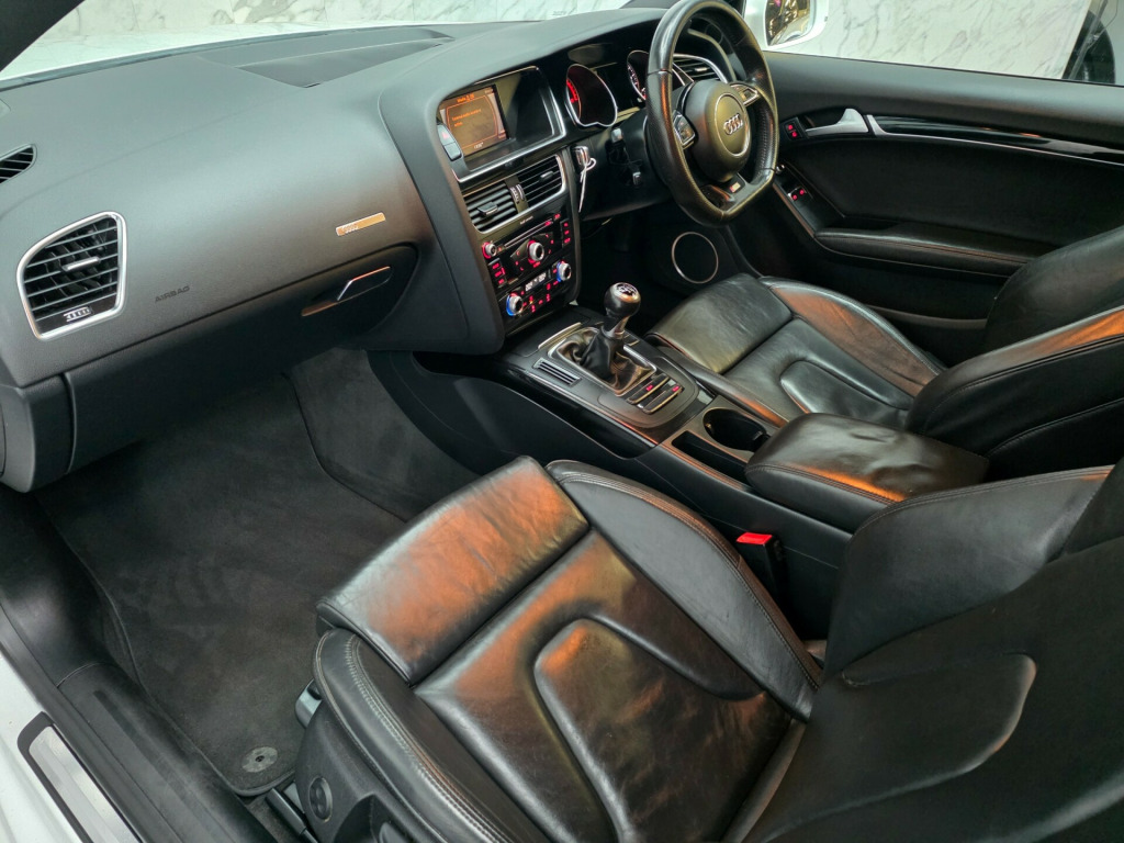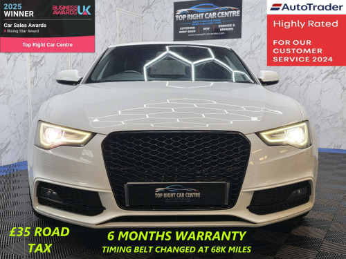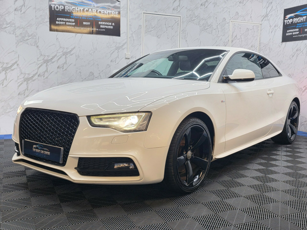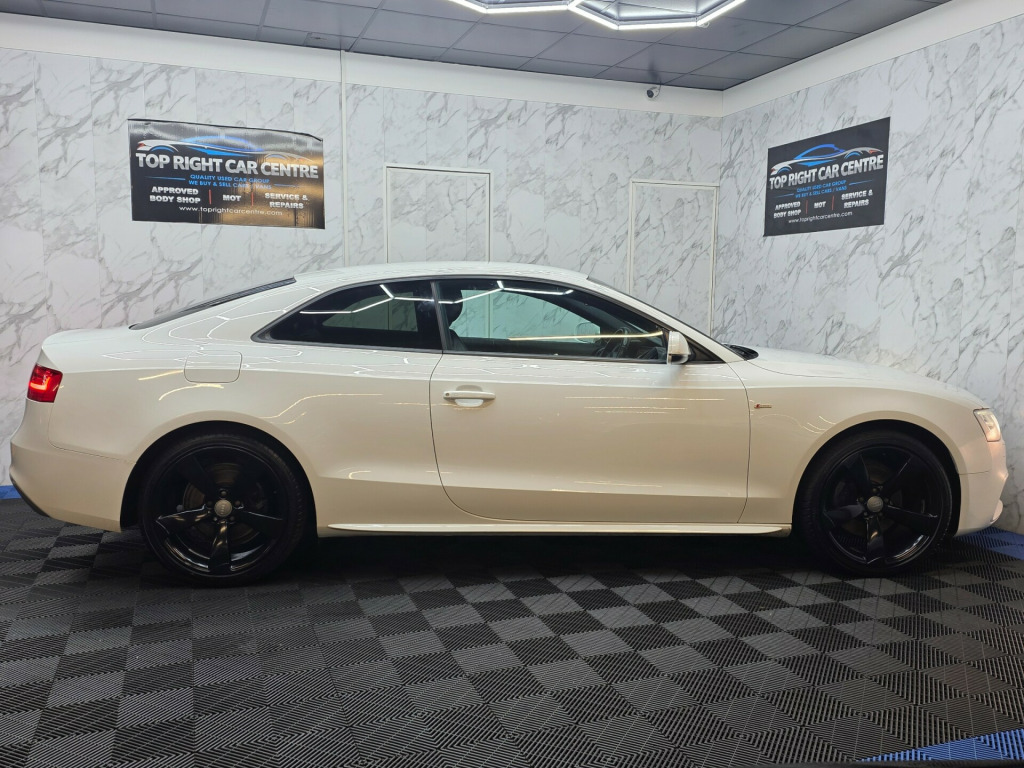 *** NIL DEPOSIT FINANCE AVAILABLE *** ***HPI CLEAR ***6 MONTHS WARRANTY AND BREAKDOWN COVER WITH THIS CAR.(0% interest 9 months payment plan for extended warranty options are available for 1 or 2 years).Low 35 pounds road tax. Timing belt kit changed at 68k miles. All tyres has been changed recently.FULL SERVICE HISTORY. MOT 24 SEPT 2026 NO ADVISORIES. Recently had service done.This stunning Audi A5 has been sourced directly from its Previous Private Owner. Every now and again, a car comes into stock at Top Right Car Centre, that you cannot help but fall in love with.Top Spec Black Edition has massive centre screen, full leather interior, all electric windows, privacy glass, parking sensors, digital dual climate control, Bang Olufsen sound system, cruise control. Clean Car in White colour. Great comfortable family car. Well maintained body work and interior. Bullet fast response. Checked by our engineers. Professionally detailed. Good reliable runner. Price checked. We've just completed a full pre delivery inspection on the car to give you complete piece of mind. central locking key. Smooth gear box. Clean alloy wheels. Excellent condition tyres. Spare wheel. Multimedia has Bluetooth DABRADIO CD mp3. Run with no fault strong reliable engine. Good fuel economy. First to see will buy it this well looked after car. p/x welcome. We do price our cars/van as competitively as possible and because of this we sell cars/vans very quickly. BE QUICK! MISS IT - MISS OUT. With so much variety, quality and highly rated award winner 2024 and 2025, it is no wonder we are super busy all the time. Why Buy From Top Right Car Centre?Thoroughly Inspected Cars. All our vehicles are quality-checked and HPi verified, giving you peace of mind with every purchase.Multi Award-Winning Family Business. As a trusted family-run business, we have earned awards for our customer service and expertise.Hand-Picked, Quality Cars. We carefully select only the finest cars with full service histories, so you can drive away with confidence.Test Driven for Assurance. Each car is personally test-driven by our team, ensuring it meets our high standards.Delivery Service available. v power socket x2, ami - audi music interface, aux-in socket, bang and olufsen sound system, concert radio - mp3-cd player, dab digital radio, mobile telephone preparation - bluetooth interface, sound package, 19in alloy wheels - 5-arm rotor design titanium look, black styling package, door mirrors - electrically adjustable and heated, electric windows - front, light and rain sensor package, privacy glass, space saver spare wheel, abs - anti-lock braking system, airbags - driver, airbags - front passenger, airbags - front side system, airbags - head level side for front and rear, alarm - thatcham category 1, esp - electronic stability programme, first aid kit, isofix child seat preparation front and rear with passenger airbag deactivation switch, intelligent key, acoustic parking system - rear, colour drivers information system - dis, electromechanical power steering, sport suspension, auto opening boot lid, automatic wipers with rain sensor, climate control - electronic 3-zone, cloth headlining in black, cup holders - centre console, electrically adjustable 4-way lumbar support, front centre armrest, inlays - piano finish - black, leather armrests, seats - drivers manual height adjustment, split-folding rear seats, steering column - rake and reach adjustment, steering wheel - 3-spoke multifunction flat bottomed, steering wheel - multi-function, front fog lights, headlights - automatic adjustment, headlights - bi-xenon plus, headlights washers, led daytime running lights