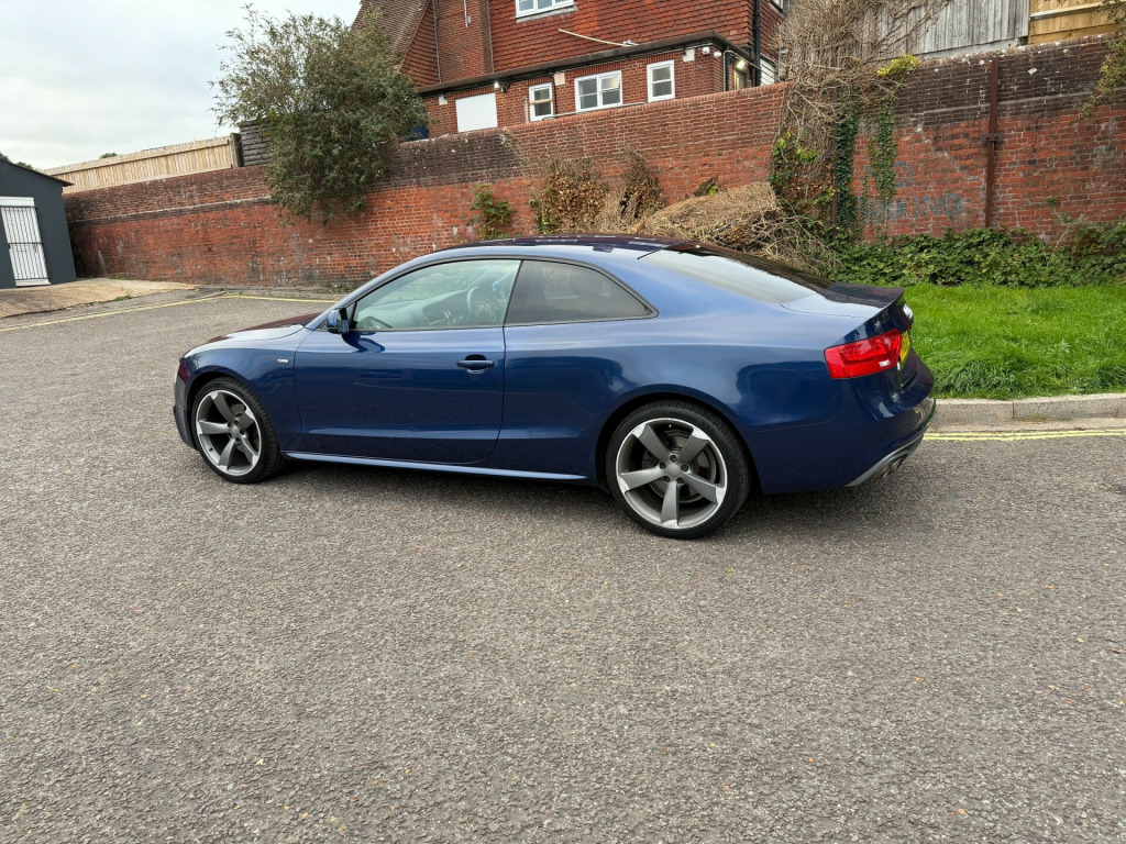 63 Reg - Scuba Blue With Full Black Leather Interior, This 2 Litre Diesel Automatic A5 S Line Black Edition Comes With A Huge Specification Which Includes: Dual Zone Digital Climate Control, Cruise Control, Trip Computer, CD/SD/DAB/MMI Player With Fingertip Controls, Bang & Olufsen Speaker System, Front & Rear Parking Sensors With Graphic Display, Automatic Lights, Electric Windows, Electric (Power Folding) Heated Mirrors, 19'' Rotor Alloy Wheels, Flappy Paddle Shifters, Iso-Fix, Fitted Mats, Front Fogs, Privacy Glass, Remote Central Locking, 2 Keys, Comes With Service History Including A Replacement Cambelt & Waterpump Invoice, Comes With A Brand New MOT & Service At Sale, Fantastic Specification Automatic A5 Black Edition, Drives superbly so any inspection welcome, - HPI Clear, Part Exchange welcome. **Debit/Credit Cards Accepted** **Open 7 Days a week** **POOR CREDIT NO PROBLEMS - Finance available (subject to status)**