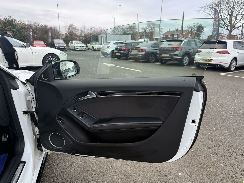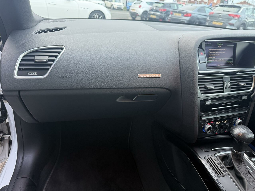 FINANCE FROM 9.9% APR WE WILL NOT BE BEAT ON RATE!This stunning Audi A5 is set in White with a contrasting Black leather interior. The car comes with service history. Serviced at the following intervals 19, 30k, 37k, 56k. We will service the car prior to sale. MOT is valid until February 2027.The car boasts the following spec - 19 Inch Alloy wheels Front/rear parking sensors Automatic lights Cruise control Electric windows/mirrorsSat nav Phone connectivity Dab radio 3 Zone climate controlHeated seatsSAT NAV 2 Remote keys Finance calculator available on our website. Finance packages tailored to your needs, just ask one of our team to give you a quote. We offer hire purchase (HP) and PCP deals both starting from 9.9% APR.Any car can be reserved with deposits from £100 subject to inspection. If upon your visit to our site, the car is not as described the deposit would be refunded in full immediately. We do price our cars as competitively as possible and because of this we sell cars very quickly. If you like the car chances are somebody else does too so don’t miss out and reserve now!Why do the hard work when we have already done it for you!! All our cars are price checked weekly making sure we are the cheapest within 200 miles. (+£149 Service support fee on all cars)We have chosen award-winning Autoguard Warranties as our extended warranty provider, as they offer comprehensive cover, with a variety of products to suit all your needs. Every car comes with a free 3 month standard warranty with a £300 claim limit. There is also the option to upgrade to a fully comprehensive premium with roadside assistance and breakdown 12-month warranty with a £2000 claim limit for £399. If the vehicle is over a 3L or 4X4 then it is £499. Longer durations are available on request.Also please check out our 5 star reviews on google and auto trader. We were finalists in the new used car dealership of the year awards 2023, 2024, 2025.. .