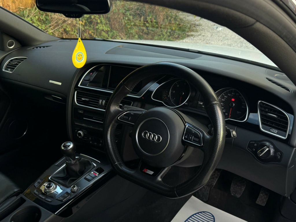 2 FORMER KEEPERS2 KEYSSERVICE HISTORYEURO 6ULEZ COMPLIANTEquipment:Navigation CDParking Sensor(s)Climate ControlLeather Trim19'' Alloy WheelsPrivacy GlassThis Audi A5 TDI Black Edition Plus from 2016 boasts a clear vehicle history, offering you peace of mind. Powered by an efficient 2.0 litre Euro 6 diesel engine, this Black Edition Plus model combines sophisticated styling with practical features. You'll appreciate the convenience of multiple mobile telephone preparation options, including Bluetooth connectivity and Audi Connect, alongside a 6 CD changer and DVD player for your entertainment. The Bi Xenon Plus headlights ensure excellent visibility on all your journeys.This A5 stands out with its generous boot space, making it ideal for both everyday errands and longer trips. The inclusion of advanced mobile telephone preparation and the Bi Xenon Plus headlights are notable features that enhance the driving experience, setting this particular A5 apart. This vehicle offers a compelling blend of performance, technology, and practicality. cd changer and dvd player, mobile telephone preparation - high with audi connect, mobile telephone preparation - low with bluetooth, 19in alloy wheels - 5-arm rotor design titanium finish, 19in alloy wheels - 7-twin-spoke design, fine nappa leather - s line sports seats - black, tv reception - digital, 12v power socket x2, 19in alloy wheels - 10-spoke y design, abs - anti-lock braking system, ami - audi music interface, aux-in socket, airbags - driver, airbags - front passenger, airbags - front side system, airbags - head level side for front and rear, alarm - thatcham category 1, amplifier - 10-channel, anti theft locking wheel bolts, audi parking system plus, auto opening boot lid, auto-dimming rear-view mirror, automatic wipers with rain sensor, bang and olufsen sound system, black styling package, climate control - electronic 3-zone, cloth headlining in black, colour centre console screen, colour drivers information system - dis, concert radio - mp3-cd player, cruise control, cup holders - centre console, dab digital radio, door mirrors - electrically adjustable and heated, dynamic bumper, edl - electronic differential lock, esp - electronic stability programme, electric windows - front, electromechanical parking brake, electromechanical power steering, exhaust tailpipe - chrome rolled finish, first aid kit, front centre armrest, front fog lights, front passenger airbag deactivation switch, front sports seats, front and rear floor mats, gear knob - perforated leather, gloss black door mirrors, headlights - automatic activation, headlights - bi-xenon plus, headlights - range adjustment, heated front seats, isofix child seat mounting for front passenger, isofix child seat preparation for rear seats, inlays - piano finish - black, intelligent key, interior chrome package, led daytime running lights, led rear lights, misfuelling inhibition, mobile telephone preparation - bluetooth interface, pedals in stainless steel, privacy glass, radiator grille - matt black, radiator grille frame - highly polished black, rear diffuser - high gloss black, rest recommendation system, sd card reader, satellite navigation system plus - hdd-based mmi, seats - front sports with electric lumbar support, side mirrors in high-gloss black, side-sills in high-gloss black, space saver spare wheel, speakers x14 - 505 watts, split-folding rear seats, spoiler - body coloured, sport suspension, steering column - rake and reach adjustment, steering wheel - 3-spoke leather-multifunction-flat bottomed, tool kit and car jack, tyre pressure monitoring system, warning triangle
