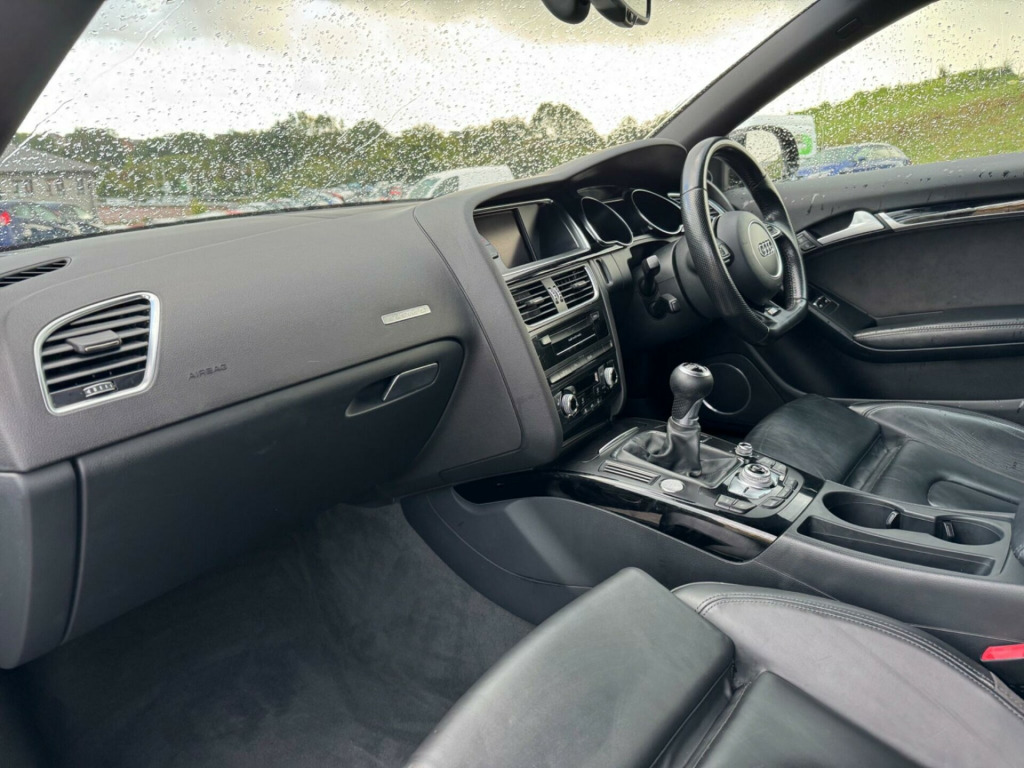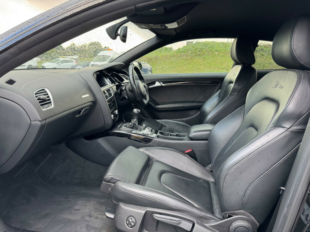 Cherished by only one owner since its registration in 2015, this Audi A5 Black Edition Plus is a stylish coupe that combines performance with practicality. The Black Edition Plus trim enhances the car's sleek lines, while the 2.0L diesel engine delivers a refined driving experience. Equipped with four-wheel drive and meeting Euro 6 emission standards, this A5 is as environmentally conscious as it is capable. Enjoy premium features such as heated front seats, bi-xenon plus headlights with automatic activation, and an electronic 3-zone climate control system for optimal comfort. The Audi Parking System Plus, with front and rear sensors, makes parking effortless.This A5 stands out with its low insurance group, offering potential savings compared to similar vehicles. The large boot space is another advantage, providing ample room for luggage, shopping, or sports equipment. The car's acceleration, reaching 0-62mph in just 7.4 seconds, adds to its appeal, making it a compelling choice for those seeking a blend of performance and practicality. v power socket x2, 19in alloy wheels - 10-spoke y design, abs - anti-lock braking system, ami - audi music interface, aux-in socket, airbags - driver, airbags - front passenger, airbags - front side system, airbags - head level side for front and rear, alarm - thatcham category 1, amplifier - 10-channel, anti theft locking wheel bolts, audi parking system plus, auto opening boot lid, auto-dimming rear-view mirror, automatic wipers with rain sensor, bang and olufsen sound system, black styling package, climate control - electronic 3-zone, cloth headlining in black, colour centre console screen, colour drivers information system - dis, concert radio - mp3-cd player, cruise control, cup holders - centre console, dab digital radio, door mirrors - electrically adjustable and heated, dynamic bumper, edl - electronic differential lock, esp - electronic stability programme, electric windows - front, electromechanical parking brake, electromechanical power steering, exhaust tailpipe - chrome rolled finish, first aid kit, front centre armrest, front fog lights, front passenger airbag deactivation switch, front sports seats, front and rear floor mats, gear knob - perforated leather, gloss black door mirrors, headlights - automatic activation, headlights - bi-xenon plus, headlights - range adjustment, heated front seats, isofix child seat mounting for front passenger, isofix child seat preparation for rear seats, inlays - piano finish - black, intelligent key, interior chrome package, led daytime running lights, led rear lights, misfuelling inhibition, mobile telephone preparation - bluetooth interface, pedals in stainless steel, privacy glass, radiator grille - matt black, radiator grille frame - highly polished black, rear diffuser - high gloss black, rest recommendation system, sd card reader, satellite navigation system plus - hdd-based mmi, seats - front sports with electric lumbar support, side mirrors in high-gloss black, side-sills in high-gloss black, space saver spare wheel, speakers x14 - 505 watts, split-folding rear seats, spoiler - body coloured, sport suspension, steering column - rake and reach adjustment, steering wheel - 3-spoke leather-multifunction-flat bottomed, tool kit and car jack, tyre pressure monitoring system, warning triangle
