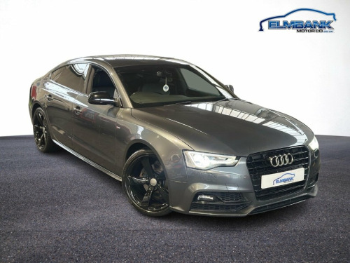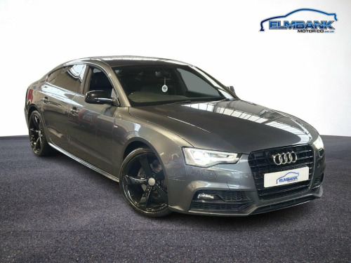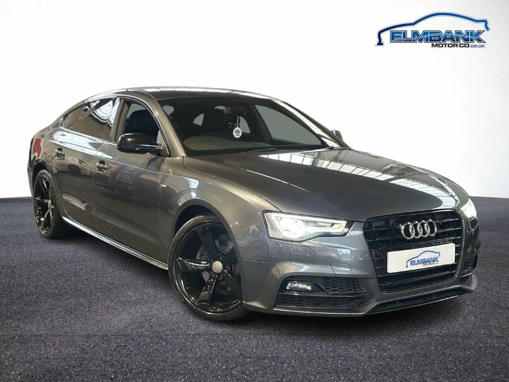 2016 66 AUDI A5 2.0 TDI SPORTBACK 5 DOOR S-LINE BLACK EDITION PLUS AUTOMATIC EURO 6 190 PS - ULEZ COMPLIANT. WHAT A LOVELY CAR, PERFECT COLOUR COMBO OF DAYTONA GREY WITH FULL BLACK LEATHER INTERIOR AND STUNNING TO DRIVE WITH THE POWERFUL 2.0 TURBO DIESEL ENGINE AND NICE SMOOTH 8 SPEED AUTOMATIC GEARBOX! SPECIFICATIONS INCLUDE ALLOY WHEELS, PRIVACY GLASS, BLUETOOTH, DUAL ZONE DIGITAL CLIMATE CONTROL, CRUISE CONTROL, BI-XENON HEADLAMPS, HEATED FRONT SEATS, DAB RADIO, SATELLITE NAVIGATION, FRONT AND REAR PARK ASSIST, BANG & OLUFSEN SOUND SYSTEM AND FULL LEATHER TRIM. SUPPLIED WITH 12 MONTHS MOT INCLUDING PRE DELIVERY SERVICE AND INSPECTION. WE CAN OFFER BESPOKE FINANCE PACKAGES AND PART EXCHANGE FACILITIES. FOR MORE INFORMATION PLEASE CONTACT ELMBANK MOTOR COMPANY. Fine Nappa Leather - S Line Sports Seats, S Line Suspension, Daytona Grey, 12V Power Socket - Centre Console, 19in Alloy Wheels - 10-Y Spoke Design Gl, ABS - Anti-Lock Braking System, AMI - Audi Music Interface, AUX-IN Socket, Airbags - Driver, Airbags - Front Passenger, Airbags - Front Side, Airbags - Head Level Side For Front and , Alarm - Thatcham Category 1, Amplifier - 10-Channel, Anti Theft Locking Wheel Bolts, Audi Parking System Plus - Front, Audi Parking System Plus - Rear, Auto Opening Boot Lid, Auto-Dimming Rear-View Mirror, Automatic Wipers with Rain Sensor, Bang and Olufsen Sound System, Black Styling Package, Car Jack, Climate Control - Electronic 3-Zone, Cloth Headlining in Bl