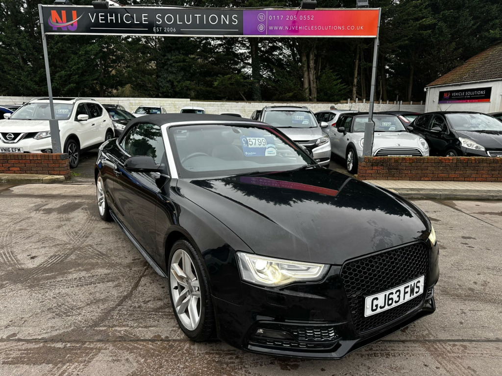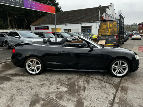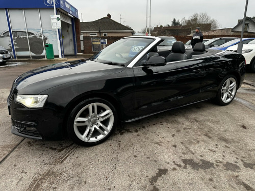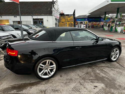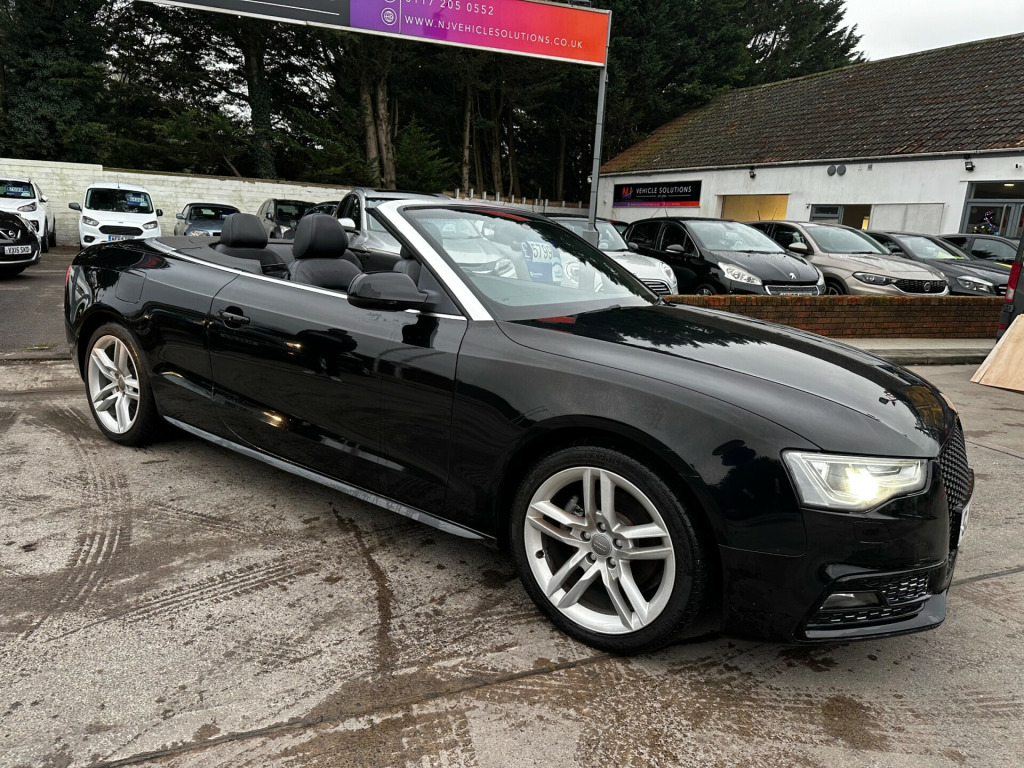 SERVICE HISTORY UP TO 114OOO GREAT LOOKING CAR Bluetooth with audio playback cruise control This 2013 Audi A5 Cabriolet is a stylish and efficient convertible with a Diesel engine, boasting 116000 miles on the clock and an MOT valid until 29/05/2026. With 4 seats and 2 doors, this Euro 5 (s/s) 2.0 TDI S line model offers a manual transmission and 150 ps. The interior includes 12V power socket in the centre console, 6.5in display screen, AUX-IN socket, Concert Radio, and DAB digital radio, providing modern convenience and entertainment for the driver and passengers. NJ VEHICLE SOLUTIONS pride ourselves on supplying high spec and prestige vehicles at affordable prices Please visit us or take a look on our website at similar stock. We are located 10 minutes from M4/M5 with many quality vehicles to choose from. We offer full dealer facilities, low deposit finance, all debit cards accepted. , v power socket - centre console, 6.5in display screen, aux-in socket, concert radio, dab digital radio, mobile telephone preparation - bluetooth interface, speakers x10, 18in alloy wheels - 5-double-spoke design, anti theft locking wheel bolts, door mirrors - electrically adjustable and heated, electric windows - front and rear, exterior aluminium package, fully automatic acoustic hood with led passenger reading lights, radiator grille - high gloss black, space saver spare wheel, styling package - s line exterior, wind deflector, abs - anti-lock braking system, airbags - driver, airbags - front passenger, airbags - front side, alarm - thatcham category 1, esp - electronic stability programme, electromechanical parking brake, first aid kit, isofix child seat preparation front and rear, intelligent key, warning triangle, auto opening boot lid, auto-dimming rear-view mirror, automatic wipers with rain sensor, car jack, climate control - electronic 3-zone, cup holders - centre console, door sill trims - s line, front centre armrest, front and rear floor mats, gear knob - perforated leather, headlights - range adjustment, inlays - matt brushed aluminium, leather armrests, seats - front sports with electric lumbar support, split folding rear seat, steering column - rake and reach adjustment, steering wheel - 3-spoke leather, steering wheel - multi-function, tool kit, colour drivers information system - dis, cruise control, electromechanical power steering, rear parking sensors, rest recommendation system, sport suspension, front fog lights, headlights - bi-xenon plus, headlights - light sensor, headlights washers, led daytime running lights, led rear lights
