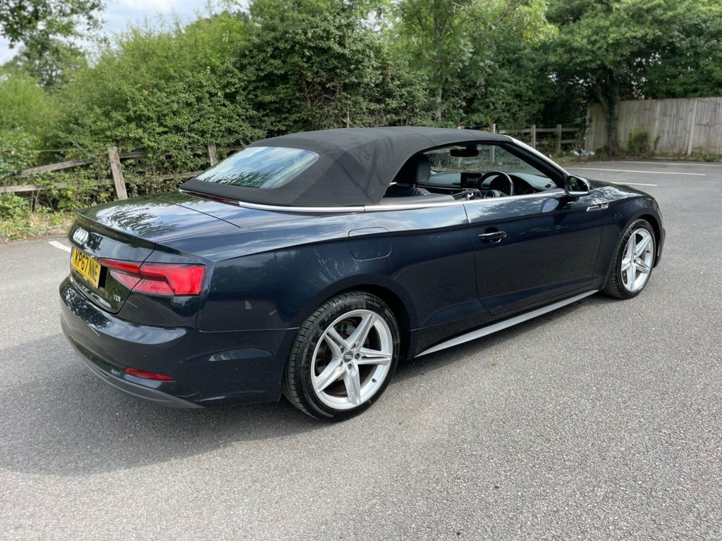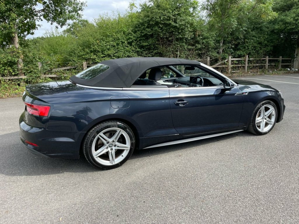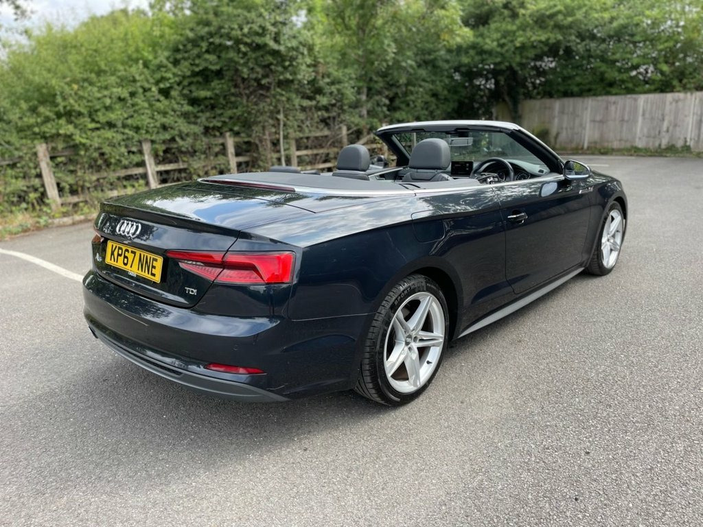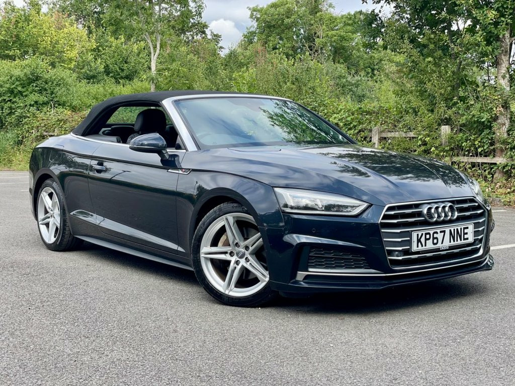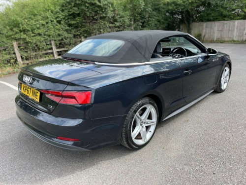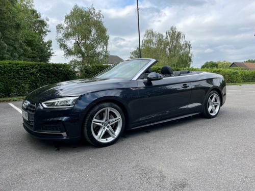 With only 2 former keepers  this 2017 Audi A5 Cabriolet TDI S line is a good choice, it's been very well maintained with service history. MOT 28/08/26. Spare key. As a stylish cabriolet, it combines open-top thrills with Audi's renowned engineering. The S line trim adds a sporty edge to the vehicle's appearance and driving experience. Equipped with a 2.0L diesel engine and meeting Euro 6 emission standards, this A5 offers a blend of performance and efficiency. Enjoy the convenience of automatic headlights with the light and rain sensor, set the perfect temperature with the deluxe 3-zone electronic climate control, and benefit from the enhanced visibility of LED headlights with dynamic rear indicators. Manoeuvring is made easy with Parking System Plus, including front and rear parking sensors, and staying connected is simple with the Bluetooth interface. For peace of mind, this vehicle includes a 3-month warranty.  This A5 Cabriolet stands out with its impressive fuel economy, achieving up to 61 mpg, meaning fewer trips to the petrol station and more money in your pocket. The low CO2 emissions also mean you'll be contributing to a cleaner environment. Furthermore, the car's acceleration, reaching 0-60mph in 8.0 seconds, demonstrates its responsive performance, making every drive enjoyable. 18in Alloy Wheels - 5-Twin-Spoke Star De, 2 x USB Charging Ports and 1 x AUX-IN, 4-Airbag System, 4-Way Electric Lumbar Support, ABS - Anti-Lock Braking System, Acoustic Hood - Fully Automatic, Acoustic Soft Top - Black, Air Inlets - Horizontal Inlay in Matt Al, Anti Theft Locking Wheel Bolts, Anti-Theft Alarm, Audi Connect Infotainment Services - 3 M, Audi Connect Safety and Service, Audi Drive Select, Audi Smartphone Interface, Audi Sound System, Auto-Dimming Rear-View Mirror, Bluetooth Interface, Body Coloured Door Mirrors, CD Drive, Chrome-Plated Exhaust Trim, Cloth Headlining in Black, Colour Drivers Information System with 7, Contrast Stitching on Seats - Steering W, Cruise Control wit