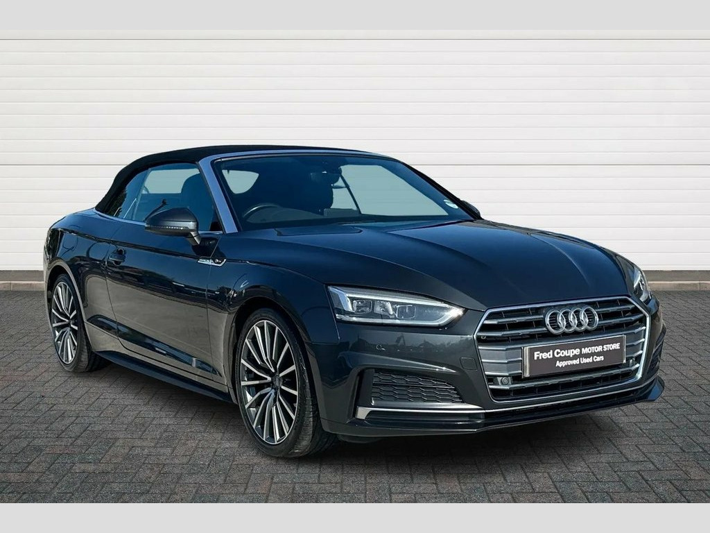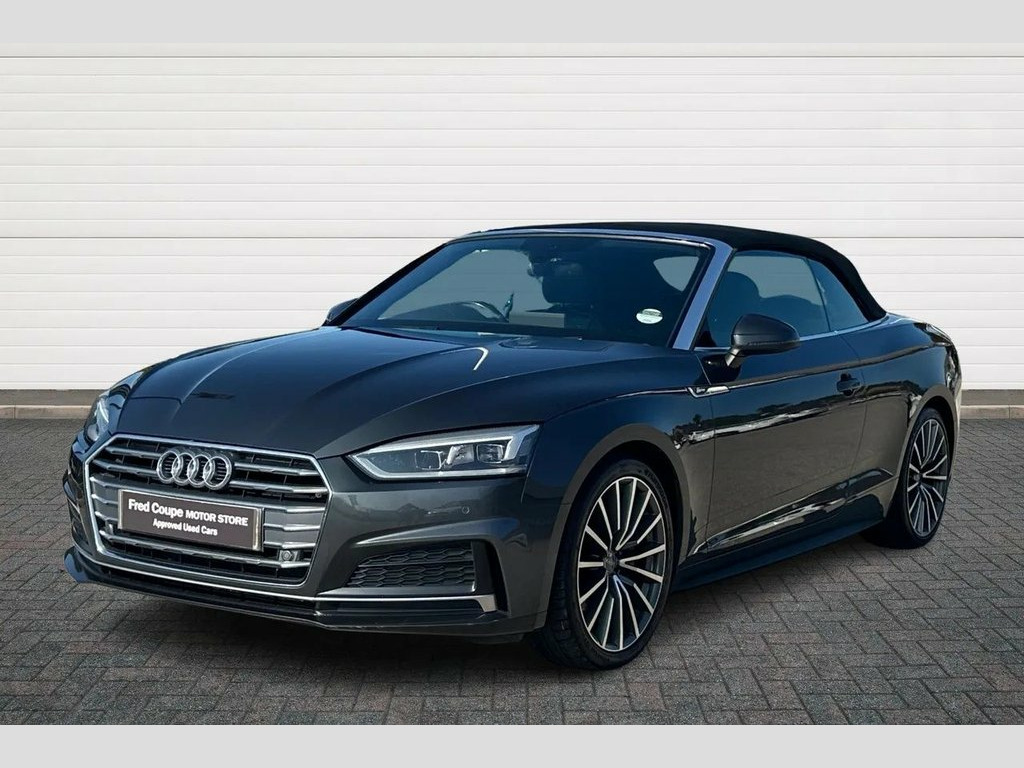 This 2017 Audi A5 Cabriolet 2.0 diesel automatic TDI S line offers exceptional provenance with a full dealership service history and Audi manufacturer approval, complemented by a remarkably low mileage of just 33,600 miles for its age. Finished in the stylish S line trim, this convertible features a responsive 2.0L diesel engine, meeting Euro 6 emissions standards and has the factory fitted Technology Pack costing £1,395 and the 19" x 8.5J 'multi-spoke' design alloy wheels with 255/35 R19 tyres costing £1,050. Experience impressive efficiency with a fuel economy of up to 61 miles per gallon, indicating how this vehicle is better than others in its class. The A5 Cabriolet also boasts a generous boot space, providing practicality alongside its open top driving pleasure. Furthermore, its low CO2 emissions highlight its environmental consideration. For those seeking performance, this Audi delivers a swift 0 to 60 miles per hour acceleration in just 8.0 seconds, demonstrating how this vehicle is better than many similar models. Fred Coupe is a NISSAN and INFINITI authorised repairer and a multiple global award winner for customer service as well as a 4th generation family business. We pride ourselves on quality, reliability, great service and good value. *Buy online, visit www.fredcoupe.co.uk * The vehicle comes with a 6 month warranty and we can deliver nationwide. We charge NO administration fee. Vehicle registered: 01/09/2017 18in Alloy Wheels - 5-Twin-Spoke Star De, 2 x USB Charging Ports and 1 x AUX-IN, 4-Airbag System, 4-Way Electric Lumbar Support, ABS - Anti-Lock Braking System, Acoustic Hood - Fully Automatic, Acoustic Soft Top - Black, Air Inlets - Horizontal Inlay in Matt Al, Anti Theft Locking Wheel Bolts, Anti-Theft Alarm, Audi Connect Infotainment Services - 3 M, Audi Connect Safety and Service, Audi Drive Select, Audi Smartphone Interface, Audi Sound System, Auto-Dimming Rear-View Mirror, Bluetooth Interface, Body Coloured Door Mirrors, CD Drive, Chrome-Plated Exhaust Trim, Cloth Headlining in Black, Colour Drivers Information System with 7, Contrast Stitching on Seats - Steering W, Cruise Control wit
