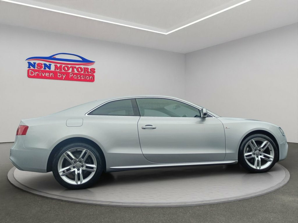 Here we have a striking example of the economical and reliable Audi A5 in the eye-catching SILVER colour. Having covered only 54510 miles with full service histroy, you can be confident this car is in great condition. The car has recently been serviced. The car has 2 owners. The mileage is warranted and backed up by MOT data. MOT Expiry: 8 September 2026.This Car is HPI Checked as well as cleared for your peace of mind and we have provided you with a digital copy of the full report for free. some of the features on this car are Navigation HDD, Parking Sensor(s), Climate Control, Leather Trim, Space Saver Spare Wheel and 18" Alloy Wheels. It also has as standard a leather steering wheel and leather gear knob which help to lift this car to premium-feeling. The car is also very spacious and the seats are extremely comfortable, making the Audi A5 ideal for any kind of journey. All our vehicles come with free AA roadside assistance for twelve months from purchase and a massive discount to upgrade to home start. The car comes wtih 6 months nation wide warranty. Out of hours appointments available upon request. If a vehicle's MOT is less than 6 months, a fresh 12 months MOT can be provided. Supplied by us as a used car, with a multi-point detailed inspection of the car to be carried out upon purchase with the customer. We welcome all kinds of inspection/test drive by yourselves or by hiring the services of a professional mechanic before you purchase from us. We are a pri Audi Parking System Plus, Mobile Telephone Preparation - High with, Heated Front Seats, Convenience Package, Steering Wheel - Audi Exclusive Leather , Interior Light Package, 12V Power Socket - Centre Console, 18in Alloy Wheels - 5-Double-Spoke Desig, 6.5in Display Screen, ABS - Anti-Lock Braking System, AUX-IN Socket, Airbags - Driver, Airbags - Front Passenger, Airbags - Front Side, Airbags - Head Level Side For Front and , Alarm - Thatcham Category 1, Anti Theft Locking Wheel Bolts, Auto Opening Boot Lid, Auto-Dimming Rear-View Mirror, Automatic Wipers with Rain Sensor, Car Jack, Climate Control - Electronic 3-Zone, Cloth Headlining in Black, Colour Drivers Information System - DIS, Conce