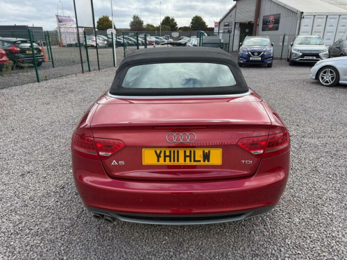 This 2011 Audi A5 2.0 TDI S line Euro 5 (s/s) 2dr Convertible is currently available for £4,499 in Newport Gwent with Diesel engine and Manual gearbox. For more information or to arrange a viewing, click here to send us an email using form below.
