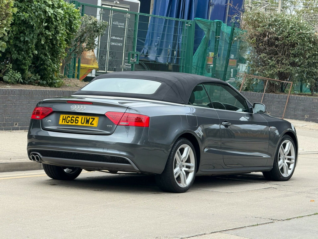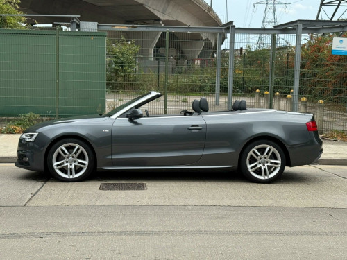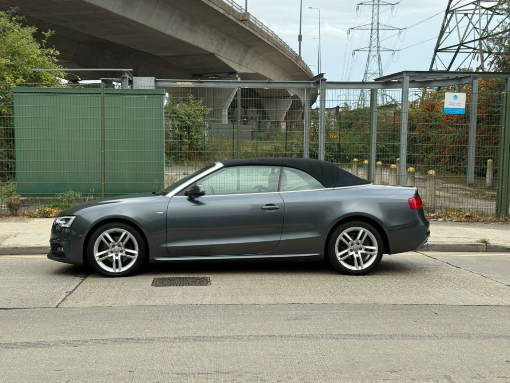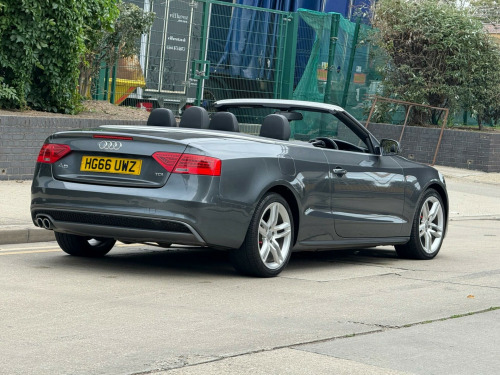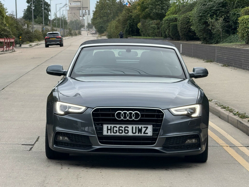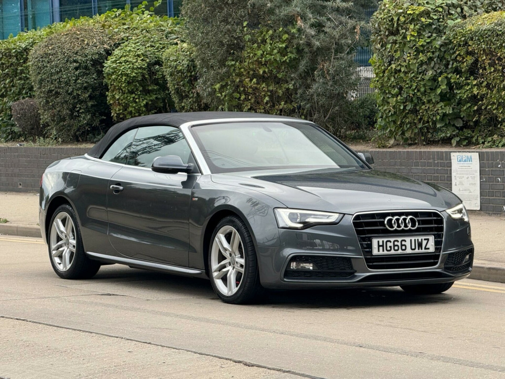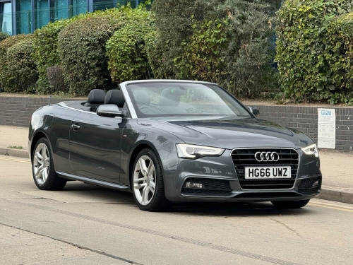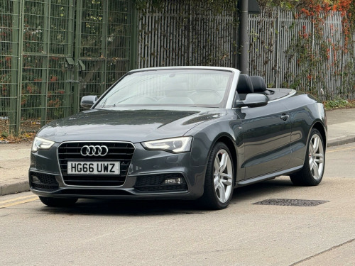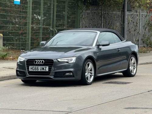 This 2017 Audi A5 Cabriolet TDI S line offers exceptional value with its remarkably low mileage of just 56,000 miles for its age. As a Euro 6 compliant model, it features a capable 2.0 litre diesel engine, paired with an S line trim that includes the desirable Audi Exclusive Line package. Inside, you'll find the comfort of Sports Seats upholstered in a striking two-tone Fine Nappa leather in Cognac Brown and Black. Practicality is also a strong point, with a generous boot space for your luggage and ISOFIX child seat mountings for rear seats, ensuring peace of mind for families.The driving experience is further enhanced by the S line 3-spoke leather steering wheel, complete with gear shift paddles for manual control of the automatic transmission. This Audi A5 Cabriolet achieves 0-60mph in a brisk 8.0 seconds, demonstrating its responsive performance. The inclusion of remote central locking adds to the convenience. These features collectively highlight how this particular A5 Cabriolet stands out, offering a blend of sophisticated style, engaging performance, and practical usability.FINANCE AVAILABLE, you can apply finance on our website at www.carsealtd.co.uk, If your finance is approved, you can drive the car same day. Recently Mot and Serviced, ULEZ Qualified, Full Service Done, 1 year AA breakdown cover also available for complete peace of mind. Call for more info * Viewing by appointments available* Open 6-days a week Monday to Saturday, Warranty Supplied * P/X Welcome * 100% HPI Clear * VOSA * HPI * Experian Checked and Verified * 5 Days Drive Away Insurance Available * T&C's Apply. 100% Customer Satisfaction. Please call us for more information and to book an appointment to view the car. 1 year AA breakdown cover also available for complete peace of mind. Finance arranged. Please note All our cars attract £99 admin fee. OUR SHOWROOM ADDRESS: 10 Choats Road, Dagenham. RM9 6BF. Please VISIT OUR WEBSITE FOR MORE CARS AT www.carsealtd.co.uk line suspension, s line sports suspension, mobile telephone preparation - high with audi connect, 18in alloy wheels - 10-spoke design, euro 6, fine nappa leather - s line sports seats - black, steering wheel - 3-spoke leather-multifunction-flat bottomed-shift paddles, 12v power socket - centre console, 18in alloy wheels - 5-double-spoke design, abs - anti-lock braking system, aux-in socket, airbags - driver, airbags - front passenger, airbags - front side, alarm - thatcham category 1, anti theft locking wheel bolts, audi parking system plus - front, audi parking system plus - rear, audi sound system speaker package, auto-dimming rear-view mirror, automatic wipers with rain sensor, black hood, car jack, climate control - electronic 3-zone, colour drivers information system - dis, concert radio - mp3-cd player, cruise control, cup holders - centre console, dab digital radio, display screen colour 7in high resolution, door mirrors - electrically adjustable and heated, door sill trims - s line, esp - electronic stability programme, electric windows - front and rear, electromechanical parking brake, electromechanical power steering, exhaust tailpipe - chrome rolled finish, exterior aluminium package, first aid kit, front centre armrest, front fog lights, front and rear floor mats, fully automatic acoustic hood with led passenger reading lights, gear knob - perforated leather, headlights - bi-xenon plus, headlights - light sensor, headlights - range adjustment, headlights washers, heated front seats, isofix child seat mounting for front passenger, isofix child seat mounting for rear seats, immobiliser, inlays - matt brushed aluminium, interior chrome package, led daytime running lights, led rear lights, leather armrests, mmi navigation plus, mobile telephone preparation - bluetooth interface, pollen filter, radiator grille - single frame, rear diffuser - s line design, remote central locking, rest recommendation system, s line badges on wings, s line bumpers, s line side skirts, seats - front sports with electric lumbar support, space saver spare wheel, speakers x10, split-folding rear seats, sport suspension, steering column - rake and reach adjustment, steering wheel - gear shift paddles, steering wheel - multi-function, steering wheel - s line 3-spoke leather, styling package - s line exterior, subwoofer, tool kit, tyre pressure monitoring system, warning triangle, wind deflector