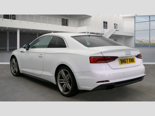 With a full service history and a recent service completed in February 2026 at 85,447 miles, this 2017 Audi A5 TDI S line offers excellent provenance. This stylish coupe is equipped with a 2.0 litre diesel engine and meets Euro 6 emission standards. It comes with a 3 month warranty and a 12 month MOT will be provided on purchase. Notable features include 19 inch 10 spoke alloy wheels, a parking assistance pack with a 360 degree camera and front and rear sensors, folding and auto dimming door mirrors with memory function, a flat bottomed leather trimmed steering wheel, and an extended interior upholstery pack.This Audi A5 TDI S line stands out with its impressive fuel economy, achieving a remarkable 67 miles per gallon, which is better than many similar vehicles. Its low CO2 emissions also contribute to its efficiency and environmental consideration. Furthermore, the generous boot space ensures practicality for everyday use and longer journeys, making it a well rounded choice for discerning drivers.9'' x 8.5J '5-parallel-spoke' design alloy wheels with 245/35 R19 tyres £900Privacy glass £375Door mirrors (folding) £225Piano finish, black £200Extended LED Interior Lighting Pack ? multi-coloured £100Flat-bottomed 3-spoke leather high multi-function steering wheel £100AdBlue® tank 24-litres £0Black Alcantara/leather Front Sport seats with ?S? embossed logo £0Deletion of model and technology designation at rear £0Fuel tank (54 litres) £0Ibis white, solid £0Piano finish, black £0Total Price of Optional Equipment £1,900. 18in Alloy Wheels - 5-Twin-Spoke Star Design, 2 x SDXC Card Readers, 2 x USB Charging Ports and 1 x AUX-IN, 4-Way Electric Lumbar Support, 6-Airbag System, Air Inlets - Horizontal Inlay in Matt Aluminium, Anti Theft Locking Wheel Bolts, Anti-Theft Alarm, Audi Connect Infotainment Services - 3 Month Trial, Audi Connect Safety and Service - e-call, Audi Drive Select, Audi Smartphone Interface, Audi Sound System, Auto-Dimming Rear-View Mirror, Bluetooth Interface, Body Coloured Door Mirrors, CD Drive, Chrome-Plated Exhaust Trim, Cloth Headlining in Black, Contrast Stitching on Seats - Steering Wheel and Gear Lever Gaiter, Cruise Control with Speed Limiter, DAB Digital Radio Reception, Deluxe 3-Zone Electronic Climate Control, Door Mirrors - Electrically Adjustable and Heated with Built-in LED Indicators, Driver Information System - 7in Colour Display, Driver and Front Passenger Airbag with Front Passenger Airbag Deactivation, ESC - Electronic Stabilisation Control inc ABS - ASR and EDL, Electric Boot Lid Release, Electric Windows - Front, Electrically Adjustable Front Seats, Electromechanical Parking Brake, Electromechanical Power Steering, First Aid Kit and Warning Triangle, Front Centre Armrest, Front and Rear Floor Mats, Gear Lever Knob in Black Perforated Leather, Heat-Insulating Glass - Side and Rear Windows, Heated Front Seats, High Gloss Package, High Multi-Function 3-Spoke Leather Steering Wheel, Honeycomb Side Air Inlet Grille in Titan Black, ISOFIX Child Seat Mounting and Top Tether, Illuminated Door Sill Trims with S Logo, Inlays - Matt Brushed Aluminium, Keyless Go, LED Headlights with LED Rear Lights and Dynamic Rear Indicators, LED Interior Light Package, Light and Rain Sensor, Luggage Compartment Mat, MMI Navigation - SD Card Based, MMI Radio Plus with 7in Colour MMI Screen, Model and Engine Technology Badges at Rear, Multi Collision Brake Assist, Non-Smoking Package, Parking System Plus, Pedals and Footrest - Stainless Steel, Pop-Up Bonnet for Pedestrian Protection, Pre-Sense City, Radiator Grille - Twilight Grey Matt with Inlays in Matt Aluminium, Rear Diffuser in Twilight Grey Matt with Honeycomb Grille, Rear Grille - Black Grained, Remote Central Locking, S Line Badges on Front Wings, S Line Front and Rear Bumpers, S line Side Skirts in Black, S line Sports Package, Seat Belt Monitoring, Space Saver Spare Wheel, Split-Folding 2-Seater Rear Seat Bench in 3 Parts - 40-20-40 with Rear Centre Armrest, Sport Suspension, Sun Visors including Vanity Mirrors, Tool Kit and Car Jack, Tyre Pressure Warning Light, Variable Restraint System, Voice Control System, Windscreen with Acoustic Glazing, Privacy Glass, 19in Alloy Wheels - 10-V Spoke Design, Parking Assistance Pack, Extended Interior Upholstery Pack, Flat-Bottomed 3-Spoke Leather Trimmed High Multi-function Steering Wheel, Leather-Alcantara - Sport Seats with S Embossed Logo - Rock Grey, Door Mirrors - Folding with Auto-Dimming and Memory Function. Full service history