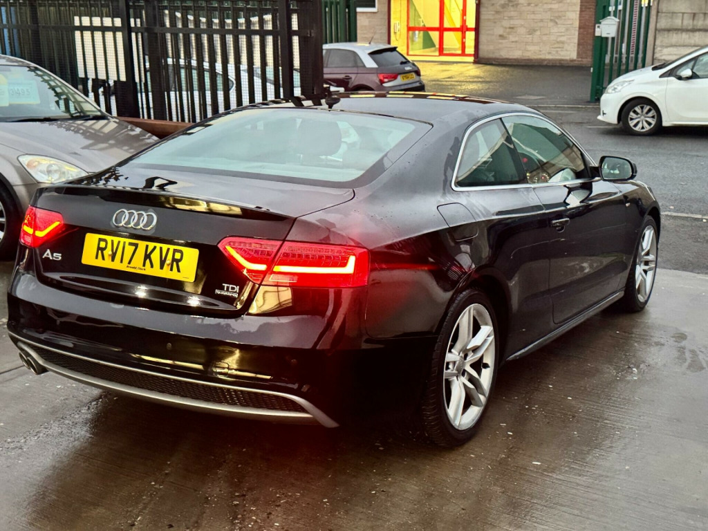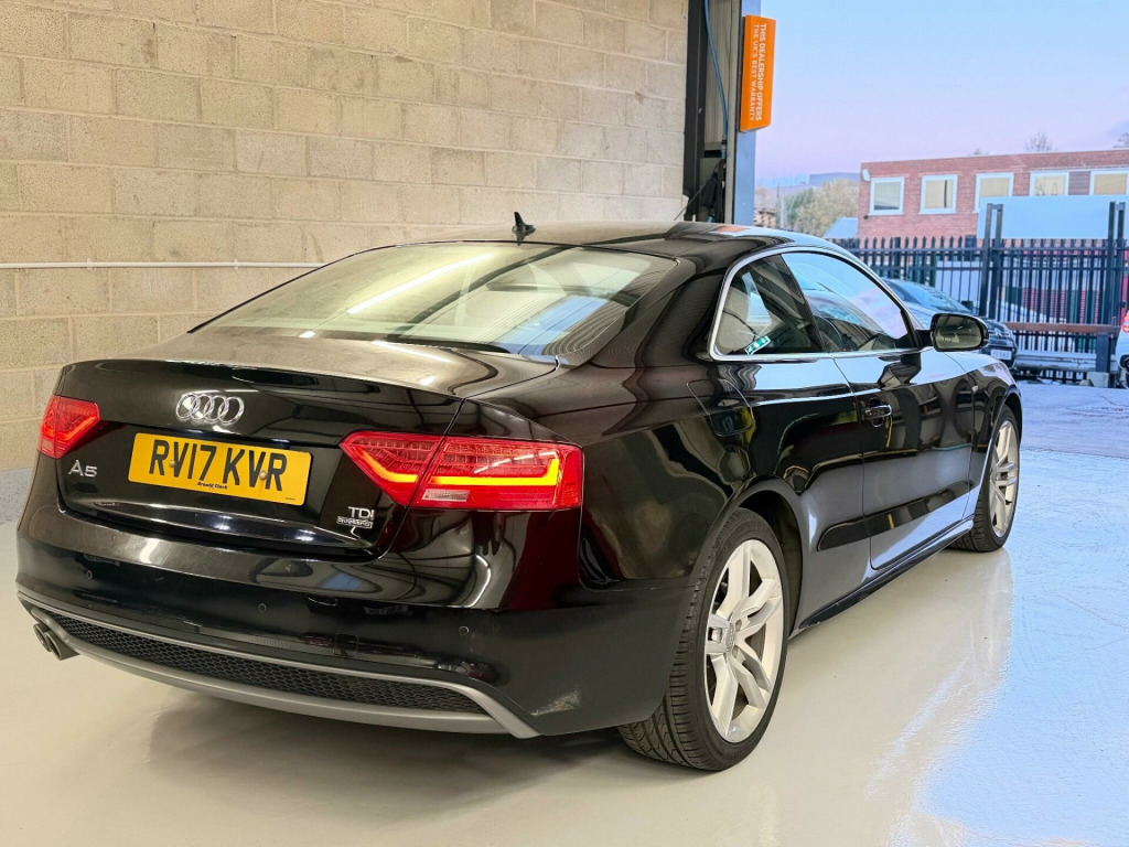 Audi A5 2.0 TDI S line S Tronic quattro Euro 6 (s/s) 2dr,This 2017 Audi A5 TDI S line boasts a recent service in October 2025 at 114,100 miles, offering peace of mind alongside its Euro 6 compliant 2.0 liter diesel engine and four wheel drive system. With only two previous owners and a clear vehicle history check, this S line variant presents well. Inside, you'll find stylish Aluminum Beaufort Black inlays complemented by a Black Styling Package. Enjoy your journeys with the convenience of adaptive cruise control and the premium Bang and Olufsen sound system, all while staying connected with mobile telephone preparation featuring Bluetooth.The Audi A5 TDI S line stands out with its impressive 0-62mph acceleration in just 7.3 seconds, demonstrating its dynamic performance. This vehicle also benefits from a low insurance group, making it a more economical choice to own. Furthermore, the generous boot space ensures practicality for everyday needs and longer trips. A three month warranty is included, and the partial service history indicates ongoing care for this well appointed Audi.For more cars please visit our website https://www.pegasuscarssale.co.uk/3 MONTHS FREE WARRANTY INCLUDED +++PART EXCHANGE WELCOME +++NATIONWIDE DELIVERY AVAILABLE++SAME DAY FINANCE AVAILABLE. WE ALSO PROVIDE A LONG MOT SO BUY WITH CONFIDENCE. 12,24 & 36 MONTHS EXTENDABLE WARRANTY AVAILABLE & THE OPTION OF DRIVE AWAY INSURANCE.ALL DEALER FACILITY ARE OFFERED & WE ARE OPEN 7 DAYS A WEEK. GREAT FINANCE PACKAGE AVAILABLE SO PLEASE INQUIRE WITH US. WE HAVE A DEDICATED AFTER SALES TEAM TO ASSIST WITH POST SALE INQUIRIES.FINANCE FROM A THIRD PARTY COMPANY WILL BE SUBJECT TO A £299 ADMINISTRATION FEE. PLEASE CONFIRM WITH A MEMBER OF STAFF FOR AN ACCURATE SPEC LIST AS THE DATA IS PULLED FROM AUTOTRADER AND NOT ALWAYS CORRECT.. 12V Power Socket x2, 18in Alloy Wheels - 5-Double-Spoke Design, ABS - Anti-Lock Braking System, AUX-IN Socket, Airbags - Driver, Airbags - Front Passenger, Airbags - Front Side, Airbags - Head Level Side For Front and Rear, Alarm - Thatcham Category 1, Anti Theft Locking Wheel Bolts, Audi Parking System Plus - Front, Audi Parking System Plus - Rear, Audi Sound System, Auto Opening Boot Lid, Auto-Dimming Rear-View Mirror, Automatic Wipers with Rain Sensor, Car Jack, Climate Control - Electronic 3-Zone, Cloth Headlining in Black, Colour Centre Console Screen, Colour Drivers Information System - DIS, Concert Radio - MP3-CD Player, Cruise Control, Cup Holders - Centre Console, DAB Digital Radio, Display Screen Colour 7in High Resolution, Display Screen Colour TFT 7in High Resolution, Door Mirrors - Electrically Adjustable and Heated, Door Sill Trims - S Line, ESP - Electronic Stability Programme, Electric Windows - Front, Electromechanical Parking Brake, Electromechanical Power Steering, Exhaust Tailpipe - Chrome Rolled Finish, Exterior Aluminium Package, First Aid Kit, Front Centre Armrest, Front Fog Lights, Front and Rear Floor Mats, Gear Knob - Perforated Leather, Headlights - Bi-Xenon Plus, Headlights - Light Sensor, Headlights - Range Adjustment, Headlights Washers, Heated Front Seats, ISOFIX Child Seat Mounting for Front Passenger, ISOFIX Child Seat Preparation for Rear Seats with Top Tether, Inlays - Matt Brushed Aluminium, Intelligent Key, Interior Chrome Package, LED Daytime Running Lights, LED Rear Lights, Leather Armrests, MMI Navigation Plus, Mobile Telephone Preparation - Bluetooth Interface, Pollen Filter, Radiator Grille - Single Frame, Rear Diffuser - S Line Design, Rest Recommendation System, S Line Badge on Wings, S Line Bumpers, S Side Skirts, SDHC Card Reader x2, Seats - Front Sports with Electric Lumbar Support, Space Saver Spare Wheel, Speakers x10, Split Folding Rear Seat, Sport Suspension, Steering Column - Rake and Reach Adjustment, Steering Wheel - 3-Spoke Leather/Shift Paddles, Steering Wheel - Gear-Shift Paddles, Steering Wheel - Multi-function, Styling Package - S line Exterior, Tool Kit and Car Jack, Tyre Pressure Monitoring System, Warning Triangle, Audi Parking System Advanced, Bang and Olufsen Sound System, Mobile Telephone Preparation - Low with Bluetooth, Cruise Control - Adaptive with Brake Guard, Audi Hill Hold Assist, Black Styling Package, Door Mirrors - Heated-Electrically Adjustable-Folding, Door Mirrors - Heated-Electrically Adjustable-Folding-Auto-Dimming, Floor Mats - Audi Exclusive with Leather Piping, Inlays - Aluminium - Beaufort Black. Part service history