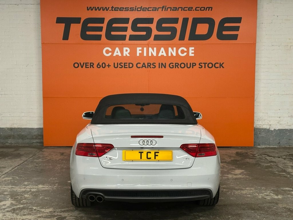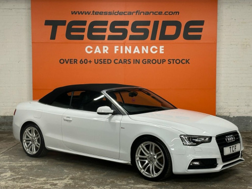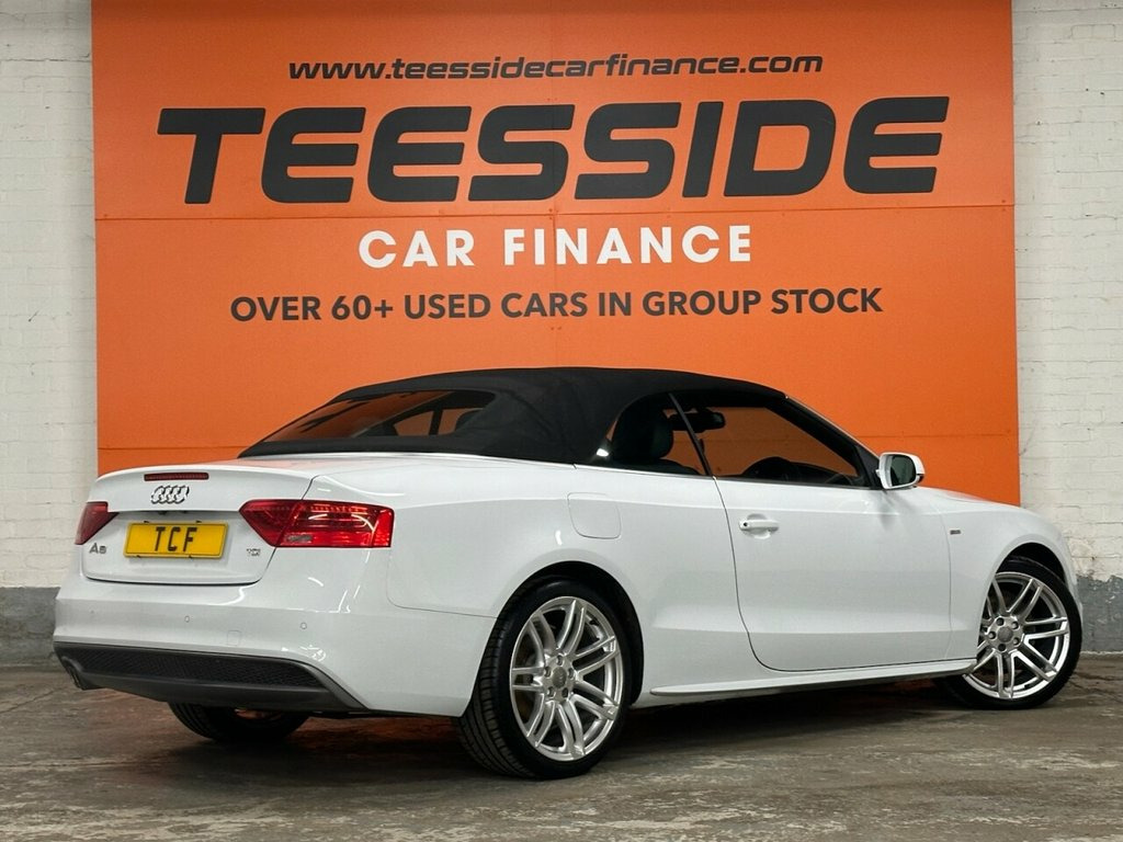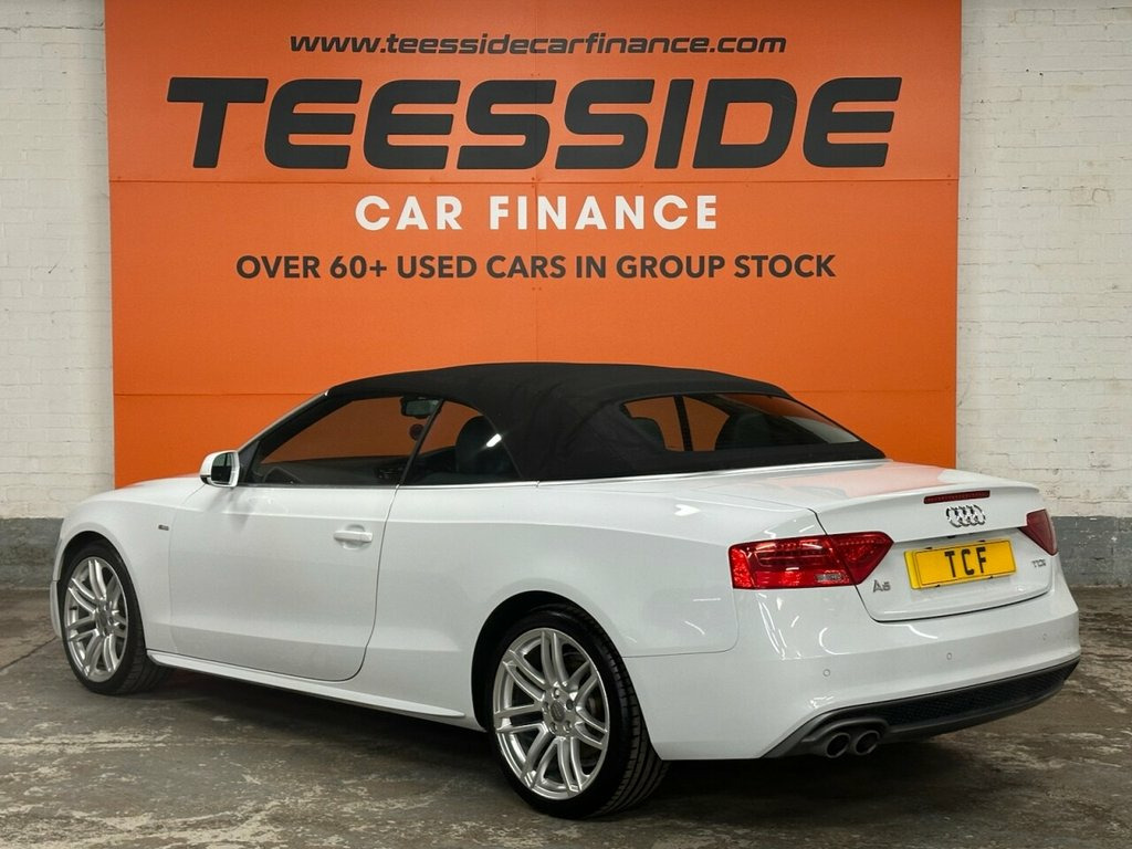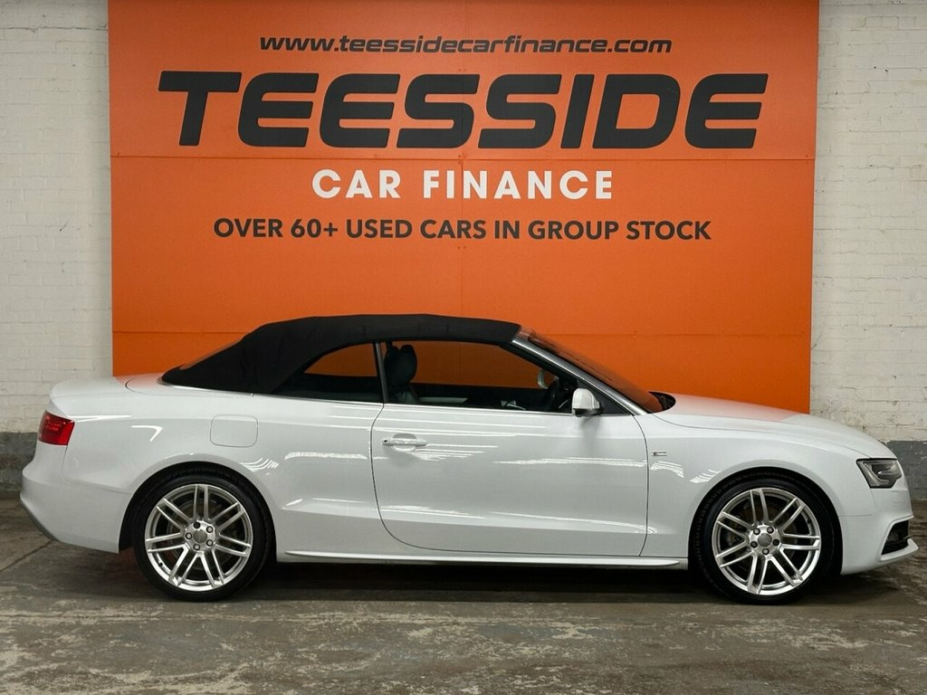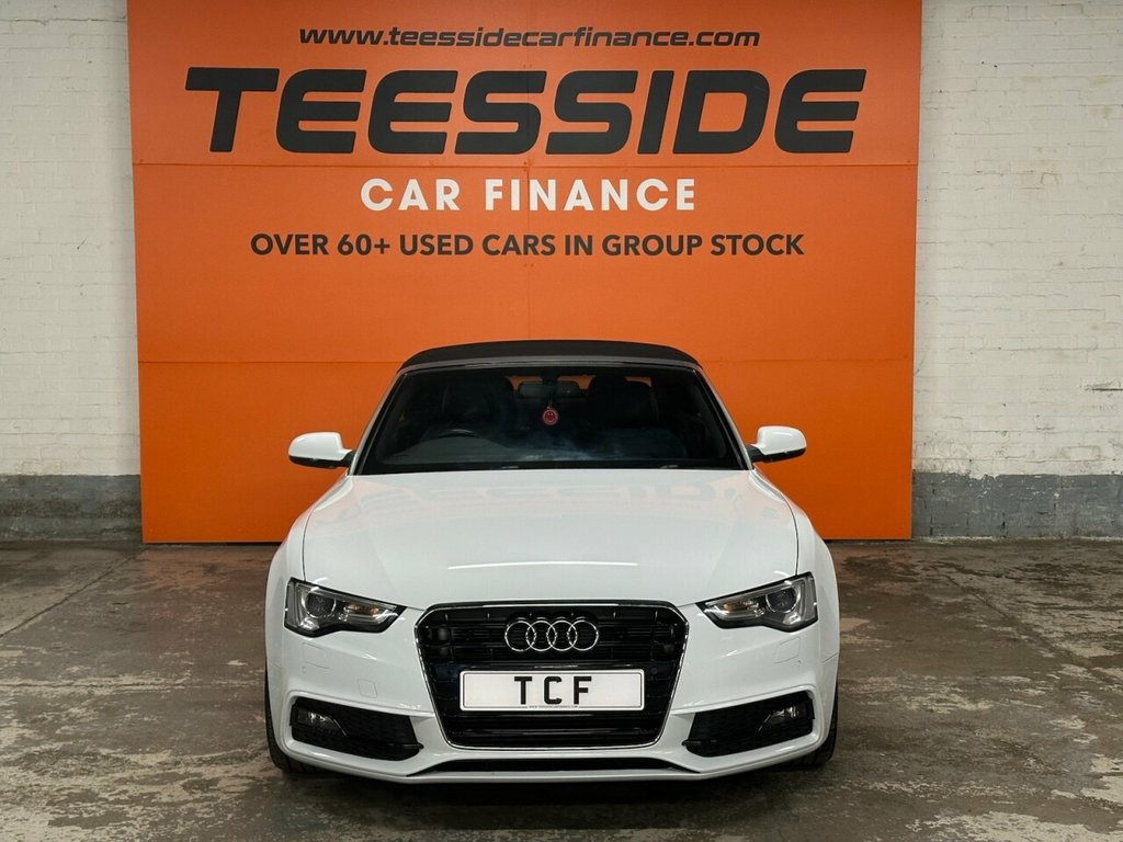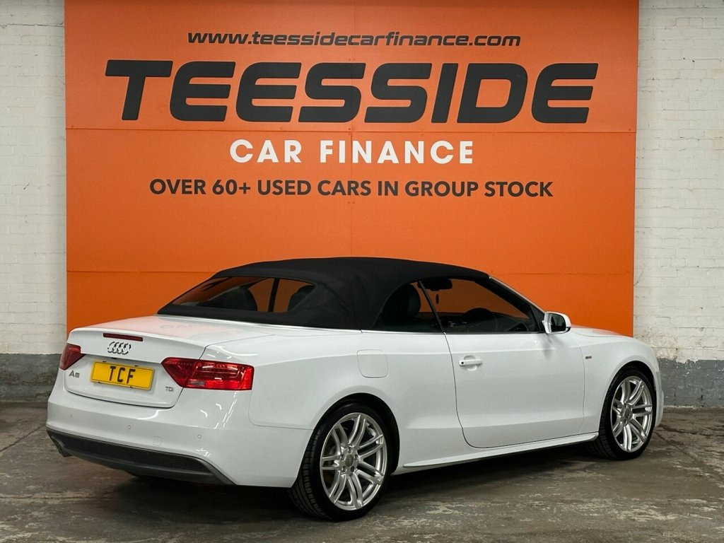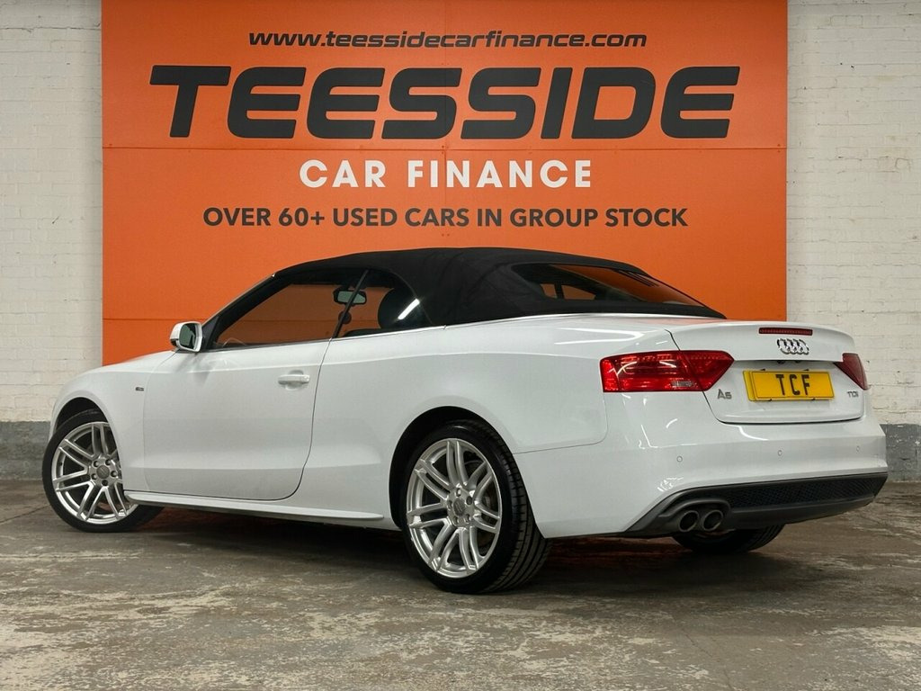 AUDI A5 CABRIOLET 2.0 TDI S line Special Edition Convertible 2dr Diesel Manual Euro 5 (s/s) (177 ps) About This Vehicle Year: 2014 Mileage: 65,803 miles Engine Size: 2.0 ltr Colour: White Keepers: 2 Body Style: Convertible Transmission: Manual Fuel Type: Diesel Insurance Group: 30 12mths Tax: £165.00 Service History To be confirmed. Key Features S line Special Edition styling Full leather interior 18in alloy wheels Dual-zone climate control Rear parking sensors Heated front seats Electric roof operation Audi Concert infotainment system with Bluetooth Description This 2014 Audi A5 Cabriolet S line Special Edition offers open-top motoring with Audi's signature quality and refinement. Finished in White with S line styling, this convertible combines sporty looks with comfort, making it perfect for summer drives or long-distance cruising. Powered by the efficient 2.0 TDI 177ps engine, it delivers strong performance while maintaining impressive fuel economy. With its luxury interior, practical 2+2 seating, and premium specification, this Cabriolet is a fantastic mix of style and everyday usability. 12V Power Socket - Centre Console, 19in Alloy Wheels - 7-Double-Spoke Desig, ABS - Anti-Lock Braking System, AMI - Audi Music Interface, AUX-IN Socket, Airbags - Driver, Airbags - Front Passenger, Airbags - Front Side, Alarm - Thatcham Category 1, Anti Theft Locking Wheel Bolts, Audi Parking System Advanced, Audi Parking System Plus - Front, Audi Parking System Plus - Rear, Auto Opening Boot Lid, Auto-Dimming Rear-View Mirror, Automatic Wipers with Rain Sensor, Bang and Olufsen Sound System, Black Hood, Car Jack, Climate Control - Electronic 3-Zone, Colour Drivers Information System - DIS, Concert Radio, Cruise Control, Cup Holders - Centre Console, DAB Digital Radio, Display Screen Colour 7