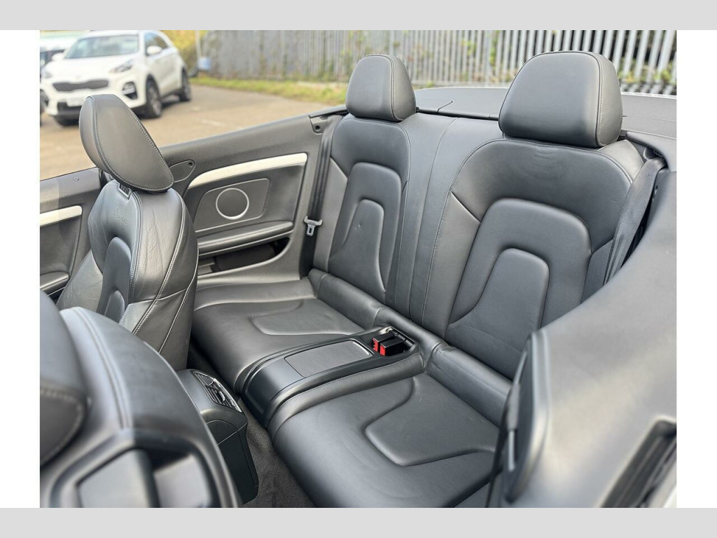This 2013 Audi A5 Cabriolet TDI S line Special Edition stands out with its exceptionally low mileage of just 59,000 miles for a vehicle of its age. This particular model features the desirable 2.0 litre diesel engine and is presented in the S line Special Edition trim. For your convenience, it includes mobile telephone preparation with a Bluetooth interface, front and rear parking sensors to assist with manoeuvring, and heated front seats for added comfort.The A5 Cabriolet also boasts a premium Bang and Olufsen sound system, offering an enhanced audio experience. Its low insurance group rating is a notable highlight, suggesting that running costs could be more economical compared to similar vehicles. This combination of refined features, excellent condition, and practical considerations makes this Audi A5 Cabriolet a compelling choice.. 12V Power Socket - Centre Console, 6.5in Display Screen, AMI - Audi Music Interface, Bang and Olufsen Sound System, Concert Radio, DAB Digital Radio, Mobile Telephone Preparation - Bluetooth Interface, Speakers x10, Audi Parking System Plus, Colour Drivers Information System - DIS, Cruise Control, Parking Sensors - Front, Rear Parking Sensors, Rest Recommendation System, 19in Alloy Wheels - 5-Segment-Spoke Design, Anti Theft Locking Wheel Bolts, Door Mirrors - Electrically Adjustable and Heated, Electric Windows - Front and Rear, Exterior Aluminium Package, Fully Automatic Acoustic Hood with LED Passenger Reading Lights, Radiator Grille - High Gloss Black, Space Saver Spare Wheel, Styling Package - S line Exterior, Wind Deflector, Front Fog Lights, Headlights - Bi-Xenon Plus, Headlights - Light Sensor, Headlights Washers, LED Daytime Running Lights, LED Rear Lights, Auto Opening Boot Lid, Auto-Dimming Rear-View Mirror, Automatic Wipers with Rain Sensor, Car Jack, Climate Control - Electronic 3-Zone, Cup Holders - Centre Console, Door Sill Trims - S Line, Front and Rear Floor Mats, Front Centre Armrest, Gear Knob - Perforated Leather, Head Level Heating, Headlights - Range Adjustment, Heated Front Seats, Inlays - Matt Brushed Aluminium, Leather Armrests, Seats - Front Sports with Electric Lumbar Support, Split Folding Rear Seat, Steering Column - Rake and Reach Adjustment, Steering Wheel - 3-Spoke Leather, Steering Wheel - Multi-function, Tool Kit, Electromechanical Power Steering, Sport Suspension, ABS - Anti-Lock Braking System, Airbags - Driver, Airbags - Front Passenger, Airbags - Front Side, Alarm - Thatcham Category 1, Electromechanical Parking Brake, ESP - Electronic Stability Programme, First Aid Kit, Intelligent Key, ISOFIX Child Seat Preparation Front and Rear, Warning Triangle.