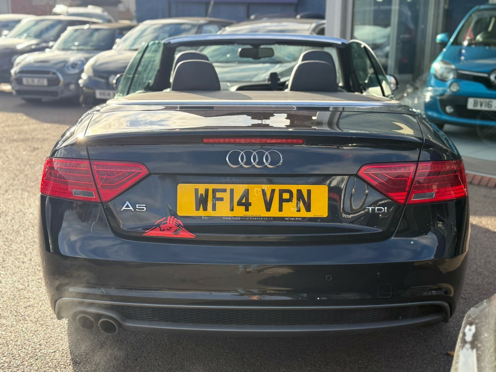 This 2014 Audi A5 2.0 TDI S line Special Edition Convertible 2dr Diesel Multitronic Euro 5 (s Convertible is currently available for £7,890 in Kettering Northamptonshire with Diesel engine and Automatic gearbox. For more information or to arrange a viewing, click here to send us an email using form below.