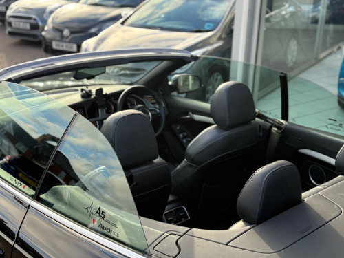 This 2014 Audi A5 Cabriolet boasts a sleek design with just 74428 miles on the clock. Powered by a 2.0 TDI S line Special Edition Diesel engine, this convertible is both powerful and fuel-efficient, perfect for those long drives in the countryside. With MOT expiring on 18/08/2026, you can rest assured of its roadworthiness for years to come. The interior offers 4 seats and includes luxury features such as Bang and Olufsen Sound System, Concert Radio, and AUX-IN Socket. The exterior is finished with 2 doors, making it a stylish and practical choice for those who seek a balance between performance and elegance. This Euro 5 (s/s) (177 ps) Audi A5 Cabriolet is a perfect blend of power and luxury, ready to make every journey an unforgettable experience., v power socket - centre console, ami - audi music interface, aux-in socket, bang and olufsen sound system, concert radio, dab digital radio, display screen colour 7in high resolution, display screen colour tft 7in high resolution, mmi navigation plus, mobile telephone preparation - bluetooth interface, speakers x10, 19in alloy wheels - 7-double-spoke design, anti theft locking wheel bolts, black hood, door mirrors - electrically adjustable and heated, electric windows - front and rear, exterior aluminium package, fully automatic acoustic hood with led passenger reading lights, radiator grille - high gloss black, space saver spare wheel, styling package - s line exterior, wind deflector, abs - anti-lock braking system, airbags - driver, airbags - front passenger, airbags - front side, alarm - thatcham category 1, esp - electronic stability programme, electromechanical parking brake, first aid kit, isofix child seat mounting for front passenger, isofix child seat preparation for rear seats with top tether, intelligent key, warning triangle, audi parking system advanced, audi parking system plus - front, audi parking system plus - rear, colour drivers information system - dis, cruise control, electromechanical power steering, rest recommendation system, sport suspension, tyre pressure monitoring system, auto opening boot lid, auto-dimming rear-view mirror, automatic wipers with rain sensor, car jack, climate control - electronic 3-zone, cup holders - centre console, door sill trims - s line, front centre armrest, front and rear floor mats, gear knob - perforated leather, head level heating, headlights - range adjustment, heated front seats, heated outer rear seats, inlays - matt brushed aluminium, leather armrests, pollen filter, seats - front sports with electric lumbar support, split folding rear seat, steering column - rake and reach adjustment, steering wheel - 3-spoke leather, steering wheel - multi-function, tool kit, front fog lights, headlights - bi-xenon plus, headlights - light sensor, headlights washers, led daytime running lights, led rear lights