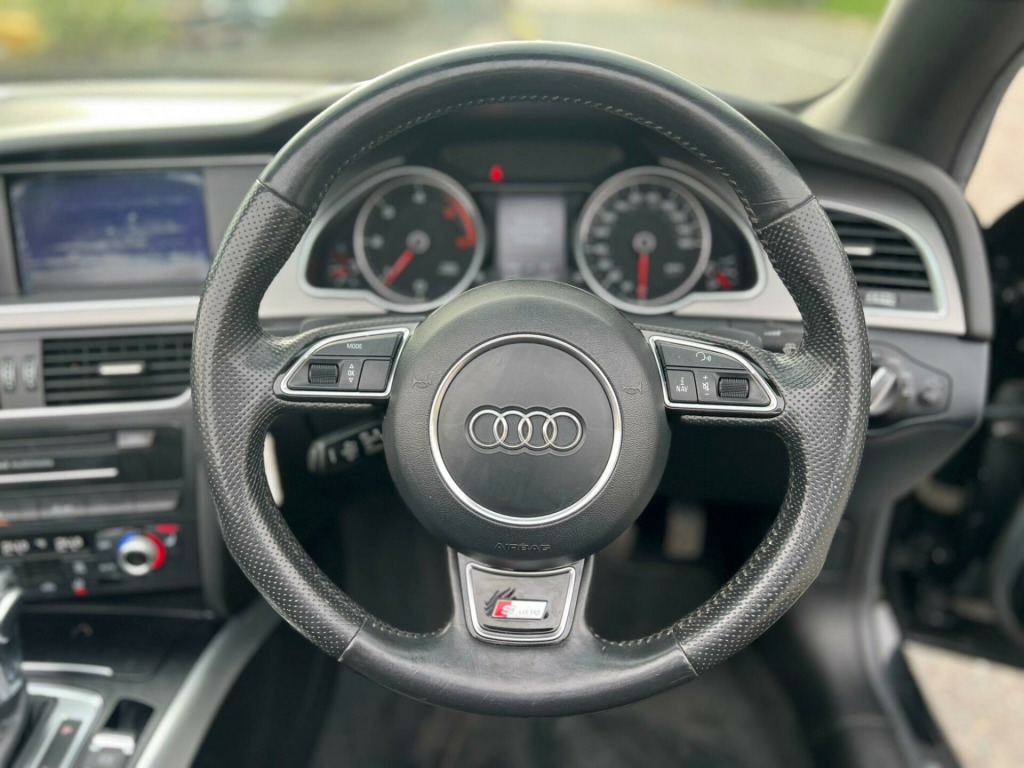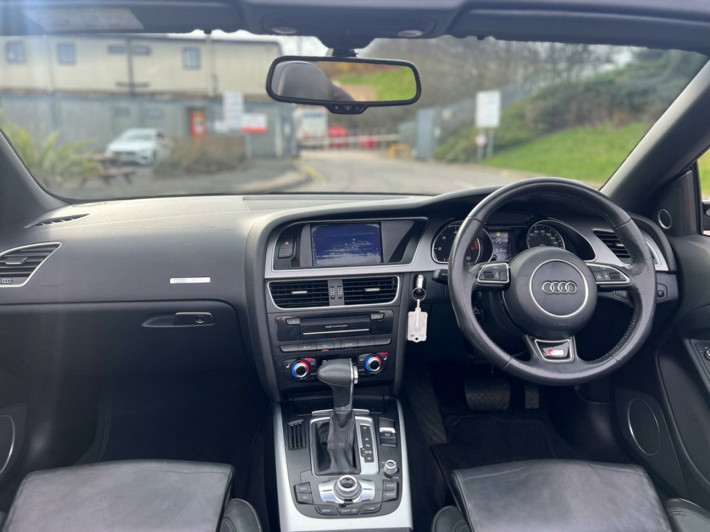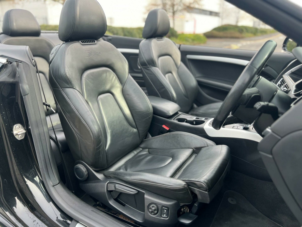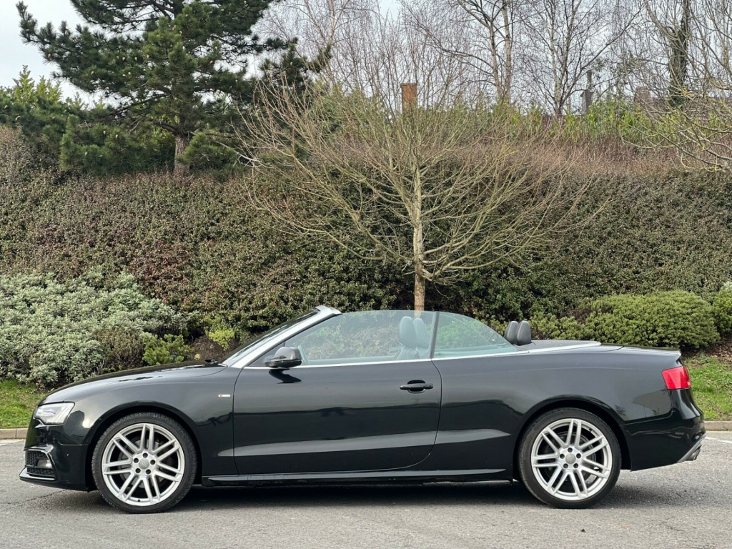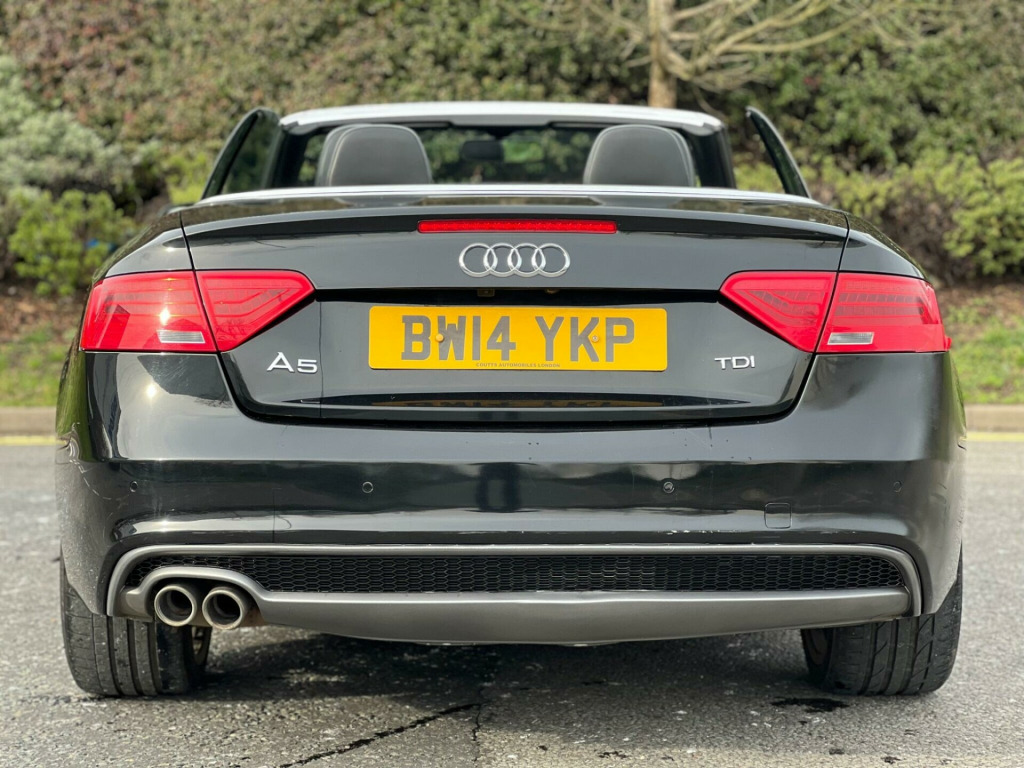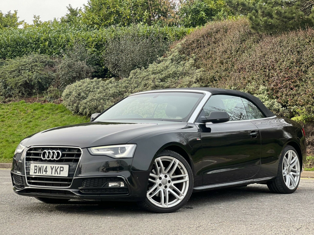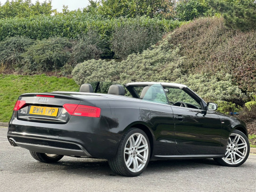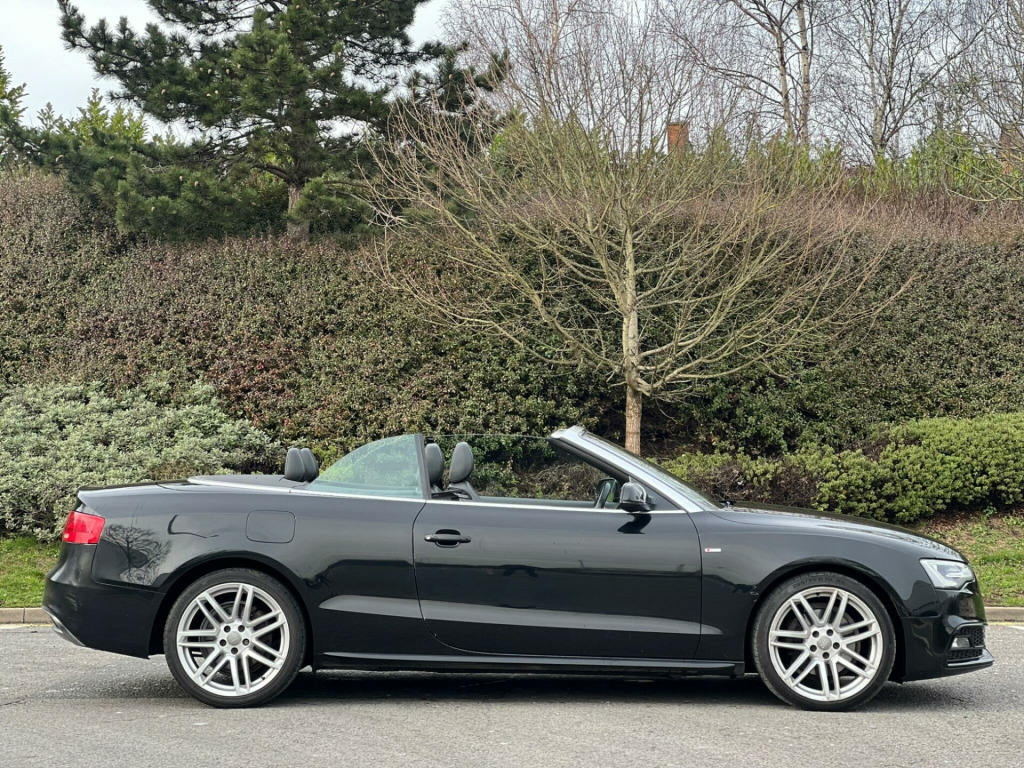 2014 Audi A5 Cabriolet 2.0 TDI S line Special Edition Multitronic Euro 5 (s/s) 2dr in Black. 74000 warranted miles on the clock. Car comes with a 12 Month Warranty!!! MOT till 13th March 2026. Service History Available. Car starts and drives well with no mechanical faults. Full V5 Available. Good spec including: Sat Nav, Heated Leather Seats, Leather Steering Wheel, CD/DAB Radio/AUX/USB, Bluetooth, AC/Dual Zone Climate Control, Electric Windows, Electric Mirrors, Alloy Wheels, Cruise Control, Parking Sensors, Xenon Headlights, Central Locking and many more. Nationwide Delivery Available. P/X Welcome. HPI Clear. 2 Keys. Any questions don't hesitate to contact us on 07443456706. Whatsapp available as well v power socket - centre console, 19in alloy wheels - 5-segment-spoke design, 6.5in display screen, abs - anti-lock braking system, ami - audi music interface, airbags - driver, airbags - front passenger, airbags - front side, alarm - thatcham category 1, anti theft locking wheel bolts, audi parking system plus, auto opening boot lid, auto-dimming rear-view mirror, automatic wipers with rain sensor, bang and olufsen sound system, car jack, climate control - electronic 3-zone, colour drivers information system - dis, concert radio, cruise control, cup holders - centre console, dab digital radio, door mirrors - electrically adjustable and heated, door sill trims - s line, esp - electronic stability programme, electric windows - front and rear, electromechanical parking brake, electromechanical power steering, exterior aluminium package, first aid kit, front centre armrest, front fog lights, front and rear floor mats, fully automatic acoustic hood with led passenger reading lights, gear knob - perforated leather, head level heating, headlights - bi-xenon plus, headlights - light sensor, headlights - range adjustment, headlights washers, heated front seats, isofix child seat preparation front and rear, inlays - matt brushed aluminium, intelligent key, led daytime running lights, led rear lights, leather armrests, mobile telephone preparation - bluetooth interface, parking sensors - front, radiator grille - high gloss black, rear parking sensors, rest recommendation system, seats - front sports with electric lumbar support, space saver spare wheel, speakers x10, split folding rear seat, sport suspension, steering column - rake and reach adjustment, steering wheel - 3-spoke leather, steering wheel - multi-function, styling package - s line exterior, tool kit, warning triangle, wind deflector
