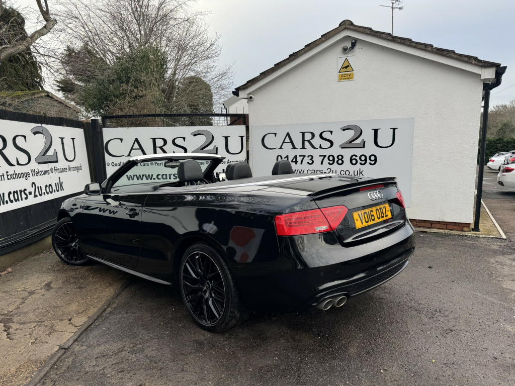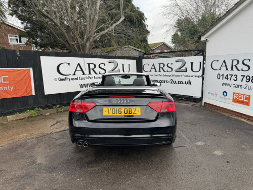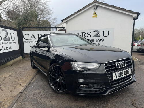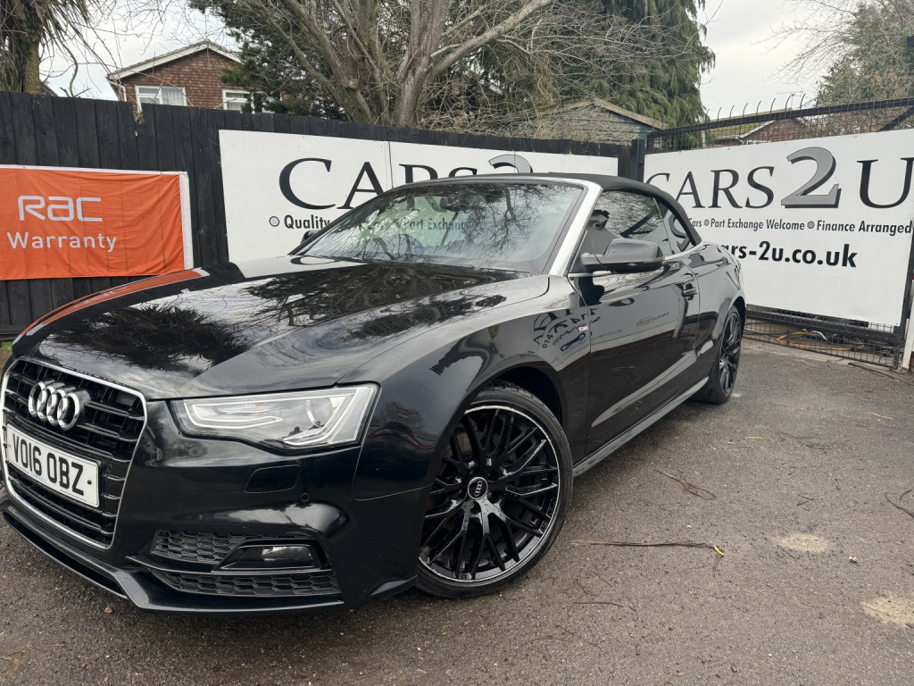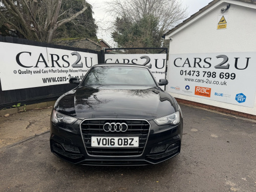 Cars2u - Quality Used Cars with a Personal Touch, , , stablished in 2012, Cars2u is a family-run business dedicated to providing quality used vehicles with a friendly ,no-pressure approach. Conveniently located on the outskirts of Ipswich, we have excellent transport links via the A12 and A14 and are just a 10 minute drive from Ipswich train station. , , At Cars2u , every vehicle we sell is HPI clear and undergoes a full inspection to ensure it meets our high standards .For added peace of mind ,all cars come with an RAC warranty. We also offer finance options ,part exchange and nationwide delivery, making it easier than ever to find your perfect car. , , Our focus is on customer satisfaction, providing a relaxed and professional service without the pressure of a hard sell. whether youre looking for your next car or simply exploring your options were here to help, , .Visit Cars2u today and experience a stress-free way to buy a car. , WE ARE VERY PLEASED TO OFFER THIS VERY GOOD LOOKING VERY CLEAN ULEZ 2016 16 AUDI A5 2.0 TDI 190 S LINE SPECIAL EDITION PLUS CONVERTIBLE , GOOD SPEC ,SHE HAS COVERED A MEAR 128,000 MILES FROM NEW HAS A GOOD SERVICE RECORD ,SHE WILL BE SERVICED WHEN SOLD AS WELL AS A CURRENT MOT UNTILL 01/2027 AND WILL COME WITH A 3 MONTH RAC WARRANTY FOR HER NEW OWNERS COMPLETE PEACE OF MIND.