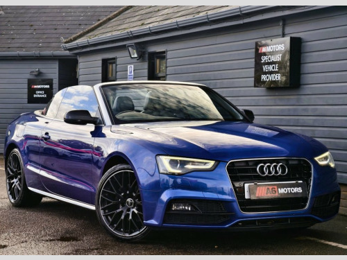 SAME DAY FINANCE AVAILABLE WITH £0 DEPOSIT. CALL OUR FINANCE TEAM FOR A QUOTATION TODAY. REQUEST A PERSONALISED VIDEO TODAY. STUNNING AUDI A5 S LINE SPECIAL EDITION PLUS CABRIOLET WITH JUST 2 OWNERS FROM NEW.. GOOD CONDITION THROUGH OUT. DRIVES WELL. Audi Hill Hold Assist, Sepang Blue, Convenience Package, 19in Alloy Wheels - 10-Y Spoke Design Gl, ABS - Anti-Lock Braking System, AMI - Audi Music Interface, Airbags - Front Side, Anti Theft Locking Wheel Bolts, Audi Concert Radio, Audi Parking System Advanced, Auto Opening Boot Lid, Auto-Dimming Rear-View Mirror, Bang and Olufsen Sound System, Black Hood, Bluetooth Interface, Chrome Rolled Exhaust Pipes, Cruise Control, Cup Holders - Centre Console, DAB Digital Radio Reception, Deluxe 3-Zone Climate Control, Door Mirrors - Electrically Adjustable a, Drivers Information System - DIS, Dynamic Front Bumper with Large Air Inle, ESC - Electronic Stabilisation Control, Electric Windows - Front a