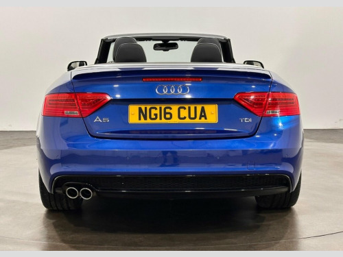 This 2016 Audi A5 Cabriolet TDI S line Special Edition Plus boasts remarkably low mileage for its age, having covered just 57,181 miles. As a Euro 6 compliant model, it features a 2.0 litre diesel engine, offering a blend of efficiency and performance. The S line Special Edition Plus trim signifies a well appointed vehicle, ready for its next owner to enjoy. Experience the responsive drive of this A5 Cabriolet, with its 0-60mph acceleration achieved in a brisk 8.0 seconds. This performance, combined with the refined diesel engine and the desirable S line Special Edition Plus specification, positions this Audi A5 Cabriolet as a compelling choice within its class, offering a superior driving experience. 19in Alloy Wheels - 10-Y Spoke Design Gl, ABS - Anti-Lock Braking System, Airbags - Front Side, AMI - Audi Music Interface, Anti Theft Locking Wheel Bolts, Audi Concert Radio, Audi Parking System Advanced, Auto Opening Boot Lid, Auto-Dimming Rear-View Mirror, Bang and Olufsen Sound System, Black Hood, Bluetooth Interface, Chrome Rolled Exhaust Pipes, Cruise Control, Cup Holders - Centre Console, DAB Digital Radio Reception, Deluxe 3-Zone Climate Control, Door Mirrors - Electrically Adjustable a, Drivers Information System - DIS, Dynamic Front Bumper with Large Air Inle, Electric Windows - Front and Rear, Electromechanical Parking Brake, Electromechanical Power Steering, Enhanced Rear Spoiler