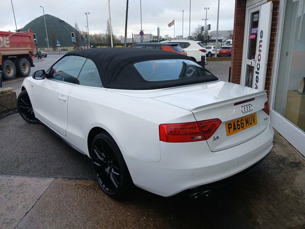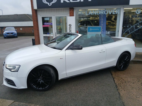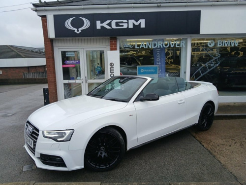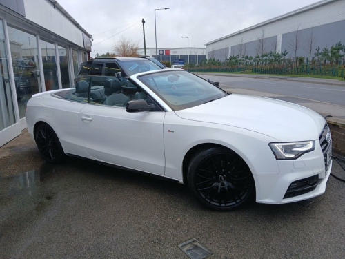This Audi A5 Cabriolet 2.0 TDI S line Special Edition Plus Convertible is a superb example of Audi's blend of performance, style, and everyday usability. With just 73,000 miles from new and only two owners, this well-cared-for vehicle presents in outstanding condition and has clearly been cherished throughout its life. Powered by the refined 2.0-litre TDI engine producing an impressive 190bhp, this A5 offers strong performance while remaining economical and fully Euro 6 compliant, making it suitable for modern emissions zones. The drive is smooth, responsive, and perfectly suited to both relaxed cruising and spirited open-top motoring. Finished in a striking specification, this Special Edition Plus model benefits from 19" gloss black alloy wheels, electric folding gloss black mirrors, and a sleek rear spoiler, giving the car a purposeful and sporty stance. The black fabric roof complements the exterior beautifully and operates seamlessly, allowing you to enjoy top-down driving at the touch of a button. Inside, the cabin is finished in full black leather, creating a premium and timeless interior environment. The heated front seats ensure comfort in all seasons, while climate control maintains the perfect temperature year-round. Audi's intuitive infotainment system includes satellite navigation, DAB radio, and Bluetooth connectivity, keeping you connected and entertained on every journey. Practicality and ease of use are enhanced with front and rear parking senso 19in Alloy Wheels - 10-Y Spoke Design Gl, ABS - Anti-Lock Braking System, AMI - Audi Music Interface, Airbags - Front Side, Anti Theft Locking Wheel Bolts, Audi Concert Radio, Audi Parking System Advanced, Auto Opening Boot Lid, Auto-Dimming Rear-View Mirror, Bang and Olufsen Sound System, Black Hood, Bluetooth Interface, Chrome Rolled Exhaust Pipes, Cruise Control, Cup Holders - Centre Console, DAB Digital Radio Reception, Deluxe 3-Zone Climate Control, Door Mirrors - Electrically Adjustable a, Drivers Information System - DIS, Dynamic Front Bumper with Large Air Inle, ESC - Electronic Stabilisation Control, Electric Windows - Front and Rear, Electromechanical Parking Brake, Electromechanic