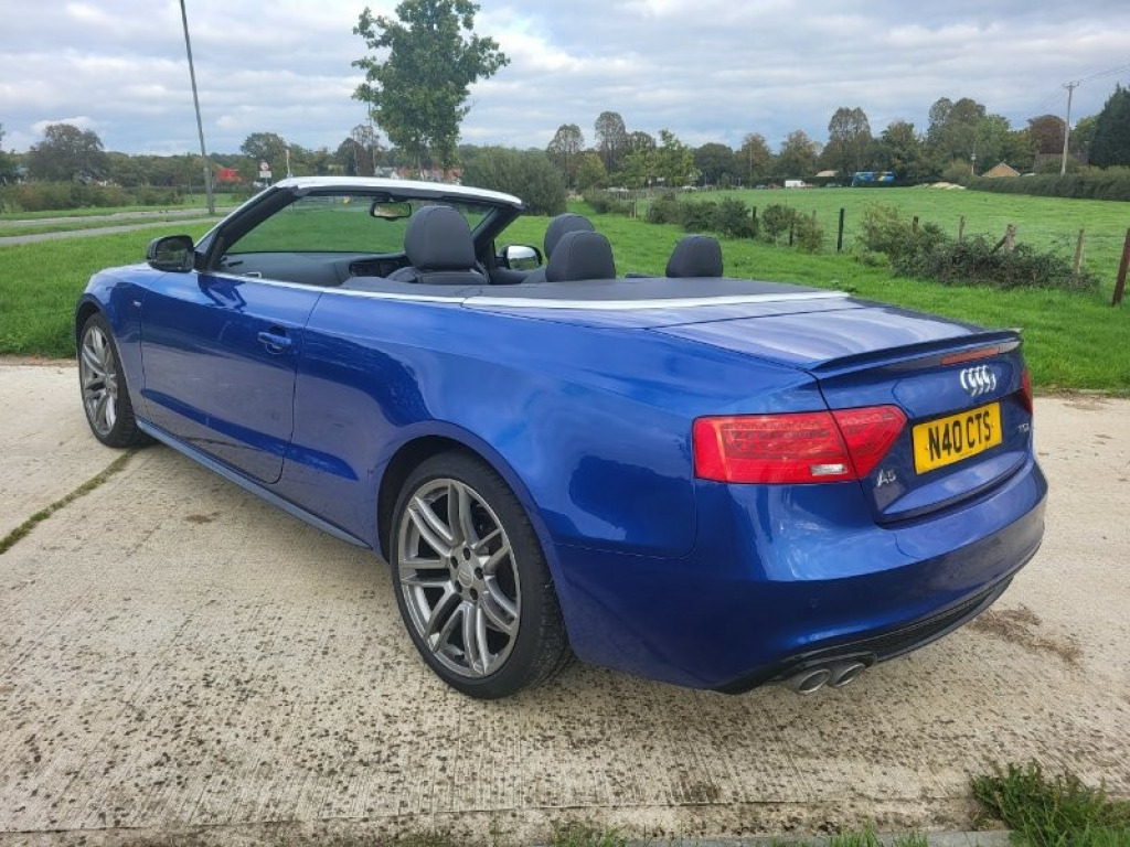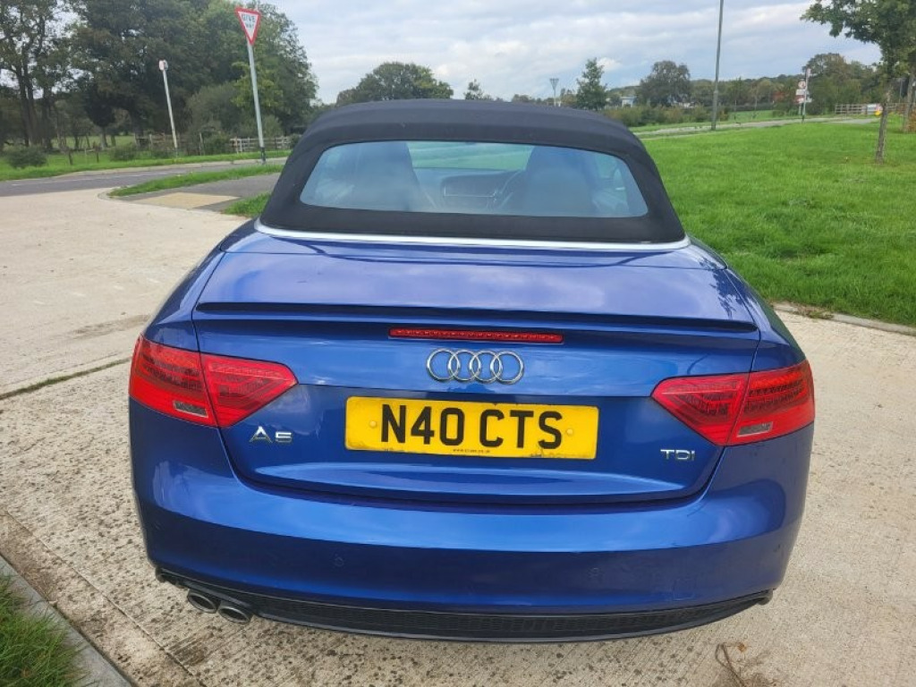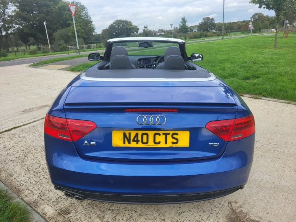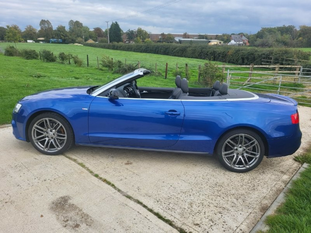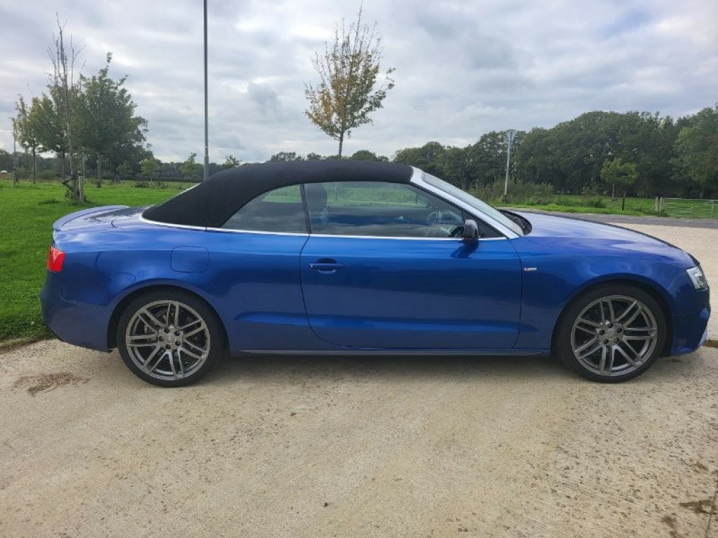 Here we have a rarely available 2016 Audi A5 Cabriolet finished in Sepang Blue Metallic with black leather interior, a sleek and stylish convertible with a fuel-efficient diesel engine and ULEZ compliance, perfect for city driving. two owners plus demo with only 61,000 miles on the clock with full service history, and MOT valid until 22/09/2026 with no advisories, this vehicle is in excellent condition, offering a smooth and comfortable ride with its 2.0 TDI S line Special Edition Plus engine delivering 190 ps. The 2-door car has 4 seats, making it ideal for small groups, and comes with features such as a Bang and Olufsen sound system, sat nav, front & rear parking sensors, rear camera, DAB radio, cruise control, colour centre console screen, 12V power socket x2, AMI - Audi Music Interface, and an AUX-IN socket. Don't miss out on the opportunity to own this fantastic Audi A5 Cabriolet, a perfect combination of luxury and performance. Finance & warranty packages available. Timing belt & water pump changed at 43,752 miles also gearbox service. Private plate not included will go back onto 16 plate. v power socket x2, ami - audi music interface, aux-in socket, bang and olufsen sound system, colour centre console screen, concert radio - mp3-cd player, dab digital radio, display screen colour 7in high resolution, mmi navigation plus, mobile telephone preparation - bluetooth interface, sd card reader x2, speakers x12, 19in alloy wheels - 10-y spoke design gloss black finish, anti theft locking wheel bolts, black hood, door mirrors - electrically adjustable and heated, dynamic front bumper with large air inlets and blade in high-gloss black, electric windows - front and rear, exhaust tailpipe - chrome rolled finish, exterior aluminium package, fully automatic acoustic hood with led passenger reading lights, radiator grille - single frame, rear diffuser - gloss black, rear diffuser - s line design, s line badges on wings, s line side skirts, side mirrors in high-gloss black, space saver spare wheel, spoiler - body coloured, styling package - s line exterior, wind deflector, abs - anti-lock braking system, airbags - driver, airbags - front passenger, airbags - front side, alarm - thatcham category 1, esp - electronic stability programme, electromechanical parking brake, first aid kit, isofix child seat mounting for front passenger, isofix child seat mounting for rear seats, immobiliser, remote central locking, warning triangle, acoustic parking system - rear, audi parking system advanced, audi parking system plus - front, audi parking system plus - rear, colour drivers information system - dis, cruise control, electromechanical power steering, rest recommendation system, sport suspension, tyre pressure monitoring system, auto-dimming rear-view mirror, automatic wipers with rain sensor, car jack, climate control - electronic 3-zone, cup holders - centre console, door sill trims - s line, front centre armrest, front and rear floor mats, gear knob - perforated leather, head level heating, headlights - range adjustment, heated front seats, heated outer rear seats, inlays - piano finish - black, interior chrome package, leather armrests, pedals in stainless steel, seats - front sports with electric lumbar support, side-sills in high-gloss black, split-folding rear seats, steering column - rake and reach adjustment, steering wheel - gear shift paddles, steering wheel - multi-function, steering wheel - s line 3-spoke leather, tool kit, front fog lights, headlights - bi-xenon plus, headlights - light sensor, headlights washers, led daytime running lights, led rear lights