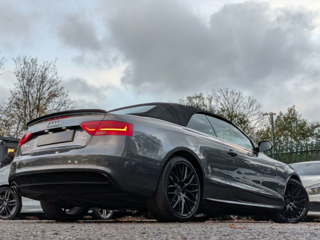 ⭐⭐⭐*ALMOST ALL OF OUR CARS COME WITH A GOOD PRICE OR GREAT PRICE AUTO TRADER BADGE MEANING THEY ARE THE BEST PRICED ON THE MARKET - ALL WHILST MAINTAINING EXCELLENT QUALITY* - OUR IN-HOUSE PREP CENTRE ALLOWS US TO PASS THESE LOWER COSTS ON TO OUR CUSTOMERS MEANING YOU ALWAYS GET THE BEST DEAL EVERY TIME!✅✅✅ --- THIS STUNNING AUDI A5 CONVERTIBLE IS NO DIFFERENT --- JUST BEEN FULL SERVICED BEFORE SALE!⭐⭐⭐, With an exceptionally low mileage of just 23,000 miles for a 2016 model, this Audi A5 Cabriolet TDI S line Special Edition Plus presents a remarkable opportunity. This stylish convertible, powered by a 2.0 litre Euro 6 diesel engine, has been cherished by only two owners. It boasts a wealth of features designed for comfort and convenience, including Bi-Xenon Plus headlights, a mobile telephone preparation with Bluetooth interface, and an Audi Parking System Advanced with front and rear sensors, complemented by Audi Parking System Plus for the rear. For your entertainment, it also includes a 6 CD changer and DVD player, ensuring journeys are always enjoyable. This Audi A5 Cabriolet stands out with its impressive performance, achieving 0-60mph in just 7.9 seconds, demonstrating its dynamic capability. The S line Special Edition Plus trim signifies a higher level of specification, enhancing its appeal over other similar models. Furthermore, the generous boot space offers practicality often not found in convertibles, making it a versatile choice for both leisure and everyday use.