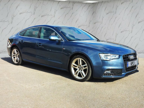 2014 Audi A5 2.0 TDI S line Sportback | Blue | 68,148 Miles | 1 Former Keeper | Full Service History | 12m MOT | AA Inspected | Warranty | Finance Available Overview 2014 Audi A5 2.0 TDI S line Sportback 68,148 Miles – Verified & HPI Clear One Former Keeper | Two Remote Keys Full Service History | Excellent Condition 2.0 TDI Diesel Engine (177 PS) | Manual Gearbox Blue Metallic Finish | Sporty S line Styling Supplied with 12 Months MOT on Sale 128-Point AA Inspection Completed 1-Year Nationwide Warranty & AA Breakdown Cover Description This Audi A5 2.0 TDI S line Sportback is a superb blend of premium design, strong diesel performance and everyday practicality. Finished in Blue Metallic, it delivers the refinement you'd expect from Audi, paired with sleek coupe styling and five-door versatility. Powered by the 2.0-litre TDI diesel engine producing 177 PS, it offers smooth, responsive performance and excellent fuel economy. The manual gearbox provides full driver engagement, while Audi's S line suspension and styling package give it that sporty edge without sacrificing comfort. With only 68k miles, one former keeper, and a full service history, this example has clearly been cherished and is presented in exceptional condition inside and out — ready to drive away today. Specification Highlights HDD Satellite Navigation System Parking Sensors Dual-Zone Climate Control Premium Leather Interior Trim Alloy Wheels Space Saver Spare Wheel Pr 12V Power Socket - Centre Console, 18in Alloy Wheels - 5-Double-Spoke Desig, ABS - Anti-Lock Braking System, AUX-IN Socket, Airbags - Driver, Airbags - Front Passenger, Airbags - Front Side, Airbags - Head Level Side For Front and , Alarm - Thatcham Category 1, Anti Theft Locking Wheel Bolts, Audi Parking System Plus - Front, Audi Parking System Plus - Rear, Audi Sound System, Auto Opening Boot Lid, Auto-Dimming Rear-View Mirror, Automatic Wipers with Rain Sensor, Car Jack, Climate Control - Electronic 3-Zone, Cloth Headlining in Black, Colour Drivers Information System - DIS, Concert Radio, Cruise Control, Cup Holders - Centre Console, DAB Digital Radio, Display Screen Colour 7in High Resol