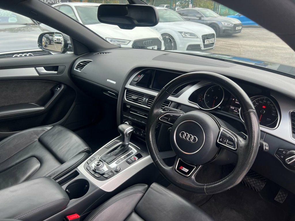 The 2016 Audi A5 2.0 TDI is a stylish and refined premium coupé, popular in the UK for its blend of sporty design and everyday practicality. Powered by a 2.0-litre turbocharged diesel engine, it delivers a strong balance of performance and efficiency, producing around 187 bhp with smooth acceleration and impressive motorway cruising ability. The sleek exterior features Audi's signature Singleframe grille, sharp LED daytime running lights, and elegant, flowing body lines that give it a timeless, athletic stance. Inside, the cabin is finished with high-quality materials and a minimalist, driver-focused layout, offering comfortable seating for four and a practical boot. Depending on the trim level, equipment may include leather upholstery, dual-zone climate control, satellite navigation, Bluetooth connectivity, and a premium audio system. Available with either a six-speed manual or a seven-speed S tronic automatic gearbox, along with optional quattro all-wheel drive, the A5 2.0 TDI provides a composed, confident drive, making it a versatile choice for both business and leisure use. 12V Power Socket - Centre Console, 18in Alloy Wheels - 5-Double-Spoke Desig, ABS - Anti-Lock Braking System, AUX-IN Socket, Airbags - Driver, Airbags - Front Passenger, Airbags - Front Side, Airbags - Head Level Side For Front and , Alarm - Thatcham Category 1, Anti Theft Locking Wheel Bolts, Audi Parking System Plus - Front, Audi Parking System Plus - Rear, Audi Sound System, Auto Opening Boot Lid, Auto-Dimming Rear-View Mirror, Automatic Wipers with Rain Sensor, Car Jack, Climate Control - Electronic 3-Zone, Cloth Headlining in Black, Colour Drivers Information System - DIS, Concert Radio, Cruise Control, Cup Holders - Centre Console, DAB Digital Radio, Display Screen Colour 7in High Resol