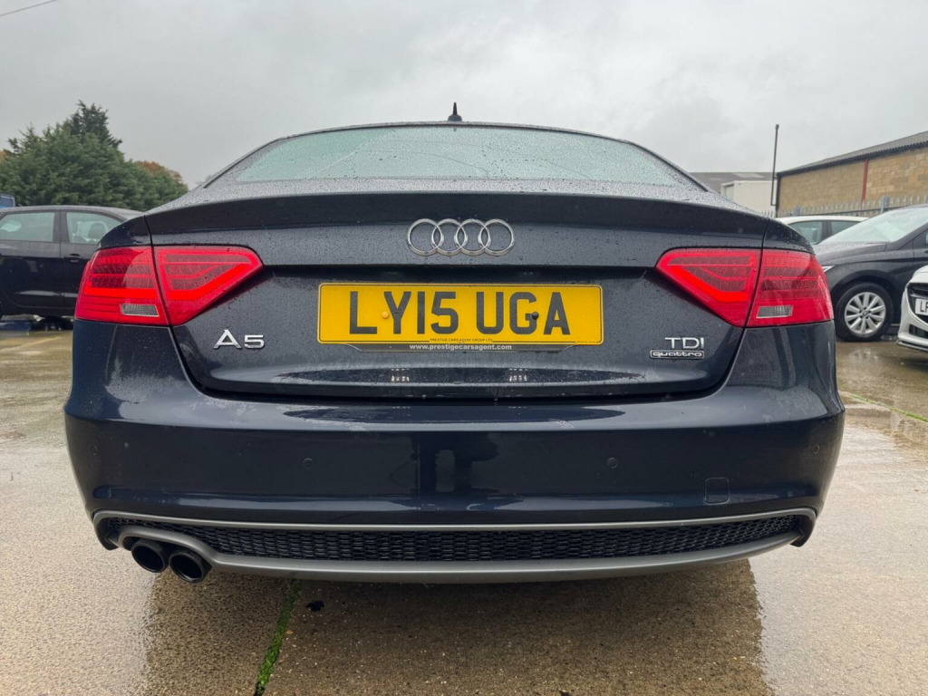 6 MONTHS WARRANTY. FANTASTIC WELL MAINTAINED EXAMPLE WITH FULL SERVICE HISTORY, 2024 CAMBELT CHANGE, 19 FACTORY UPGRADED ALLOYS, FULL BLACK S LINE HEATED SEATS, SAT NAV, BLUETOOTH, CRUISE CONTROL, 2 KEYS, ZENON HEAD LIGHTS, METALLIC PAINT, BAMG AND OLSON UPGRADED SOUND SYSTEM, ELECTRIC WINDOWS AND HEATED FOLDING MIRRORS. PART EXCHANGE WELCOME. This 2015 Audi A5 TDI S line presents an exceptional opportunity with its remarkably low mileage of just 64,000 miles. This four wheel drive model is equipped with a powerful 2.0 litre diesel engine, offering a compelling blend of performance and efficiency. Inside, youll find the comfort of heated front seats and the convenience of electronic three zone climate control, ensuring a pleasant journey for all occupants. The S line trim level further enhances the driving experience with Bi Xenon Plus headlights that automatically adjust to light conditions, and the Audi Parking System Plus for effortless rear parking. The Audi A5 TDI S line boasts impressive acceleration, reaching 0 to 62 miles per hour in a swift 7.9 seconds, demonstrating its dynamic capabilities. This model also offers generous boot space, making it a practical choice for everyday use and longer trips alike. The combination of its advanced features, low mileage, and strong performance figures sets this Audi A5 apart, offering a superior driving experience compared to other vehicles in its class.
