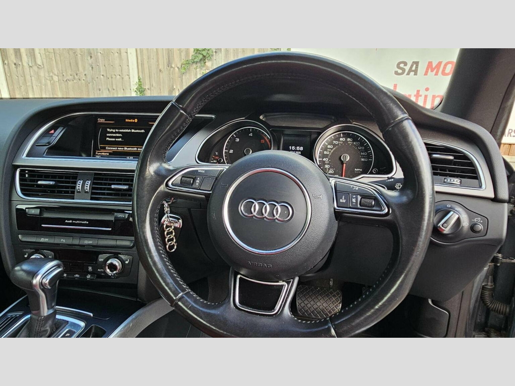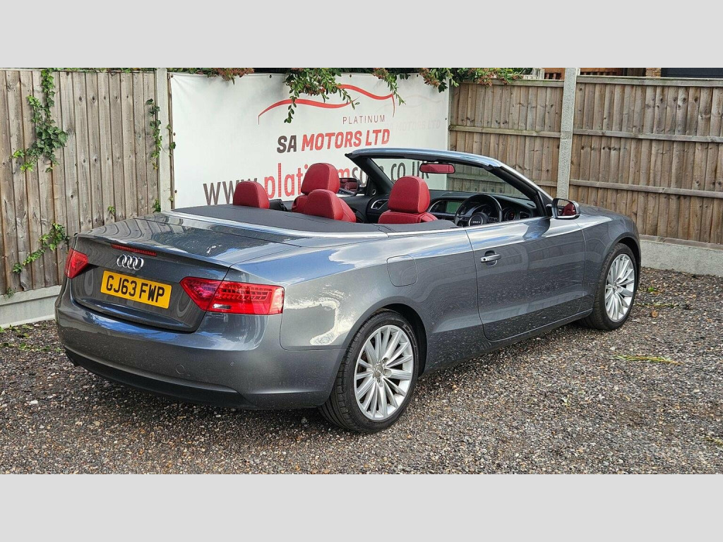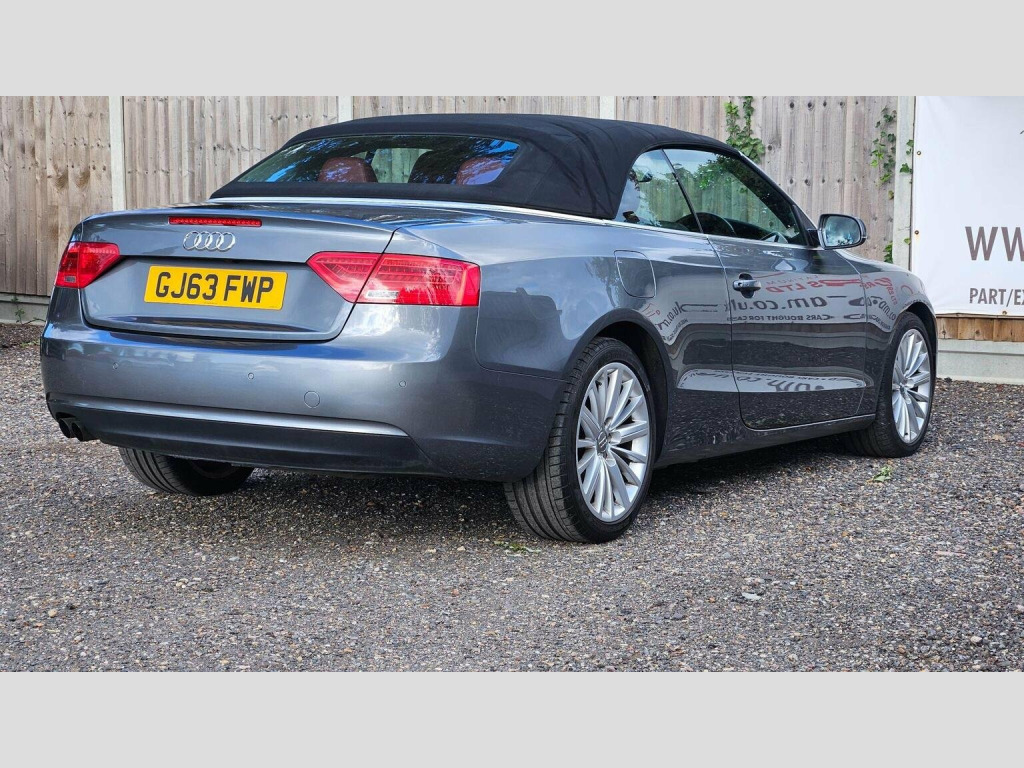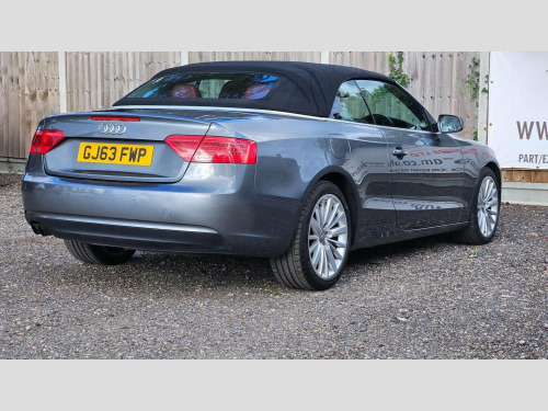 FANTASTIC EXAMPLE.....This 2013 Audi A5 Cabriolet TDI SE presents an exceptional ownership proposition with its remarkably low mileage of just 61,000 miles, especially for a vehicle of its age. This particular example boasts a full service history, with the most recent service completed on 22nd September 2025 at 61,000 miles, and its MOT remains valid until May 2026. The vehicle has undergone a clear history check, providing peace of mind. Inside, youll find the comfort of Deluxe 3 Zone Climate Control, the convenience of Bluetooth connectivity for mobile telephone preparation, and the assistance of Acoustic Parking System sensors at the rear. It has an updated Bang & Olufsen sound system, Sat Nav and heated seats. The combination of its comprehensive service history, long MOT, and low mileage for a 2013 model indicates a well maintained and cared for vehicle, setting it apart from others on the market. This A5 Cabriolet offers a refined driving experience with the added benefit of open top motoring. FINANCE & NATIONWIDE DELIVERY AVAILABLE... VIEWINGS BY APPOINTMENT ONLY.