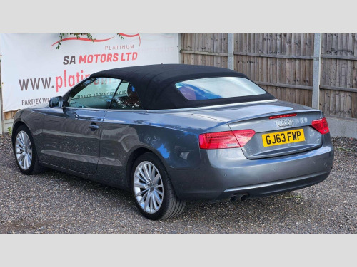 This 2013 Audi A5 2.0 TDI SE Multitronic Euro 5 (s/s) 2dr Convertible is currently available for £7,650 in Essex with Diesel engine and Auto Clutch Manual gearbox. For more information or to arrange a viewing, click here to send us an email using form below.