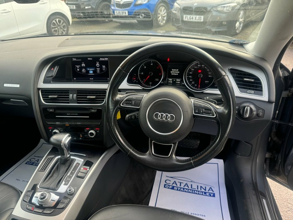 Audi A5 2.0 TDI SE Technik Sportback – Automatic | quattro | Long MOT Diesel | S Tronic Auto | Euro 6 | 190 PS | 71,075 Miles | MOT Until 20-10-2026 This Audi A5 2.0 TDI SE Technik Sportback combines sophistication, performance, and practicality in one sleek package. Having covered just 71,075 miles from new with two careful owners, it's a refined example of Audi's renowned build quality and driving experience. Powered by the 2.0-litre TDI engine delivering 190 PS through Audi's S Tronic automatic gearbox and quattro all-wheel-drive system, this A5 provides a smooth, confident, and dynamic drive whatever the conditions. Inside, it's finished to a premium standard with sat nav, Bluetooth connectivity, heated leather seats, and alloy wheels — offering both comfort and technology in perfect balance. Presented in metallic grey with a dark leather interior, this car exudes understated luxury. A rare automatic quattro example with a long MOT until October 2026, making it an ideal choice for those seeking performance, economy, and elegance in one. 12V Power Socket - Centre Console, 18in Alloy Wheels - 10-Spoke Exclusive D, ABS - Anti-Lock Braking System, AMI - Audi Music Interface, Airbags - Driver, Airbags - Front Passenger, Airbags - Front Side, Airbags - Head Level Side For Front and , Alarm - Thatcham Category 1, Anti Theft Locking Wheel Bolts, Audi Parking System Plus - Front, Audi Parking System Plus - Rear, Audi Sound System, Auto Opening Boot Lid, Auto-Dimming Rear-View Mirror, Automatic Wipers with Rain Sensor, Car Jack, Climate Control - Electronic 3-Zone, Colour Drivers Information System - DIS, Concert Radio, Cruise Control, Cup Holders - Centre Console, DAB Digital Radio, Daytime Running Lights, Display Screen Colour 7in