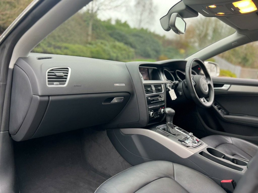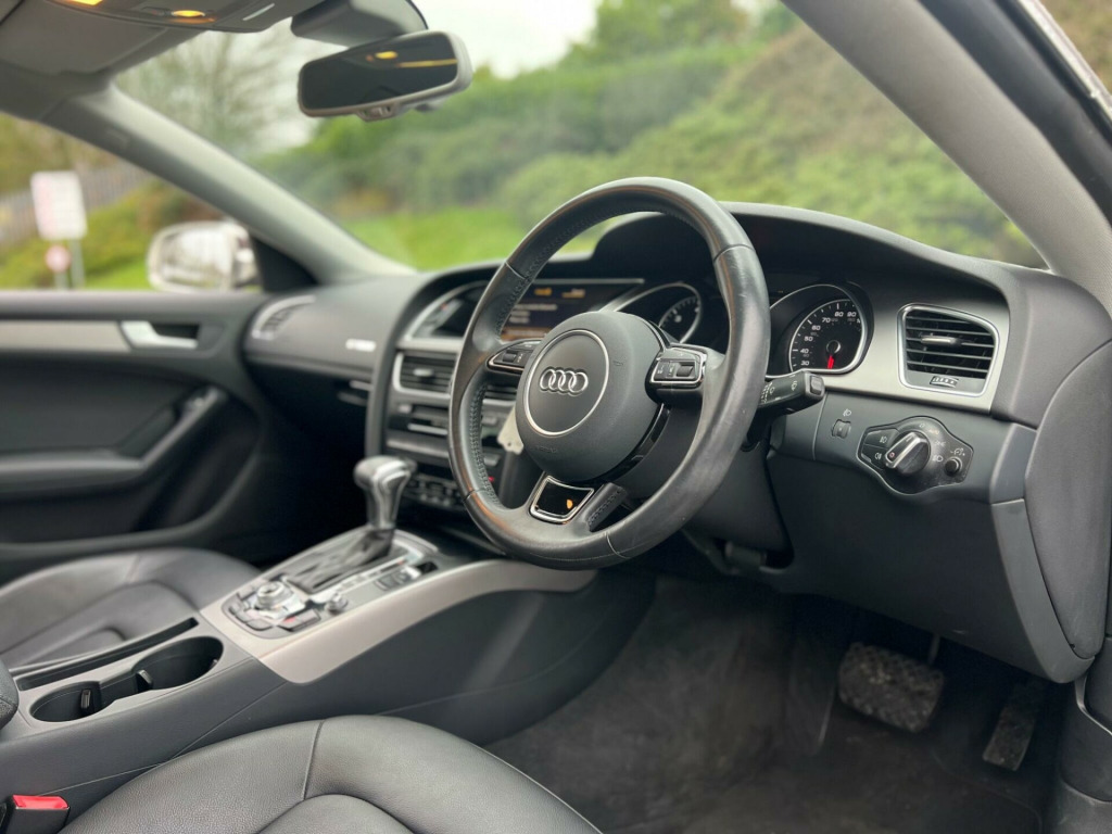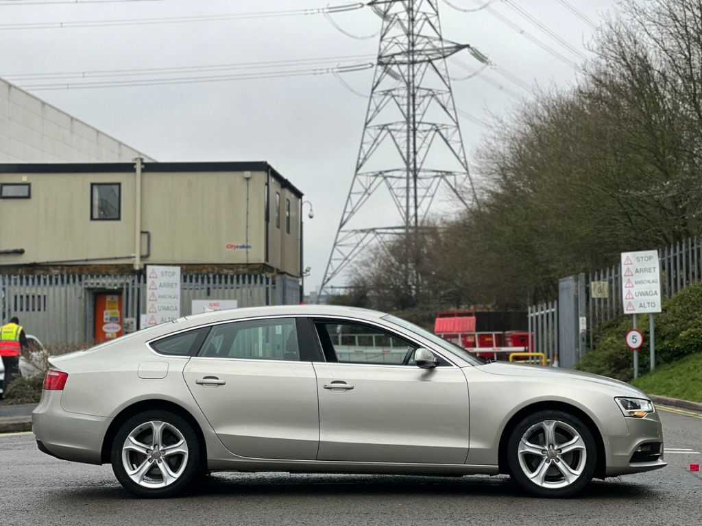 2014 Audi A5 2.0 TDI SE Technik Sportback Multitronic Euro 5 (s/s) 5dr in Silver. Only 56000 warranted miles on the clock. Car comes with a 12 Month Warranty!!! Only 1 previous owner from new. Service History Available. Car starts and drives well with no mechanical faults. Full V5 Available. Good spec including: Sat Nav, Heated Leather Seats, Leather Steering Wheel, CD/DAB Radio/AUX/USB, Bluetooth, AC/Climate Control, Electric Windows, Electric Mirrors, Alloy Wheels, Cruise Control, Parking Sensors, Central Locking and many more. Nationwide Delivery Available. P/X Welcome. HPI Clear. ULEZ Compliant. 2 Keys. Any questions don't hesitate to contact us on 07443456706. Whatsapp available as well v power socket x2, 17in alloy wheels - 5-arm design, abs - anti-lock braking system, ami - audi music interface, aux-in socket, air conditioning controls in rear centre console for passenger compartment, airbags - driver, airbags - front passenger, airbags - front side system, airbags - head level side for front and rear, alarm - thatcham category 1, anti theft locking wheel bolts, audi parking system plus, audi sound system, auto opening boot lid, automatic wipers with rain sensor, car jack, colour drivers information system - dis, concert radio - mp3-cd player, cruise control, cup holders - centre console, daytime running lights, deluxe 3-zone climate control, display screen colour 7in high resolution, door mirrors - electrically adjustable and heated, esp - electronic stability programme, electric windows - front and rear, electromechanical parking brake, electromechanical power steering, exhaust tailpipe - twin, exterior aluminium package, first aid kit, front centre armrest, front fog lights, front and rear floor mats, halogen headlights, headlights - automatic adjustment, headlights - automatic dynamic range control, headlights - coming-leaving home function, isofix child seat preparation front and rear with passenger airbag deactivation switch, immobiliser, inlays - reflex finish, intelligent key, interior chrome package, mobile telephone preparation - bluetooth interface, radiator grille - high gloss, rear parking sensors, rest recommendation system, sdhc card reader, seats - drivers manual height adjustment, space saver spare wheel, speakers x10, split-folding rear seats, steering column - rake and reach adjustment, steering wheel - 3-spoke leather-multi-function-shift paddles, steering wheel - multi-function, subwoofer, tp memo - automatically saves traffic news, technology package, tool kit, usb connection, warning triangle