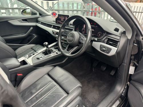 **ALL VIEWING BY APPOINTMENT** LUXURY HEATED LEATHER-SAT NAV-DAB RADIO-VERTUAL DASH-This 2018 Audi A5 TDI Sport is presented with a full 12 months MOT for your peace of mind. This stylish coupe features a powerful yet efficient 2.0 litre diesel engine, meeting Euro 6 emissions standards. Inside, youll find the convenience of Keyless Go, allowing you to enter and start the car without needing your key. Stay connected and entertained with the Audi Smartphone Interface, compatible with both Android Auto and Apple CarPlay. For ultimate comfort, the A5 boasts Deluxe 3-Zone Electronic Climate Control and heated front seats, ensuring a pleasant journey no matter the weather. Navigating tight spaces is made easy with the Parking System Plus, which includes front and rear parking sensors. WILL BE SUPPLIED WITH WARRANTY AND BREAKDOWN COVER FOR THAT EXTRA PIECE OF MIND -ALL VIEWING BY APPOINTMENT-LOW DEPOSIT FINANCE AVAILABLE PLEASE VISIT OUR WEBSITE FOR MORE INFORMATION, Experience impressive fuel economy with this Audi A5, achieving a remarkable 67 miles per gallon, which highlights its efficiency compared to similar vehicles. The 0-60mph acceleration in just 8.7 seconds demonstrates a responsive driving experience, indicating its performance capabilities. Furthermore, the generous boot space offers practicality for all your needs, making this A5 a well rounded choice for those seeking a blend of style, comfort, and economy.