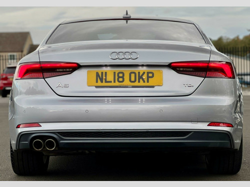 This 2018 Audi A5 TDI S line presents a superb ownership proposition, having been cared for by only two owners. Under the bonnet lies a capable 2.0 litre diesel engine, meeting Euro 6 emissions standards, ensuring efficiency and compliance. This S line model boasts a wealth of desirable features, including Keyless Go for effortless entry and starting, and a Bluetooth interface for seamless connectivity. Comfort is paramount with Deluxe 3-Zone Electronic Climate Control, while the Light and Rain Sensor automatically manages headlights and wipers. Parking is made simple with the Parking System Plus, offering assistance from both front and rear sensors.This Audi A5 stands out with its impressive fuel economy, achieving a remarkable 67 miles per gallon, which is significantly better than many other vehicles in its class. Furthermore, its low CO2 emissions highlight its environmental consideration. The A5 also offers generous boot space, making it a practical choice for everyday use and longer journeys. Its low insurance group rating further enhances its appeal, suggesting lower running costs., blue tank 24 litres, fine nappa leather - sports seats - s embossed - black, fuel tank 54l, floret silver, privacy glass, 18in alloy wheels - 5-twin-spoke star design, 2 x sdxc card readers, 2 x usb charging ports and 1 x aux-in, 4-way electric lumbar support, 6-airbag system, air inlets - horizontal inlay in matt aluminium, anti theft locking wheel bolts, anti-theft alarm, audi connect infotainment services - 3 month trial, audi connect safety and service - e-call, audi drive select, audi smartphone interface, audi sound system, auto-dimming rear-view mirror, bluetooth interface, body coloured door mirrors, cd drive, chrome-plated exhaust trim, cloth headlining in black, contrast stitching on seats - steering wheel and gear lever gaiter, cruise control with speed limiter, dab digital radio reception, deluxe 3-zone electronic climate control, door mirrors - electrically adjustable and heated with built-in led indicators, driver information system - 7in colour display, driver and front passenger airbag with front passenger airbag deactivation, esc - electronic stabilisation control inc abs - asr and edl, electric boot lid release, electric windows - front, electrically adjustable front seats, electromechanical parking brake, electromechanical power steering, first aid kit and warning triangle, front centre armrest, front and rear floor mats, gear lever knob in black perforated leather, heat-insulating glass - side and rear windows, heated front seats, high gloss package, high multi-function 3-spoke leather steering wheel, honeycomb side air inlet grille in titan black, isofix child seat mounting and top tether, illuminated door sill trims with s logo, inlays - matt brushed aluminium, keyless go, led headlights with led rear lights and dynamic rear indicators, led interior light package, light and rain sensor, luggage compartment mat, mmi navigation - sd card based, mmi radio plus with 7in colour mmi screen, model and engine technology badges at rear, multi collision brake assist, non-smoking package, parking system plus, pedals and footrest - stainless steel, pop-up bonnet for pedestrian protection, pre-sense city, radiator grille - twilight grey matt with inlays in matt aluminium, rear diffuser in twilight grey matt with honeycomb grille, rear grille - black grained, remote central locking, s line badges on front wings, s line front and rear bumpers, s line side skirts in black, s line sports package, seat belt monitoring, space saver spare wheel, split-folding 2-seater rear seat bench in 3 parts - 40-20-40 with rear centre armrest, sport suspension, sun visors including vanity mirrors, tool kit and car jack, tyre pressure warning light, variable restraint system, voice control system, windscreen with acoustic glazing