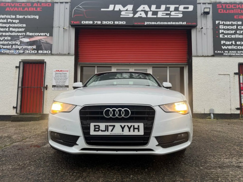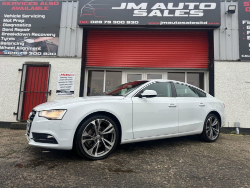 AUDI A5 2.0 TDI SPORTBACK SE TECHNIK 136 BHP APRIL 2017 84880 miles Mot 03 / 01 / 2026 Mot History 33K 37K 42K 54K 63K 73K Service History 3 Months warranty OUR MECHANIC SERVICES AND CHECK OUR CARS OVER TO A HIGH STANDARD BEFORE LEAVING TO A NEW HOME Finance available low rates bad credit history, we can help Car is hpi clear Fully valet Car is in excellent condition inside and out Walk around description available Website. www.jmautosalesltd.co.uk Magherafelt 02879300930 12V Power Socket - Centre Console, 17in Alloy Wheels - 5-Arm Design, ABS - Anti-Lock Braking System, AMI - Audi Music Interface, Airbags - Driver, Airbags - Front Passenger, Airbags - Front Side, Airbags - Head Level Side For Front and , Alarm - Thatcham Category 1, Anti Theft Locking Wheel Bolts, Audi Parking System Plus - Front, Audi Parking System Plus - Rear, Audi Sound System, Auto Opening Boot Lid, Auto-Dimming Rear-View Mirror, Automatic Wipers with Rain Sensor, Car Jack, Climate Control - Electronic 3-Zone, Colour Drivers Information System - DIS, Concert Radio, Cruise Control, Cup Holders - Centre Console, DAB Digital Radio, Daytime Running Lights, Display Screen Colour 7in High Res