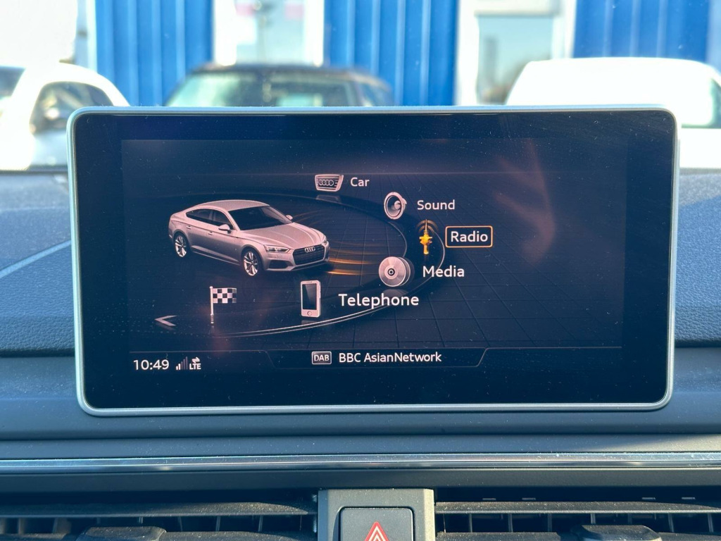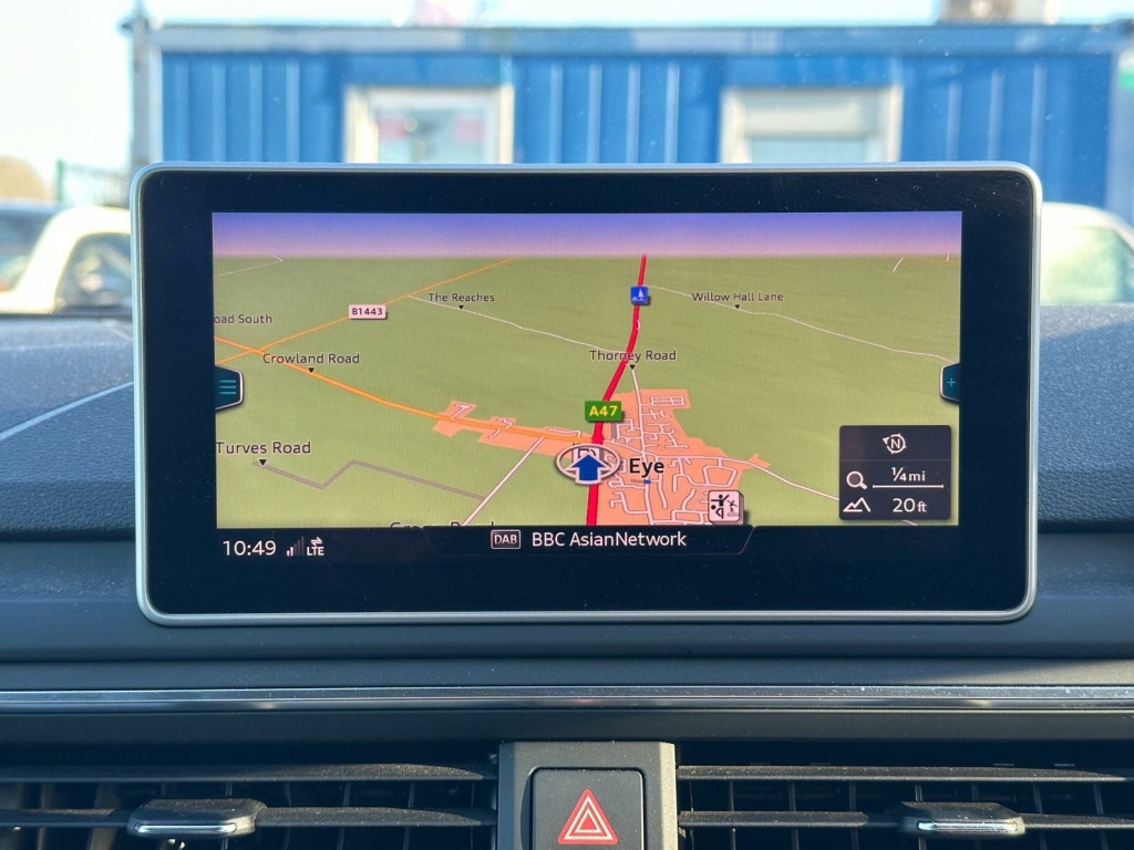 A STUNNING LOOKING EXAMPLE AUDI A5 2.0L TDI ULTRA SPORT SPORTBACK EURO 6 (S/S), 7X SERVICE HISTORY PRINT (MAIN DEALERS), 2 KEYS, CURRENT MOT WITH NO ADVISORY, CRUISE CONTROL, CLIMATE CONTROL, FRONT HEATED SEATS, LEATHER SEATS, DAB RADIO, BLUETOOTH. THIS VEHICLE COMES WITH A 3 MONTH EXTENDED WARRANTY COVERING ALL MECHANICAL AND ELECTRICAL PARTS. THIS NATIONWIDE COVER INCLUDES PARTS AND LABOUR. EYE GREEN CARS IS A REPUTABLE, FAMILY OWNED BUSINESS WITH MANY YEARS OF EXPERIENCE IN BRINGING THE VERY BEST IN USED, PREMIUM CARS. WE WILL VENTURE TO FIND ANY VEHICLE TO SUIT YOUR BUDGET AND REQUIREMENTS. OUR HELPFUL STAFF IS AT HAND TO DELIVER FIRST CLASS CUSTOMER SERVICE AND MAKE THE PURCHASE OF YOUR USED CAR SIMPLE. WE PRIDE OURSELVES ON OUR CUSTOMER CARE AND OFFER AN EXCEPTIONAL PERSONAL SERVICE. PRIOR TO SALE, OUR QUALIFIED TEAM WILL FULLY INSPECT VEHICLES TO MAKE SURE THEY ARE ROAD WORTHY. ALL VEHICLES ARE HPI/FINANCE CLEAR. FOR PEACE OF MIND, 3-24 MONTH WARRANTIES ARE AVAILABLE COVERING ALL ELECTRICAL/MECHANICAL ISSUES AND INCLUDE A NATIONAL REPAIR NETWORK, PARTS, LABOUR AND VAT. MOT RENEWAL CAN BE DISCUSSED AT TIME OF SALE. WE ARE OPEN TO DISCUSSING PART-EXCHANGE ON OUR VEHICLES. PRICES ON THE FORECOURT WILL BE CONSIDERED WHEN AGREEING A PART-EXCHANGE VALUATION. PRICES VARY FROM ONLINE AND FORECOURT. FINANCE IS AVAILABLE THROUGH A RANGE OF COUNTRYWIDE BROKERS WHO PROVIDE YOU WITH COMPETITIVE, AFFORDABLE RATES. NATIONWIDE DELIVERY CAN BE REQUESTED AT A COST OF £1.50 PER MILE. WE ACCEPT ALL MAJOR DEBIT/CREDIT CARDS. PLEASE FEEL FREE TO VIEW OUR EXTENSIVE RANGE OF VEHICLES ON OUR WEBSITE AND CALL/EMAIL US TO BOOK AN APPOINTMENT AND ARRANGE A TEST DRIVE. THE ADDRESS IS EYE GREEN INDUSTRIAL ESTATE, 1 CROWLAND ROAD, PETERBOROUGH, PE6 7TN AND THE WEBSITE IS WWW.EYEGREENCARS.COM. 17in Alloy Wheels - 5-Twin-Spoke Design, 2 x SDXC Card Readers, 2 x USB Charging Ports and 1 x AUX-IN, 4-Way Electric Lumbar Support, 6-Airbag System, Air Inlets - Titan Black with Matt Aluminium Inlay, Anti Theft Locking Wheel Bolts, Anti-Theft Alarm, Audi Connect Infotainment Services - 3 Month Trial, Audi Connect Safety and Service - e-call, Audi Drive Select, Audi Smartphone Interface, Audi Sound System, Auto-Dimming Rear-View Mirror, Bluetooth Interface, Body Coloured Door Mirrors, CD Drive, Chrome-Plated Exhaust Trim, Cruise Control with Speed Limiter, DAB Digital Radio Reception, Deluxe 3-Zone Electronic Climate Control, Door Mirrors - Electrically Adjustable and Heated with Built-in LED Indicators, Door Sill Trims with Aluminium Inlay, Driver Information System - 7in Colour Display, Driver and Front Passenger Airbag with Front Passenger Airbag Deactivation, ESC - Electronic Stabilisation Control inc ABS - ASR and EDL, Electric Windows - Front, Electrically Adjustable Front Seats, Electromechanical Parking Brake, Electromechanical Power Steering, First Aid Kit and Warning Triangle, Front Centre Armrest, Front and Rear Floor Mats, Heat-Insulating Glass - Side and Rear Windows, Heated Front Seats, High Gloss Package, High Multi-Function 3-Spoke Leather Steering Wheel, ISOFIX Child Seat Mounting and Top Tether, Inlays - Aluminium Ellipse - Silver, Keyless Go, LED Interior Light Package, Light and Rain Sensor, Luggage Compartment Mat, MMI Navigation - SD Card Based, MMI Radio Plus with 7in Colour MMI Screen, Model and Engine Technology Badges at Rear, Multi Collision Brake Assist, Non-Smoking Package, Parking System Plus, Pop-Up Bonnet for Pedestrian Protection, Power Operated Tailgate, Pre-Sense City, Radiator Grille - Twilight Grey Matt with Inlays in Matt Aluminium, Rear Diffuser Strip in Matt Aluminium Silver, Remote Central Locking, Seat Belt Monitoring, Space Saver Spare Wheel, Split-Folding 2-Seater Rear Seat Bench in 3 Parts - 40-20-40 with Rear Centre Armrest, Sun Visors including Vanity Mirrors, Tool Kit and Car Jack, Tyre Pressure Warning Light, Variable Restraint System, Voice Control System, Windscreen with Acoustic Glazing, Xenon Headlights with LED Daytime Running Lights, Sport Suspension, Audi Virtual Cockpit, Audi Phone Box with Wireless Charging.