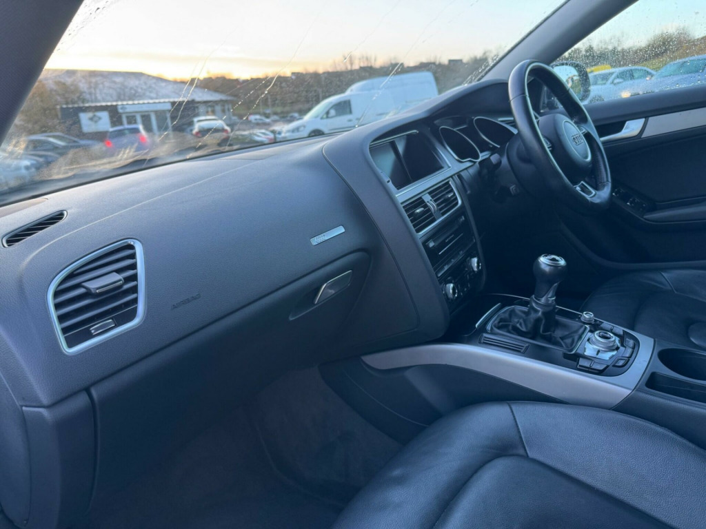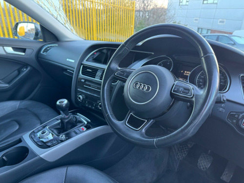 This 2014 Audi A5 TDIe SE Technik presents an exceptional opportunity with its remarkably low mileage of just 49,000 miles. This particular model, featuring a 2.0 litre diesel engine and SE Technik trim, offers a refined driving experience. It comes equipped with a suite of convenient features, including front and rear parking sensors to aid manoeuvrability, automatic headlights that activate based on light conditions, and electronic three zone climate control for personalised comfort. Furthermore, the integrated Bluetooth interface allows for seamless mobile telephone connectivity.The Audi A5 TDIe SE Technik is designed to impress, and its performance is a testament to this. With an acceleration of 0 to 62 miles per hour in just 9.5 seconds, it offers responsive power when you need it. This vehicle also boasts a generous boot space, making it highly practical for everyday use and longer journeys alike. These attributes, combined with its low mileage, position this Audi A5 as a standout choice compared to other similar vehicles on the market. v power socket - centre console, 17in alloy wheels - 5-arm design, abs - anti-lock braking system, ami - audi music interface, airbags - driver, airbags - front passenger, airbags - front side, airbags - head level side for front and rear, alarm - thatcham category 1, anti theft locking wheel bolts, audi parking system plus, auto opening boot lid, auto-dimming rear-view mirror, automatic wipers with rain sensor, car jack, climate control - electronic 3-zone, colour drivers information system - dis, concert radio, cruise control, cup holders - centre console, dab digital radio, daytime running lights, display screen colour 7in high resolution, door mirrors - electrically adjustable and heated, edl - electronic differential lock, esp - electronic stability programme, electric windows - front and rear, electromechanical parking brake, electromechanical power steering, exterior aluminium package, first aid kit, front centre armrest, front fog lights, front passenger airbag deactivation switch, front and rear floor mats, halogen headlights, headlights - light sensor, headlights - range adjustment, isofix child seat preparation front and rear, inlays - reflex finish, intelligent key, interior chrome package, mobile telephone preparation - bluetooth interface, parking sensors - front, radiator grille - high gloss black, rear parking sensors, rest recommendation system, space saver spare wheel, speakers x10, steering column - rake and reach adjustment, steering wheel - 3-spoke leather, steering wheel - multi-function, technology package - high, tool kit, warning triangle