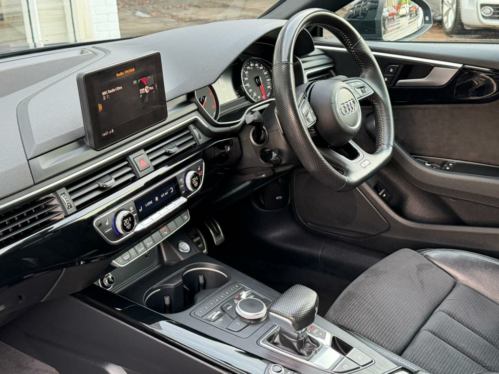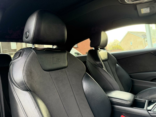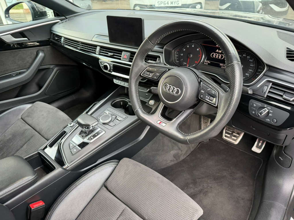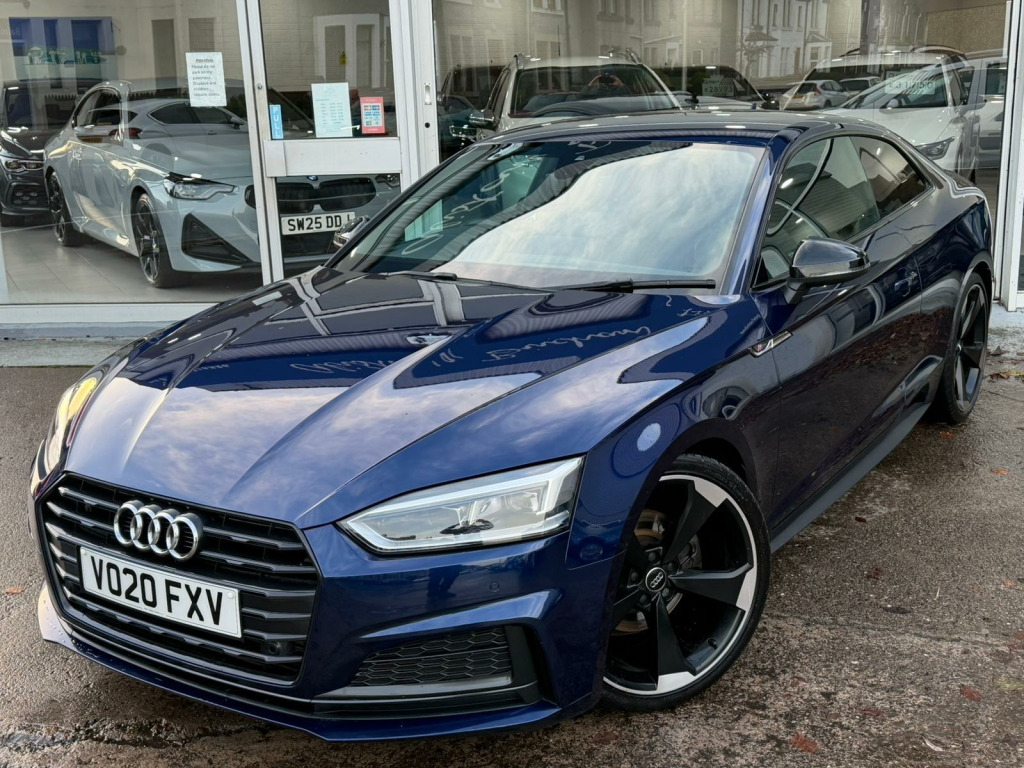 This 2020 Audi A5 TFSI Black Edition presents a remarkable opportunity with its exceptionally low mileage of just 41,000 miles, a clear vehicle history check, and a full 12 months MOT provided on purchase. This stylish coupe is powered by a 2.0 litre petrol engine, meeting Euro 6 emissions standards. Inside, you'll find a host of desirable features including a practical Storage Package, an Extended LED Interior Lighting Package offering multi coloured ambient lighting, and Deluxe 3-Zone Electronic Climate Control for personalised comfort. The Heated Front Seats ensure a warm welcome on colder days, and the Bluetooth interface allows for seamless connectivity.This Audi A5 TFSI Black Edition stands out with its impressive fuel economy, achieving approximately 40 miles per gallon, which is a significant advantage for everyday driving. Furthermore, its low CO2 emissions and placement in a low insurance group indicate that running costs are kept to a minimum, making it a more economical choice compared to many other vehicles in its class. These factors combine to offer a compelling package of style, performance, and cost effectiveness.. 2 x SDXC Card Readers, 2 x USB Charging Ports and 1 x AUX-IN, 20in Alloy Wheels - 5-Arm Rotor Design with Matt Titanium-Look, 4-Way Electric Lumbar Support, 6-Airbag System, Air Inlets - Horizontal Inlay in Matt Aluminium, Anti Theft Locking Wheel Bolts, Anti-Theft Alarm, Audi Connect Infotainment Services - 3 Month Trial, Audi Connect Safety and Service, Audi Drive Select, Audi Smartphone Interface, Audi Sound System, Auto-Dimming Rear-View Mirror, Bluetooth Interface, CD Drive, Chrome-Plated Exhaust Trim, Cloth Headlining in Black, Colour Drivers Information System with 7in High-Resolution TFT Screen, Contrast Stitching on Seats - Steering Wheel and Gear Lever Gaiter, Cruise Control with Speed Limiter, DAB Digital Radio Reception, Deluxe 3-Zone Electronic Climate Control, Door Mirrors - Folding, Door Mirrors - High-Gloss Black, ESC - Electronic Stabilisation Control inc ABS - ASR and EDL, Electric Boot Lid Release, Electric Windows - Front, Electromechanical Parking Brake, Electromechanical Power Steering, First Aid Kit and Warning Triangle, Flat-Bottomed 3-Spoke Leather High Multi-Function Steering Wheel, Front Centre Armrest, Front and Rear Air Intakes in Titanium Black, Front and Rear Floor Mats, Gear Lever Knob in Black Perforated Leather, Heated Front Seats, High Gloss Package, High-Beam Assist, Hill Hold Assist, Honeycomb Side Air Inlet Grille in Titan Black, ISOFIX Child Seat Mounting and Top Tether, Inlays - Piano Finish - Black, Interior Lighting, Keyless Go, LED Headlights with LED Rear Lights and Dynamic Rear Indicators, LED Interior Light Package, Light and Rain Sensor, Luggage Compartment Mat, MMI Navigation, Manual Seat Adjustment, Multi Collision Brake Assist, Navigation Preparation - Ready 4 Nav, Non-Smoking Package, Parking System Plus, Pedals and Footrest - Stainless Steel, Pop-Up Bonnet for Pedestrian Protection, Pre-Sense City, Privacy Glass - Side and Rear Windows, Radiator Grille and Frame in Titanium Black, Rear Diffuser Strip in Chrome, Rear Diffuser in Twilight Grey Matt with Honeycomb Grille, Rear Grille - Black Grained, S Style Rear Spoiler in High Gloss Black, Seat Belt Monitoring, Space Saver Spare Wheel, Split-Folding 2-Seater Rear Seat Bench in 3 Parts - 40-20-40 with Rear Centre Armrest, Sport Suspension, Tool Kit and Car Jack, Tyre Pressure Warning Light, Variable Restraint System, Voice Control System, Window Surrounds in Titanium Black, Windscreen with Acoustic Glazing, Extended LED Interior Lighting Package - Multi-Coloured, Storage Package.