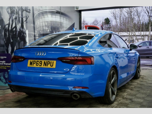 2019/69 Audi A5 Sportback Black Edition 35 TFSI S Tronic 5 door coupe (150ps) - Semi Automatic - Turbo Blue with S Line half leather interior - only 67k miles - only 1 former keeper - 2 remote keys - Audi main dealer and independent garage service history - just serviced for sale by independent Audi specialist - fresh 12 months MOT with no advisories - Platinum warranty - full 12 months AA roadside assistance also included! Extended Styling Pack! Rotor alloy wheels! Apple CarPlay/Android Auto! Ambient lighting! Wireless charging! 2 x SDXC Card Readers, 2 x USB Charging Ports and 1 x AUX-IN, 20in Alloy Wheels - 5-Arm Rotor Design w, 4-Way Electric Lumbar Support, 6-Airbag System, Air Inlets - Horizontal Inlay in Matt Al, Anti Theft Locking Wheel Bolts, Anti-Theft Alarm, Audi Connect Infotainment Services - 3 M, Audi Connect Safety and Service, Audi Drive Select, Audi Smartphone Interface, Audi Sound System, Auto-Dimming Rear-View Mirror, Bluetooth Interface, CD Drive, Chrome-Plated Exhaust Trim, Cloth Headlining in Black, Colour Drivers Information System with 7, Contrast Stitching on Seats - Steering W, Cruise Control with Speed Limiter, DAB Digital Radio Reception, Deluxe 3-Zone Electronic Climate Control, Door Mirr
