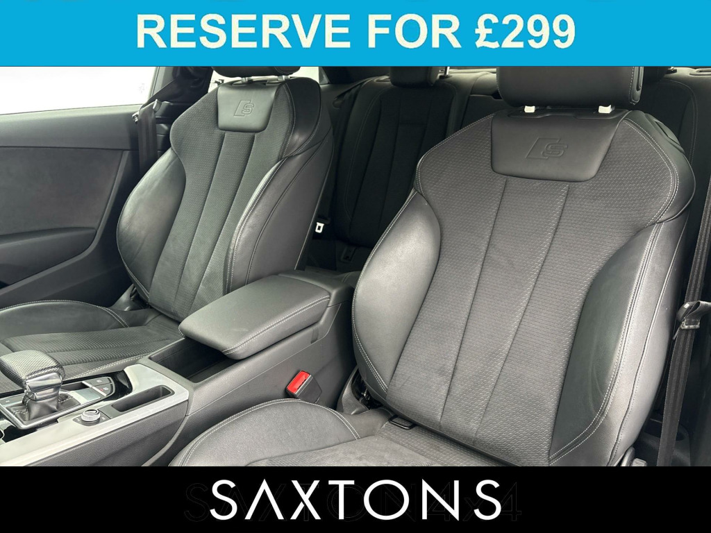 . Front Sports Seat, Audi Connect Package, Matrix LED Headlights with Dynamic Light Sequencing and Dynamic Turn Signals, Electrically Adjustable Exterior Mirrors, Heated & Folding Exterior Mirrors, Auto Dimming Folding Mirrors, Digital Audio Broadcasting, Audi Virtual Cockpit (Plus), 4-way Lumbar Support (Front Seats), Cruise Control With Speed Limiter, Matt Brushed Aluminum Inlays, Rear and Side Windows with Heat-Insulating Glazing, S-Line Bumpers, Body Coloured Exterior Mirrors, Ambient Lighting Package, Bluetooth Interface, Audi Pre Sense Front, Matrix LED Headlamps and LED Rear Combination Lamps, Headlamp Washer System, Privacy Glass, Multi-Functional (Plus) Steering Wheel, Flat Bottom Steering Wheel, Matrix LED Headlamps with Dynamic Light Design, Dynamic Turn Signal, Scuff Plates with Aluminium Inserts in Front, Illuminated, with ''S'' Logo, 3-Zone Climate Control, MMI Navigation Plus with MMI Touch, Multifunction Camera, Audi Connect Emergency Call & Service with Audi Connect Remote & Control, Audi Connect Navigation & Infotainment, Separate Daytime Running Light, Anti-theft Alarm System, Black Fabric Headliner, Driver and Front Passenger Airbag with Front Passenger Airbag Deactivation, Sports Suspension/Shock Absorption, Start-Stop System with Generative Braking, 100 Litre Fuel Tank, Park Distance Control, Rear View Camera System, Heat-Insulating Windshield Glass, Electric Parking Brake with Auto Hold Function, Auto-dimming Rear View Mirror, Curtain Airbag System for Front and Rear Passengers Including Side Airbags, Heated Front Seats, Extended Pedestrian Protection Measures, Keyless Start, ISOFIX, ISOFIX.