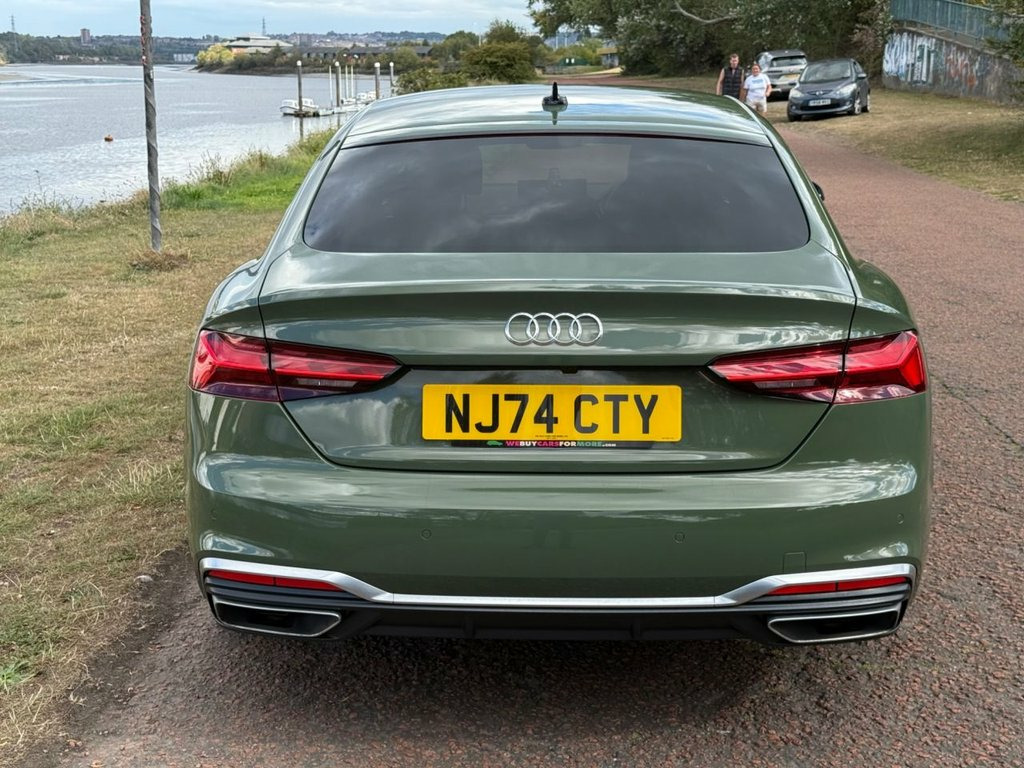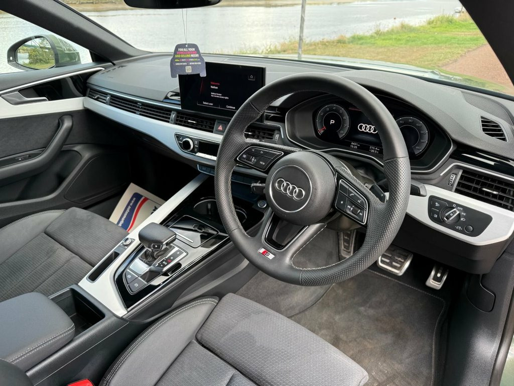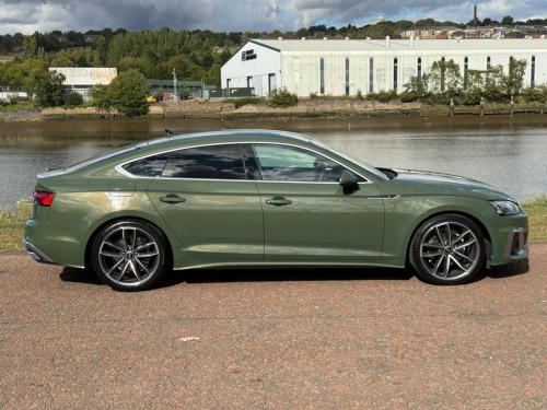WE ARE ABSOLUTELY DELIGHTED TO OFFER YOU FOR SALE THIS STUNNING LIKE NEW EXAMPLE OF AN AUDI A5 SPORTBACK S-LINE. THIS STUNNING EXAMPLE COMES WITH AN AUDI MANUFACTURER'S WARRANTY UNTIL SEPTEMBER 2027 AND SHE ALSO COMES EQUIPPED WITH A MAGNIFICENT SPECIFICATION THAT INCLUDES REAR PRIVACY GLASS, ELECTRIC BOOT, 19" DIAMOND CUT ALLOYS WITH A FULL SET OF BRIDGESTONE TYRES, HALF LEATHER HEATED SEATS, DIGITAL DISPLAY, APPLE CARPLAY, DAB RADIO, BLUETOOTH AUDIO, REVERSE CAMERA WITH PARKING SENSORS, DUAL ZONE CLIMATE CONTROL WITH AIRCON, DYNAMIC DRIVE MODES, START/STOP, USB INPUT, 12V SOCKET, AUTO HOLD, AUTO GEARBOX, AUTO LIGHTS, AUTO WIPERS, CRUISE CONTROL, ELECTRIC FOLDING MIRRORS AND MUCH MUCH MORE! FOR YOUR ADDED PEACE OF MIND SHE WILL RECIEVE A FULL HEALTH CHECK PRIOR TO DELIVERY. IF YOU ARE INTERESTED PLEASE GET IN CONTACT WITH US AS SOON AS POSSIBLE AS SHE WON'T HANG AROUND WITH US FOR LONG! 19in Alloy Wheels - 8.5J 5-Spoke-Cavo De, 3-Spoke Leather High Multi-function Spor, 4-Way Electric Lumbar Support, 6-Airbag System, 8 Passive Loudspeakers, ABS - Anti-Lock Braking System, Anti Theft Locking Wheel Bolts, Anti-Theft Alarm, Attention and Drowsiness Assist, Audi Connect Infotainment Services (36 M, Audi Connect Safety and Service, Audi Drive Select, Audi Smartphone Interface, Audi Virtual Cockpit, Auto-Dimming Rear-View Mirror, Automatic Start-Stop with Coasting Funct, Bluetooth Interface, Body Coloured Side Sill Trims, Camera Based Traffic Sign Recognition, Cloth Headlining in Black, Contrast Stitching on Seats - Steering W, Cruise Control System with Speed Limiter, DAB Digital