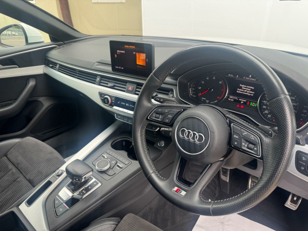 This 2019 Audi A5 TFSI S line boasts a full service history and an MOT valid until April 2026, offering excellent peace of mind. This stylish coupe is equipped with a 2.0 litre petrol engine, meeting Euro 6 emissions standards. Notable features include privacy glass for the side and rear windows, a light and rain sensor that automatically activates the LED headlights, and LED rear lights with dynamic rear indicators. Inside, you'll find a Bluetooth interface for seamless connectivity and heated front seats for added comfort.It comes with 2 keys, full service history and all documentation. The last service was just carried out by us at the point of sale. Brand new brakes wre fitted too. We include 3 months warranty as standard plus an option to extend. Delivery is avilble. Please contact us for finance or click on our website. Viewings by appointments only. The Audi A5 TFSI S line accelerates from 0 to 62mph in 9.1 seconds, demonstrating its capable performance. The inclusion of features like the automatic headlights and heated front seats sets this vehicle apart, enhancing both convenience and driving pleasure compared to other models. A clear vehicle history check confirms its well maintained status, and the last service was completed at 105,117 miles, underscoring its comprehensive care. in alloy wheels - 5-parallel spoke design, 2 x sdxc card readers, 2 x usb charging ports and 1 x aux-in, 4-way electric lumbar support, 6-airbag system, air inlets - horizontal inlay in matt aluminium, anti theft locking wheel bolts, anti-theft alarm, audi connect infotainment services - 3 month trial, audi connect safety and service, audi drive select, audi smartphone interface, audi sound system, auto-dimming rear-view mirror, bluetooth interface, body coloured door mirrors, cd drive, chrome-plated exhaust trim, cloth headlining in black, colour drivers information system with 7in high-resolution tft screen, contrast stitching on seats - steering wheel and gear lever gaiter, cruise control with speed limiter, dab digital radio reception, deluxe 3-zone electronic climate control, door mirrors - folding, esc - electronic stabilisation control inc abs - asr and edl, electric windows - front, electromechanical parking brake, electromechanical power steering, first aid kit and warning triangle, front centre armrest, front and rear floor mats, gear lever knob in black perforated leather, heated front seats, high gloss package, high multi-function 3-spoke leather steering wheel with grips in perforated leather and s badging, high-beam assist, hill hold assist, honeycomb side air inlet grille in titan black, isofix child seat mounting and top tether, illuminated door sill trims with s logo, inlays - matt brushed aluminium, interior lighting, keyless go, led headlights with led rear lights and dynamic rear indicators, led interior light package, light and rain sensor, luggage compartment mat, mmi navigation, manual seat adjustment, multi collision brake assist, navigation preparation - ready 4 nav, non-smoking package, parking system plus, pedals and footrest - stainless steel, pop-up bonnet for pedestrian protection, power operated tailgate, pre-sense city, radiator grille in twilight grey with matt aluminium inlays, rear diffuser strip in chrome, rear diffuser in twilight grey matt with honeycomb grille, rear grille - black grained, s line badges on front wings, s line front and rear bumpers, s line side skirts in black, seat belt monitoring, space saver spare wheel, split-folding 3-seater rear seat bench in 3 parts - 40-20-40, sport suspension, tool kit and car jack, tyre pressure warning light, variable restraint system, voice control system, windscreen with acoustic glazing, privacy glass - side and rear windows
