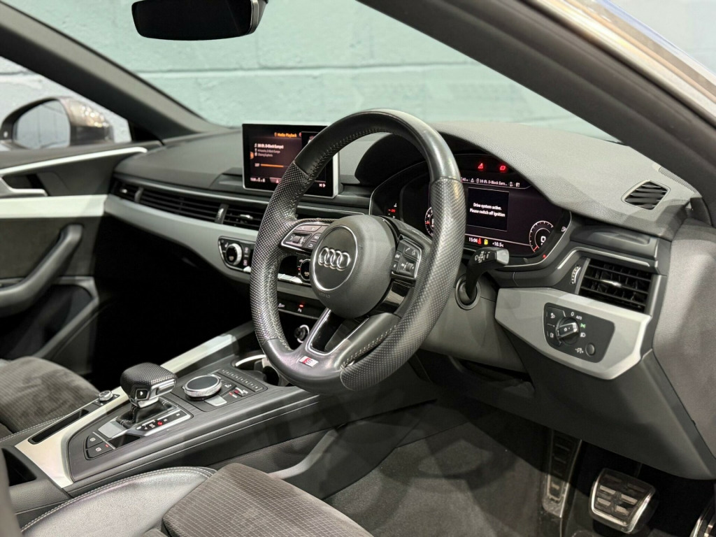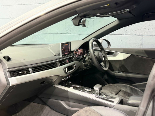 This 2019 Audi A5 TFSI S line presents a compelling blend of sophisticated design and advanced technology. Finished in a striking colour and boasting a Euro 6 compliant 2.0 litre petrol engine, this model offers an engaging driving experience. The S line trim enhances its sporty appeal, complemented by eye catching 19 inch multi spoke alloy wheels in a contrasting grey, partly polished finish. Inside, you will find luxurious Fine Nappa leather sport seats in black with Rock Grey stitching, featuring an S embossed logo for a premium feel. Comfort is further elevated with heated front and outer rear seats, ensuring a pleasant journey in all conditions.The Audi A5 TFSI S line is equipped with a suite of impressive features designed to enhance both safety and convenience. Its advanced lighting system includes Matrix LED headlights with LED rear lights, complete with dynamic front and rear indicators that provide clear signalling. The Technology Package integrates seamless connectivity, offering Bluetooth functionality and convenient wireless phone charging. Performance is also a key aspect, with the 2.0 litre TFSI engine delivering brisk acceleration, achieving 0-62mph in 9.1 seconds. These highlights demonstrate how this Audi A5 offers a superior driving experience compared to other vehicles in its class. in alloy wheels - 5-parallel spoke design, 2 x sdxc card readers, 2 x usb charging ports and 1 x aux-in, 4-way electric lumbar support, 6-airbag system, air inlets - horizontal inlay in matt aluminium, anti theft locking wheel bolts, anti-theft alarm, audi connect infotainment services - 3 month trial, audi connect safety and service, audi drive select, audi smartphone interface, audi sound system, auto-dimming rear-view mirror, bluetooth interface, body coloured door mirrors, cd drive, chrome-plated exhaust trim, cloth headlining in black, colour drivers information system with 7in high-resolution tft screen, contrast stitching on seats - steering wheel and gear lever gaiter, cruise control with speed limiter, dab digital radio reception, deluxe 3-zone electronic climate control, door mirrors - folding, esc - electronic stabilisation control inc abs - asr and edl, electric windows - front, electromechanical parking brake, electromechanical power steering, first aid kit and warning triangle, front centre armrest, front and rear floor mats, gear lever knob in black perforated leather, heated front seats, high gloss package, high multi-function 3-spoke leather steering wheel with grips in perforated leather and s badging, high-beam assist, hill hold assist, honeycomb side air inlet grille in titan black, isofix child seat mounting and top tether, illuminated door sill trims with s logo, inlays - matt brushed aluminium, interior lighting, keyless go, led headlights with led rear lights and dynamic rear indicators, led interior light package, light and rain sensor, luggage compartment mat, mmi navigation, manual seat adjustment, multi collision brake assist, navigation preparation - ready 4 nav, non-smoking package, parking system plus, pedals and footrest - stainless steel, pop-up bonnet for pedestrian protection, power operated tailgate, pre-sense city, radiator grille in twilight grey with matt aluminium inlays, rear diffuser strip in chrome, rear diffuser in twilight grey matt with honeycomb grille, rear grille - black grained, s line badges on front wings, s line front and rear bumpers, s line side skirts in black, seat belt monitoring, space saver spare wheel, split-folding 3-seater rear seat bench in 3 parts - 40-20-40, sport suspension, tool kit and car jack, tyre pressure warning light, variable restraint system, voice control system, windscreen with acoustic glazing, technology package, matrix led headlights with led rear lights and dynamic front and rear indicators, rear side airbags, 19in alloy wheels - multi-spoke design - contrasting grey - partly polished, door mirrors - folding with auto-dimming and memory function, privacy glass - side and rear windows, fine nappa leather - sport seats - s embossed logo - black with rock grey stitching, heated front and outer rear seats, storage package, lumbar support - pneumatically adjustable with massage function