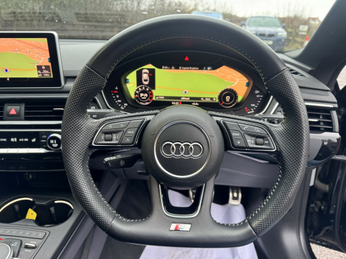 Direct Car Sales are excited to offer a 2020 AUDI A5, a black Petrol vehicle with a 1984cc engine. This car has been well-maintained, with a full Audi service history, and the last service was carried out in July 2025. The previous owner has had the vehicle since 2022, ensuring a consistent and reliable maintenance record. , This AUDI A5 boasts a range of high-spec features, including the S Line Technology Pack, digital dash, sat nav, heated half leather seats, xenon headlights, cruise control, climate control, air con, Apple Car Play, DAB radio, and parking sensors. Additionally, the car is equipped with a multifunction steering wheel and keyless start and stop functionality. , We believe this vehicle represents great value, particularly considering its desirable specification and petrol automatic transmission. For buyers looking for affordable monthly payments, we offer low-rate finance options to help make this car more accessible. , As standard, this vehicle comes with a three-month warranty, providing peace of mind for the new owner. We also welcome part-exchange inquiries, allowing you to trade in your current vehicle as part of the purchase process. , With its stunning appearance and impressive driving experience, this AUDI A5 is an excellent choice for those seeking a reliable and feature-rich vehicle. Our sales team is happy to provide further information and answer any questions you may have about this car or our financing options.