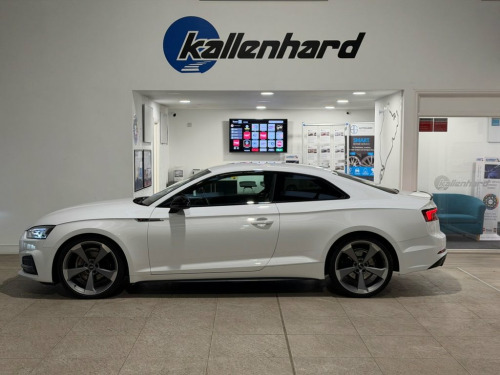 Presented in striking Ibis White, this Audi A5 2.0 TFSI 40 Black Edition Coupe is a perfect blend of sharp design, refined performance and everyday usability. The sleek coupe silhouette is enhanced by the Black Edition styling, giving the car a confident, athletic presence that stands out from every angle. Powered by the smooth and responsive 2.0 TFSI petrol engine producing 190 ps and paired with the S Tronic automatic gearbox, it delivers effortless acceleration and composed cruising while remaining efficient and Euro 6 compliant with stop/start technology. Inside, the cabin reflects Audi's renowned build quality, combining sporty details with a premium finish to create a driver-focused environment that feels both modern and comfortable. The driving experience is engaging yet refined, making this A5 equally suited to spirited back-road drives or relaxed motorway journeys. With its timeless colour, desirable Black Edition specification and balanced performance, this Audi A5 Coupe offers an appealing package for anyone looking for style, comfort and driving enjoyment in one elegant car. Service History 28/02/2025 @ 35763 miles 14/02/2024 @ 29270 miles 16/02/2023 @ 23366 miles 30/07/2021 @ 18097 miles At Kallenhard Engineering we specialise in Performance, Prestige, and 4×4s. Because preparation is at the heart of everything we do, all our cars are prepared mechanically and cosmetically to the highest standards. Starting with an independent AA inspection, an 2 x SDXC Card Readers, 2 x USB Charging Ports and 1 x AUX-IN, 20in Alloy Wheels - 5-Arm Rotor Design w, 4-Way Electric Lumbar Support, 6-Airbag System, Air Inlets - Horizontal Inlay in Matt Al, Anti Theft Locking Wheel Bolts, Anti-Theft Alarm, Audi Connect Infotainment Services - 3 M, Audi Connect Safety and Service, Audi Drive Select, Audi Smartphone Interface, Audi Sound System, Auto-Dimming Rear-View Mirror, Bluetooth Interface, CD Drive, Chrome-Plated Exhaust Trim, Cloth Headlining in Black, Colour Drivers Information System with 7, Contrast Stitching on Seats - Steering W, Cruise Control with Speed Limiter, DAB Digital Radio Reception, Deluxe 3-Zone Electronic Climate Control, Door Mirr